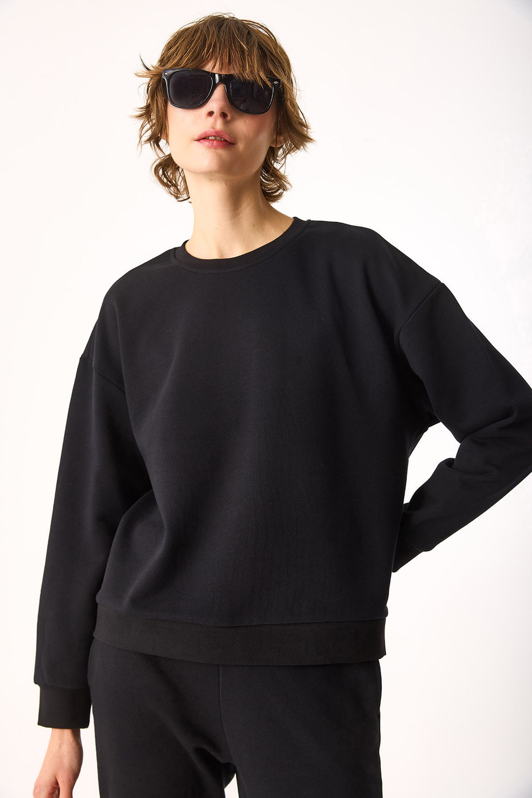 Rhona Bisiklet Yaka Regular Fit 3 İplik Sweatshirt - Siyah