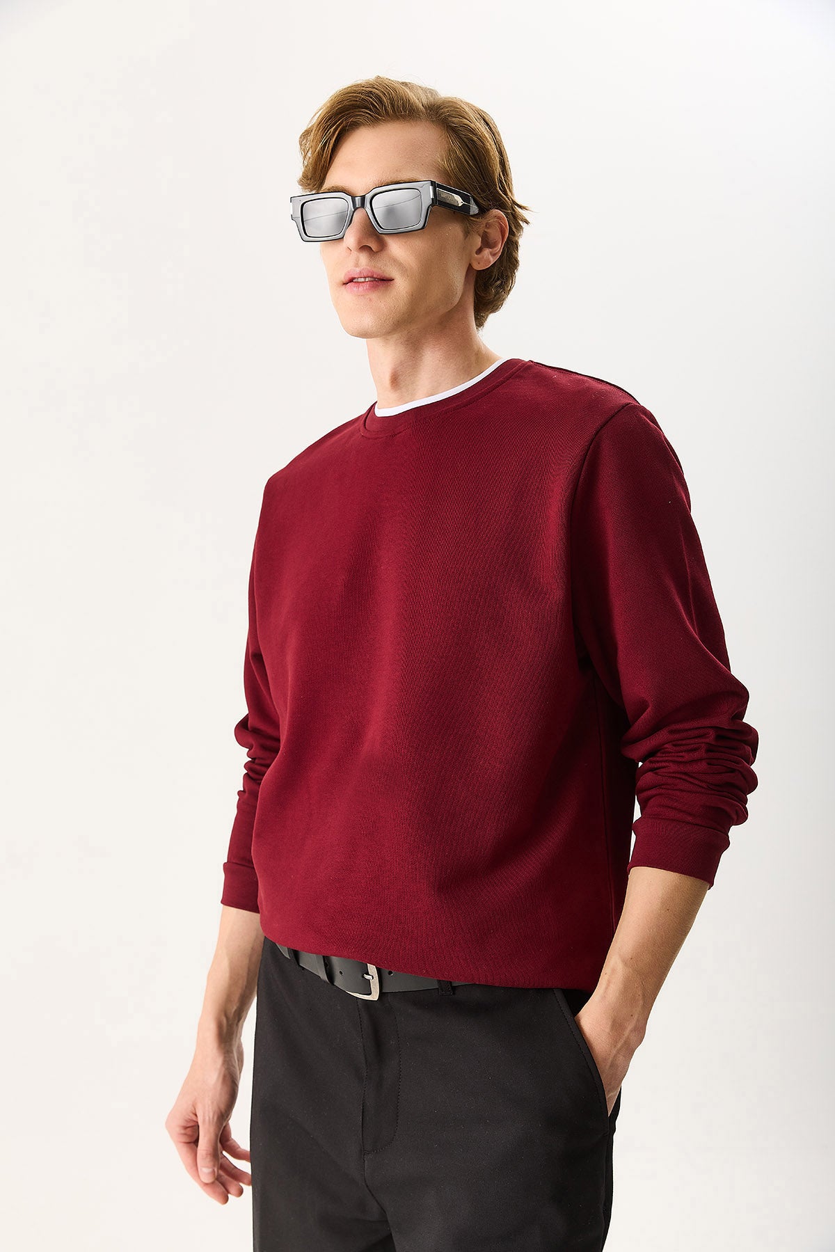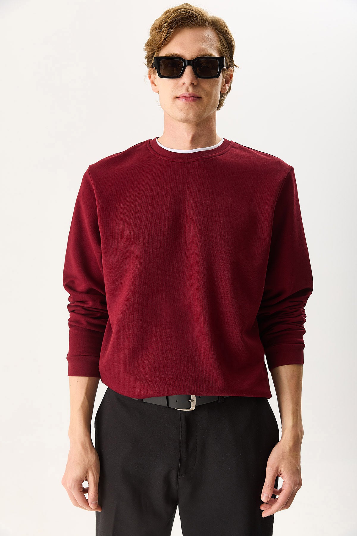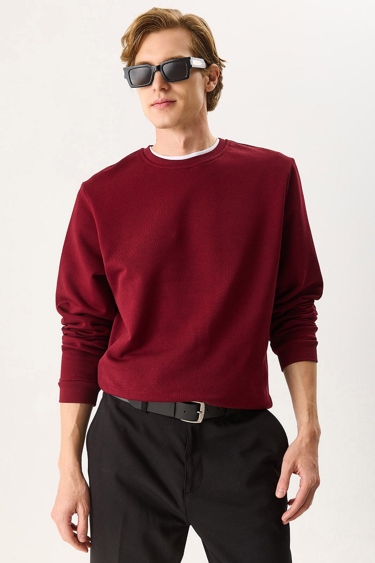 Erkek Rich Bisiklet Yaka Regular Fit 3 İplik Basic Sweatshirt %100 Pamuk - Bordo