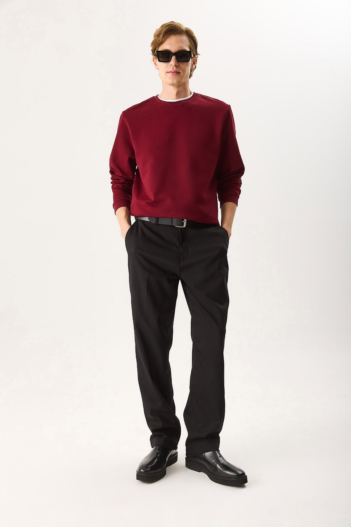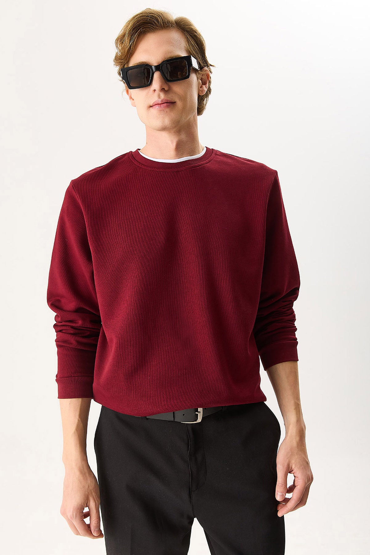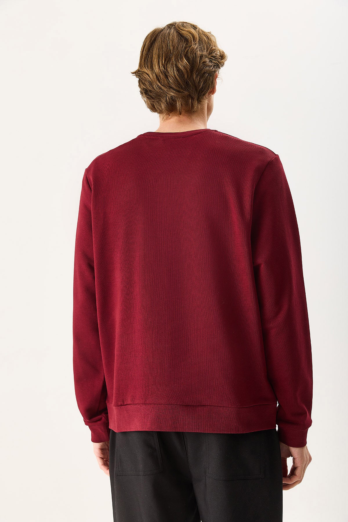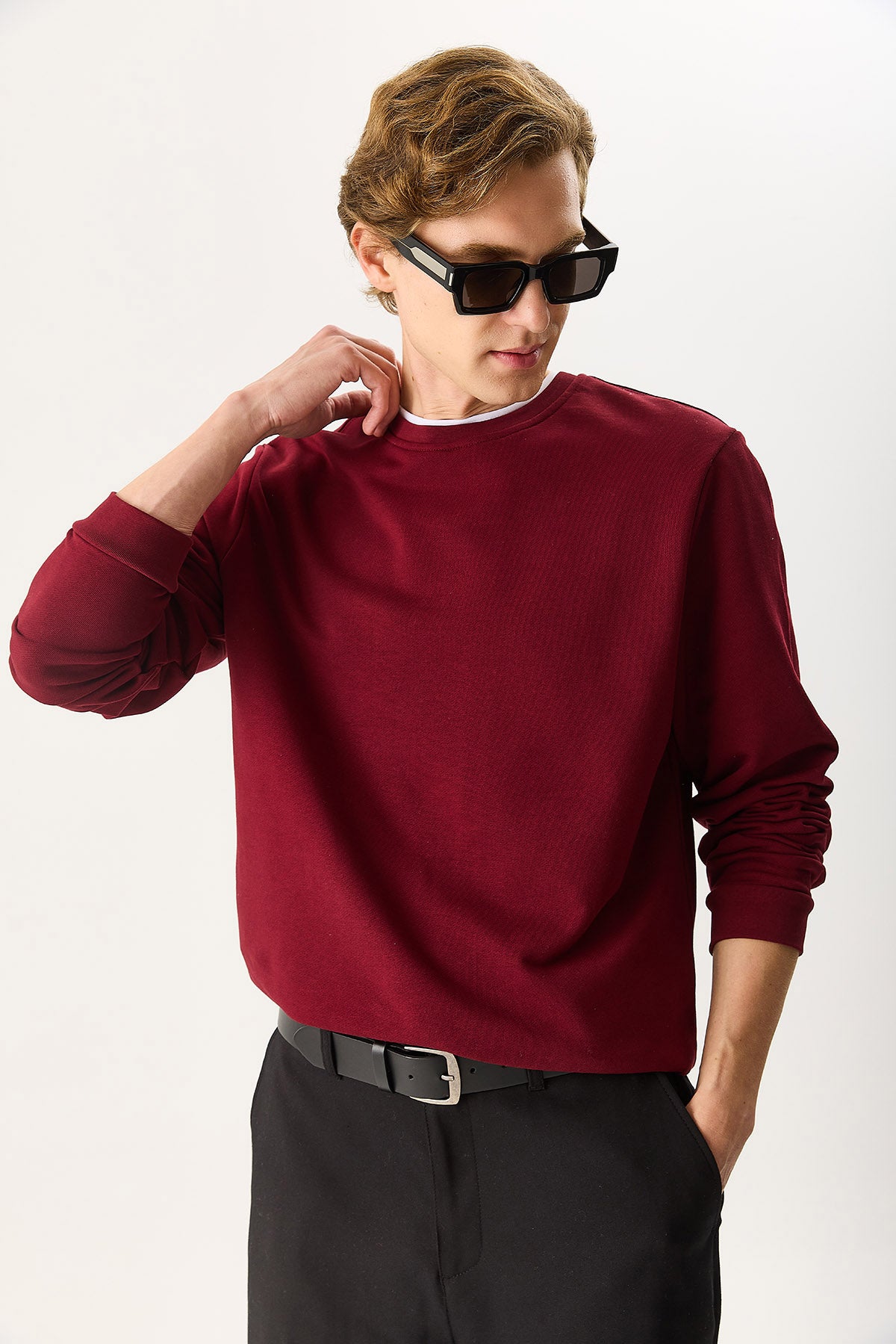 Erkek Rich Bisiklet Yaka Regular Fit 3 İplik Basic Sweatshirt %100 Pamuk - Bordo