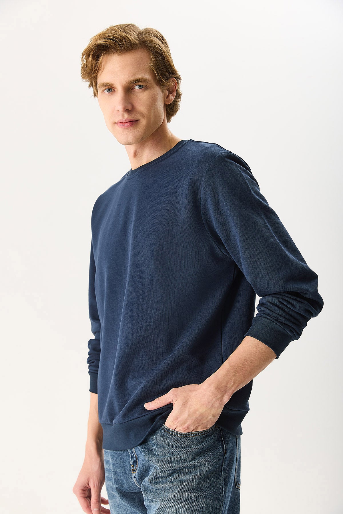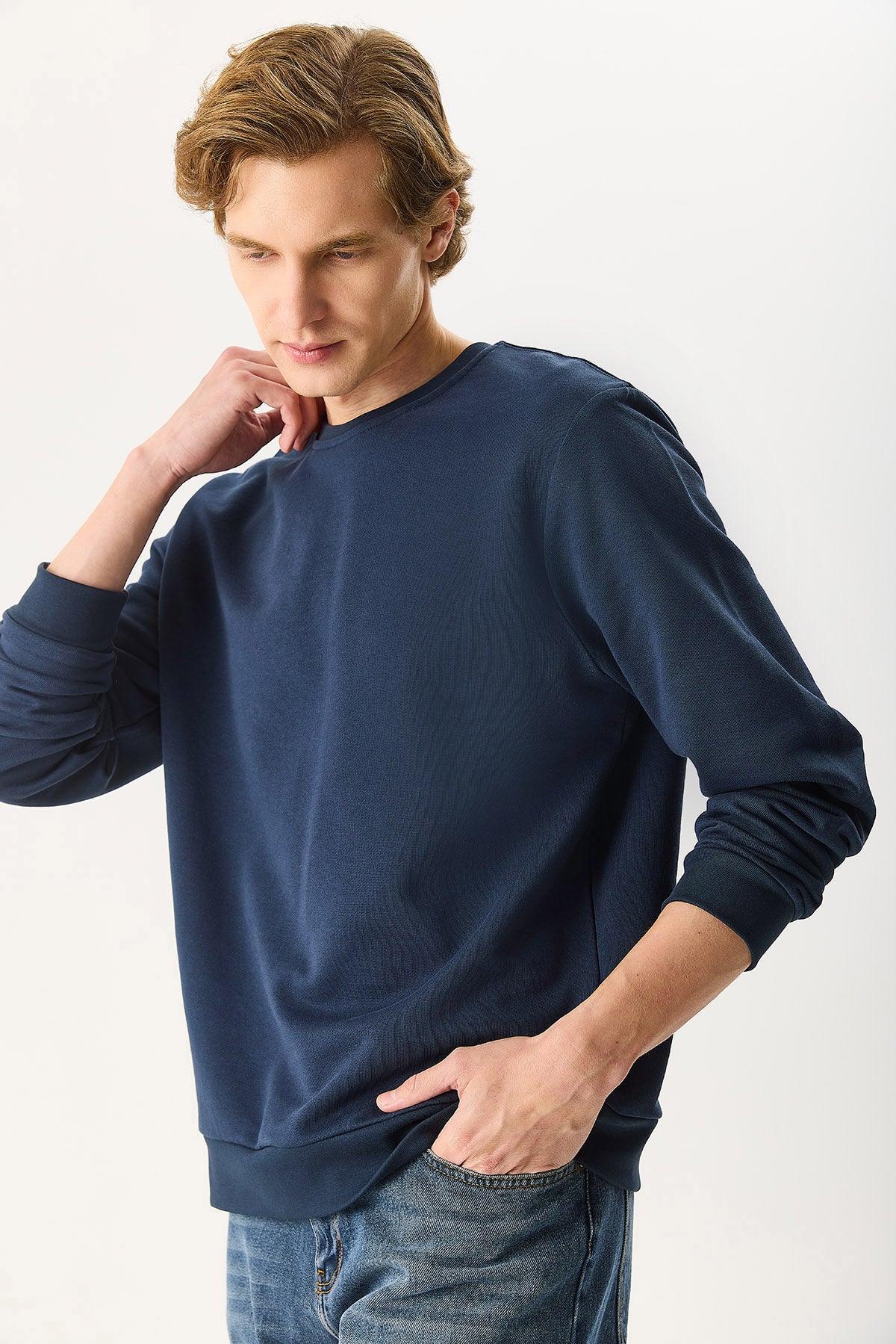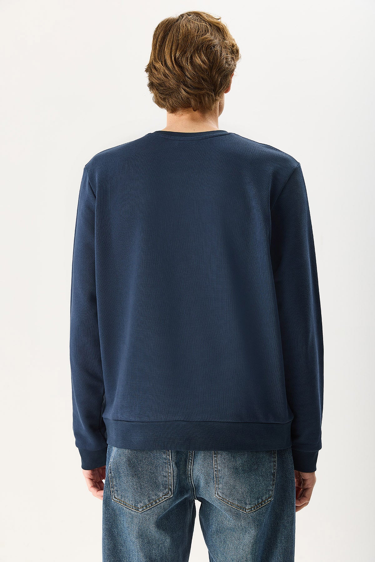 Erkek Rich Bisiklet Yaka Regular Fit 3 İplik Basic Sweatshirt %100 Pamuk - Lacivert