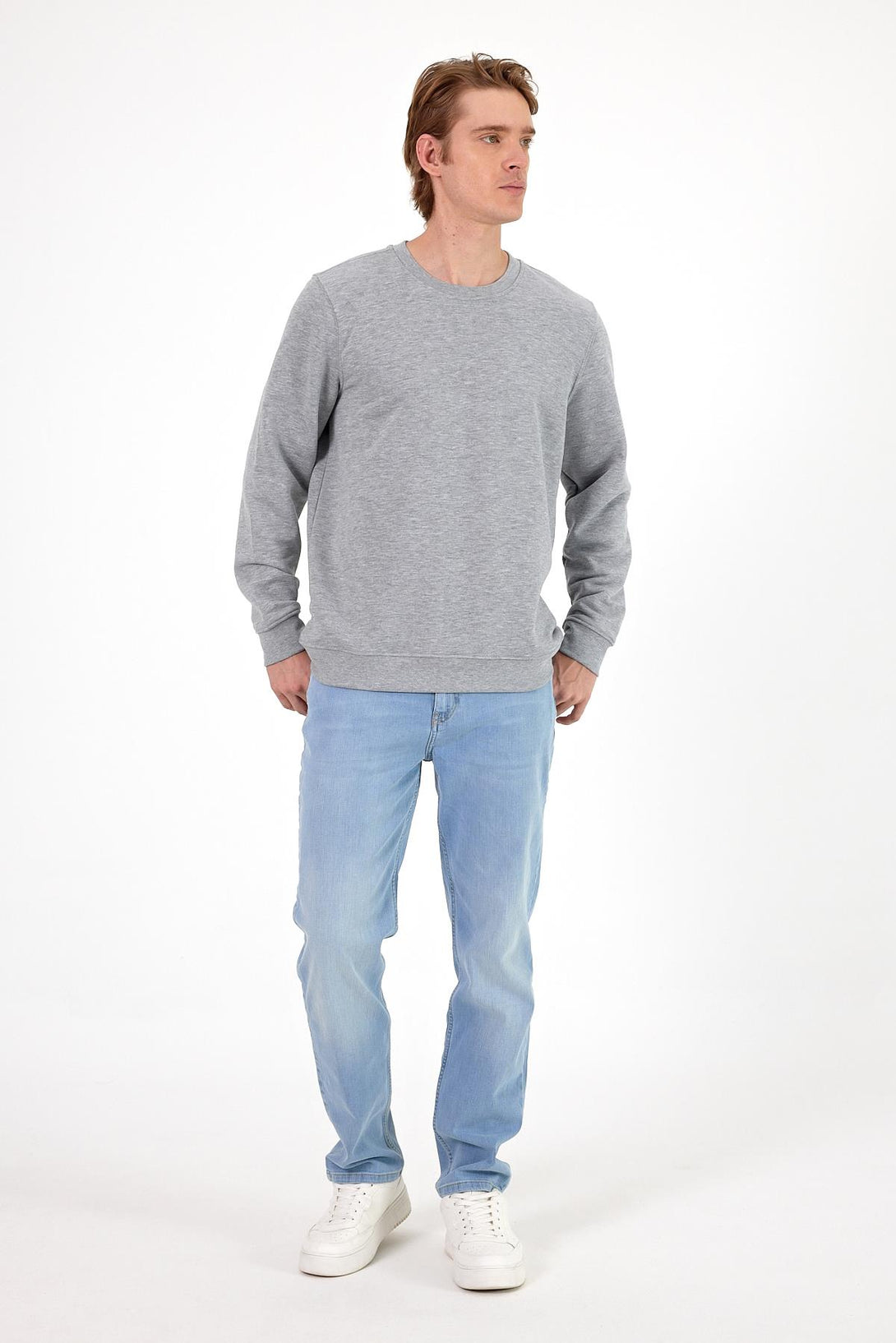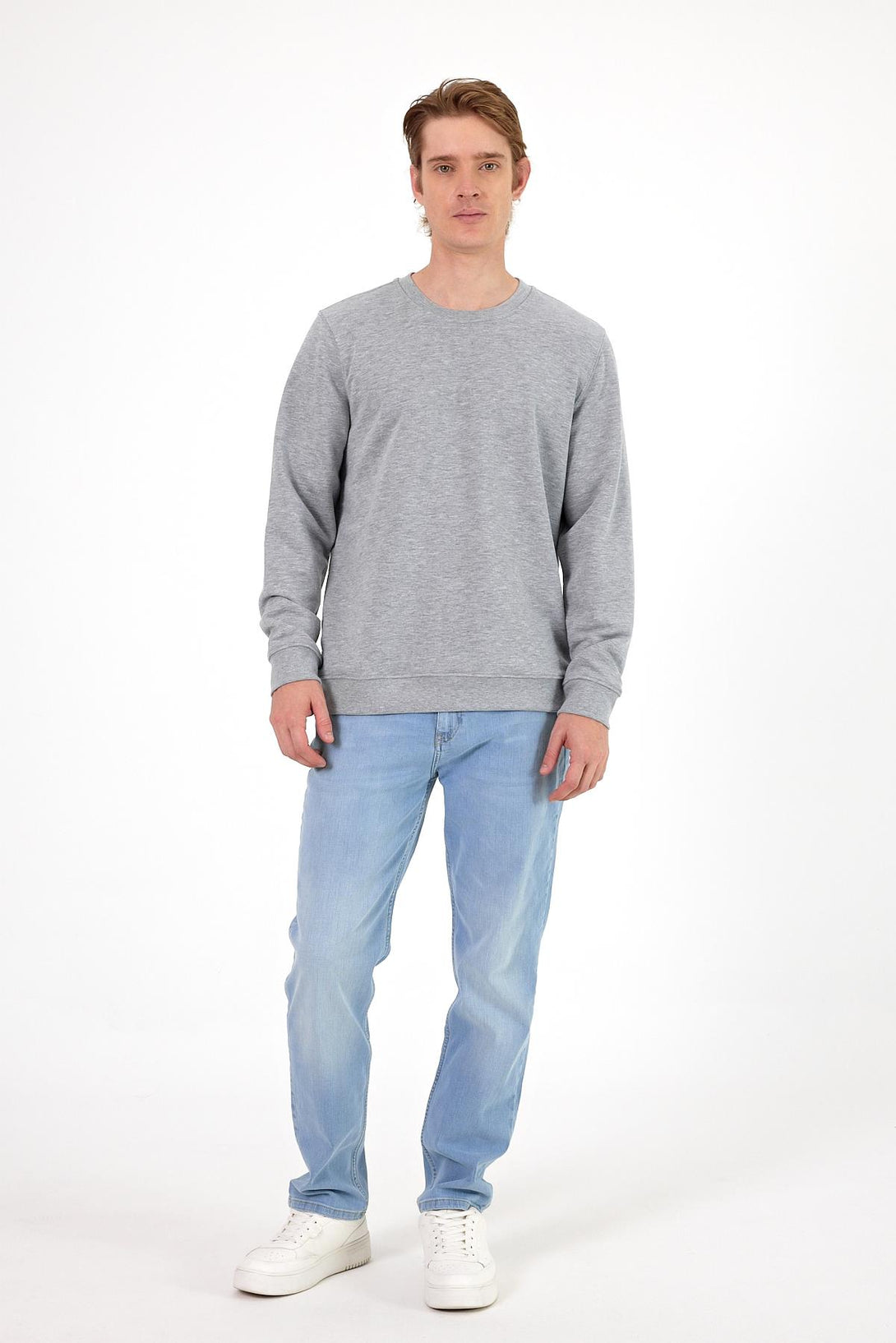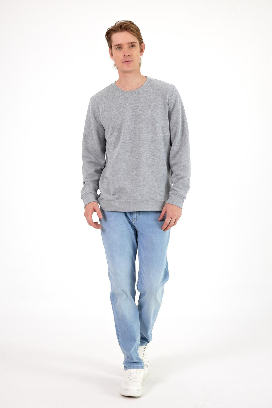Erkek Rich Gri Melanj Bisiklet Yaka Regular Fit 3 İplik Sweatshirt