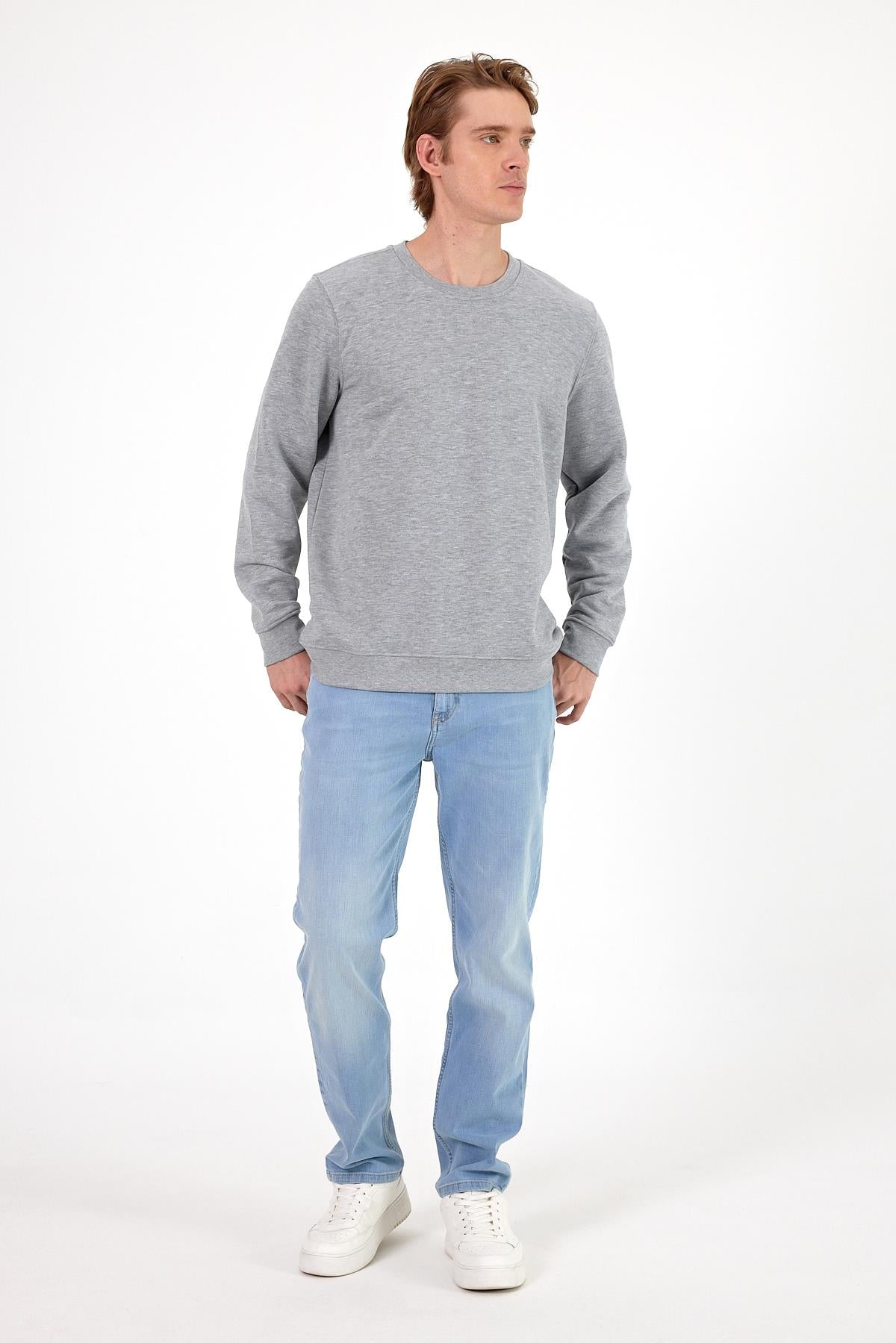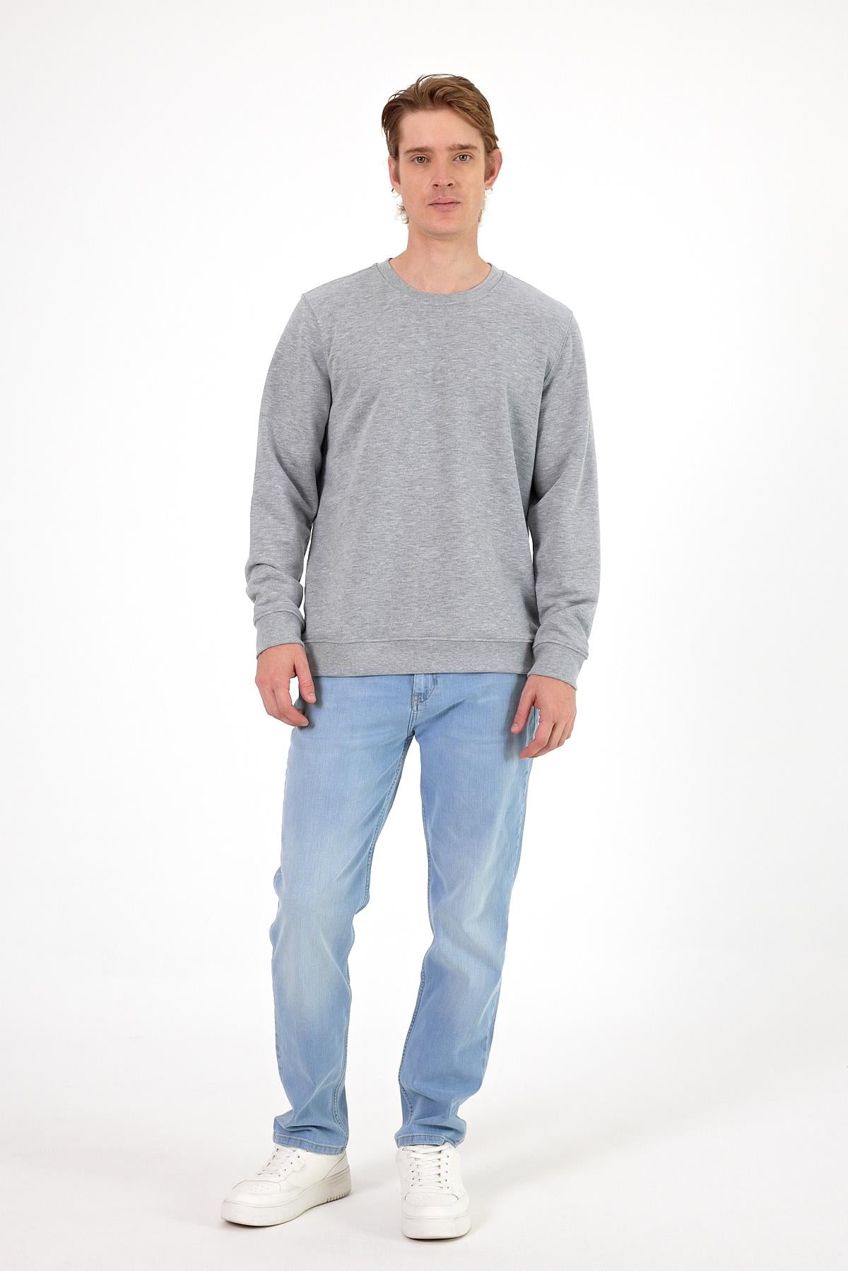 Erkek Rich Bisiklet Yaka Regular Fit 3 İplik Sweatshirt - Gri Melanj