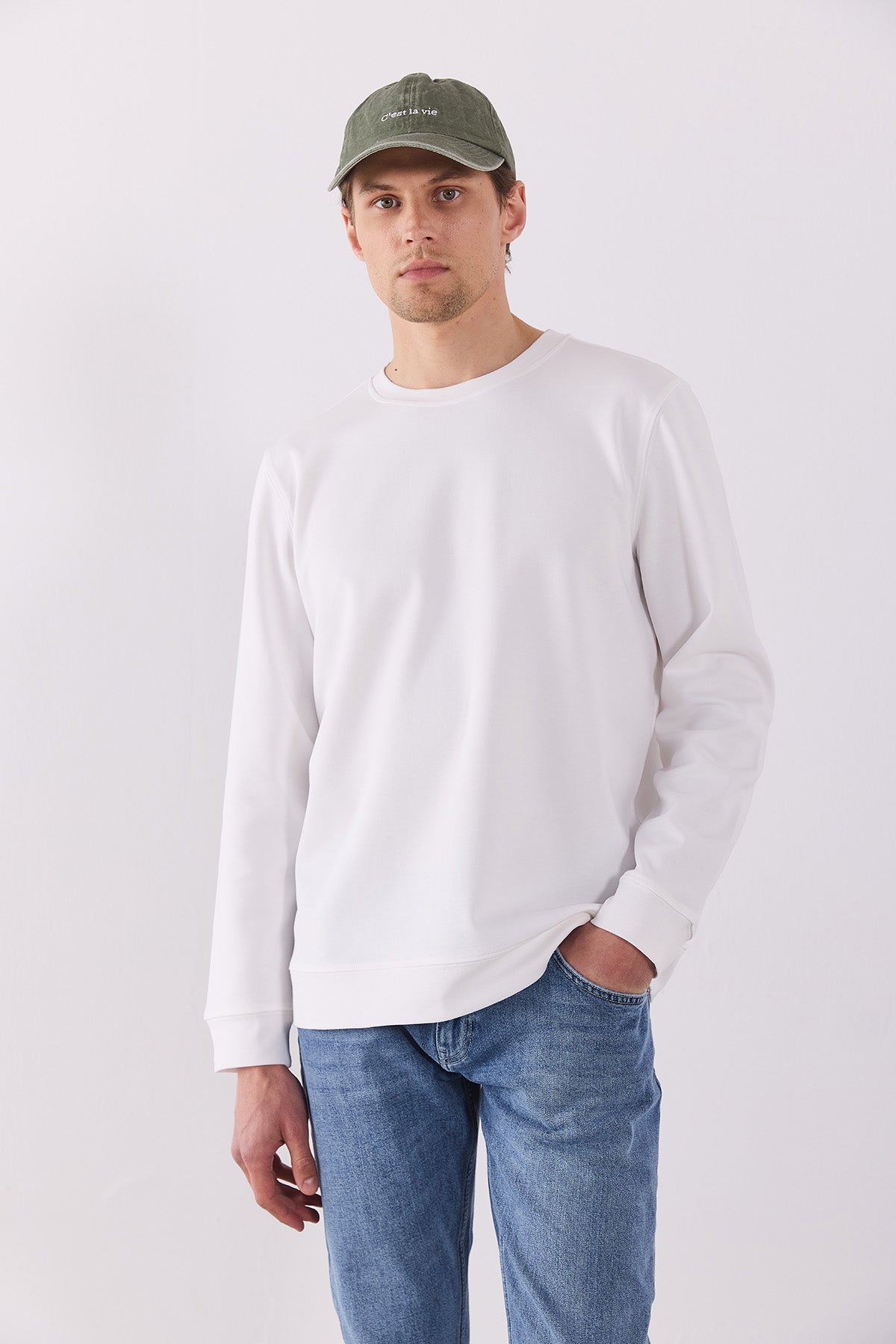 Erkek Rich Bisiklet Yaka Regular Fit Basic Sweatshirt - Fildişi