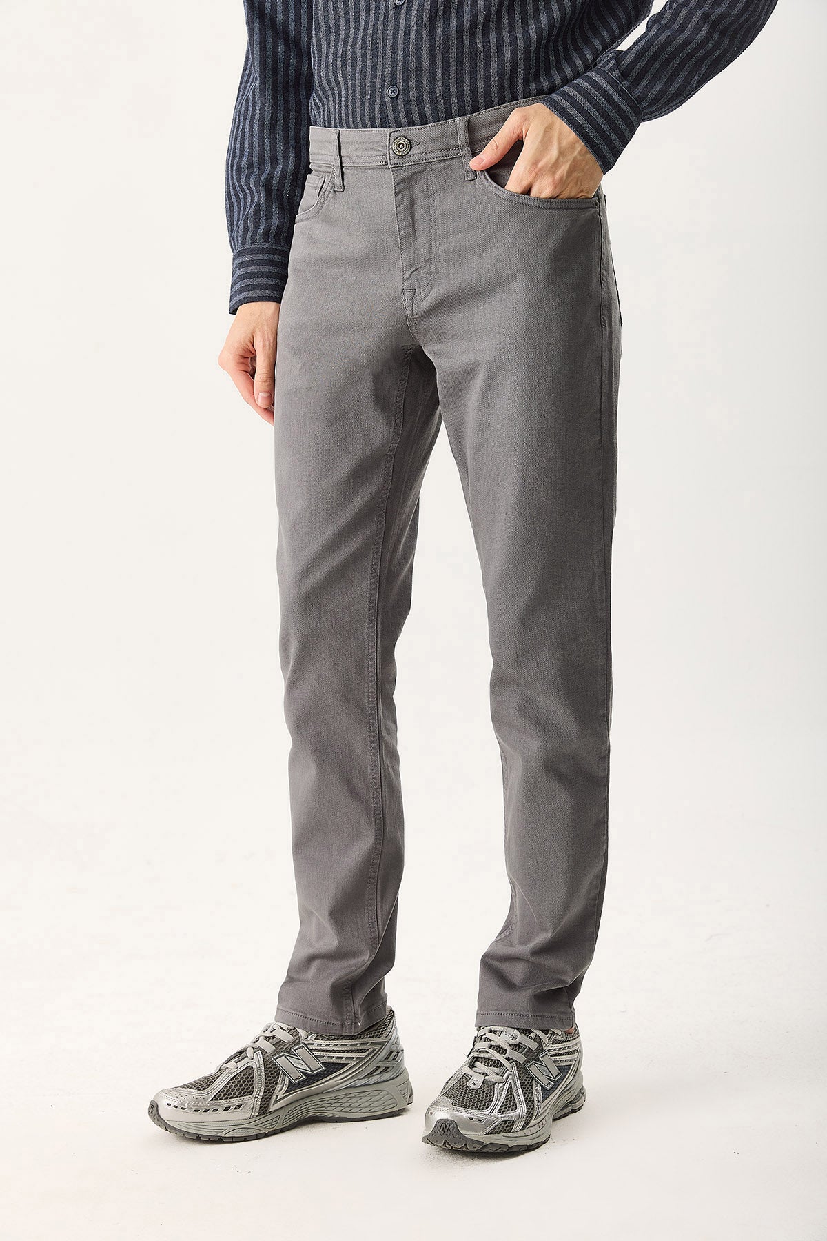 Erkek Richard Slim Fit 5 Cep Parça Boya Pantolon - Gri