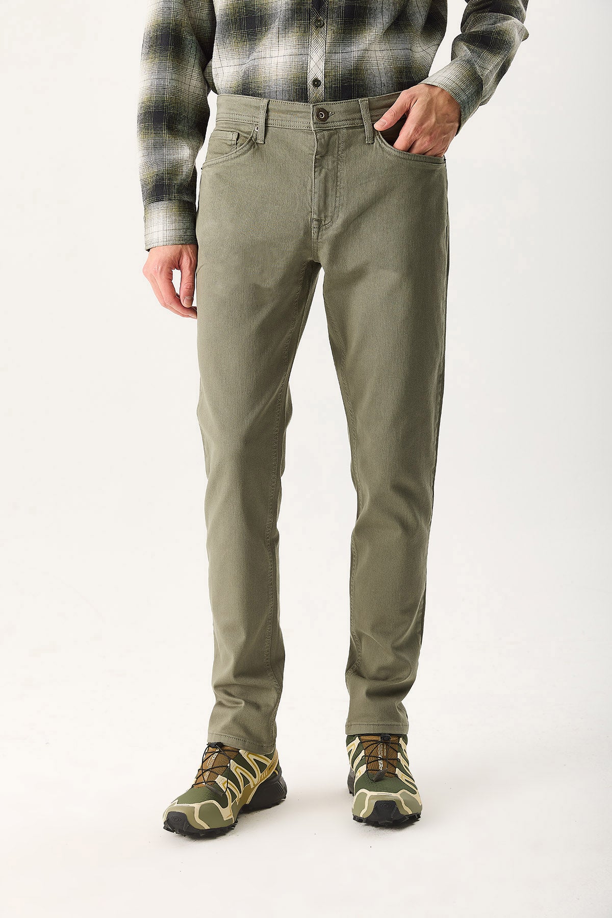 Erkek Richard Slim Fit 5 Cep Parça Boya Pantolon - Haki
