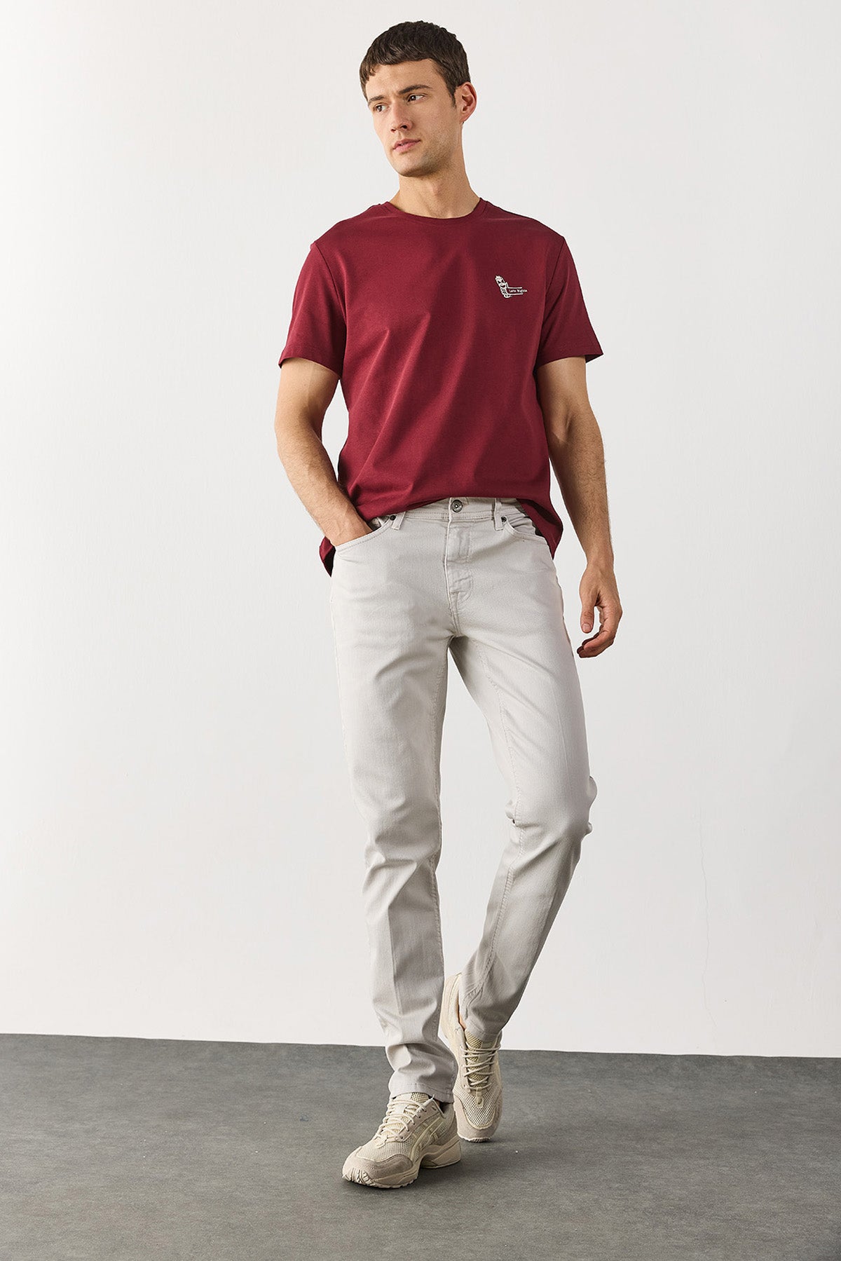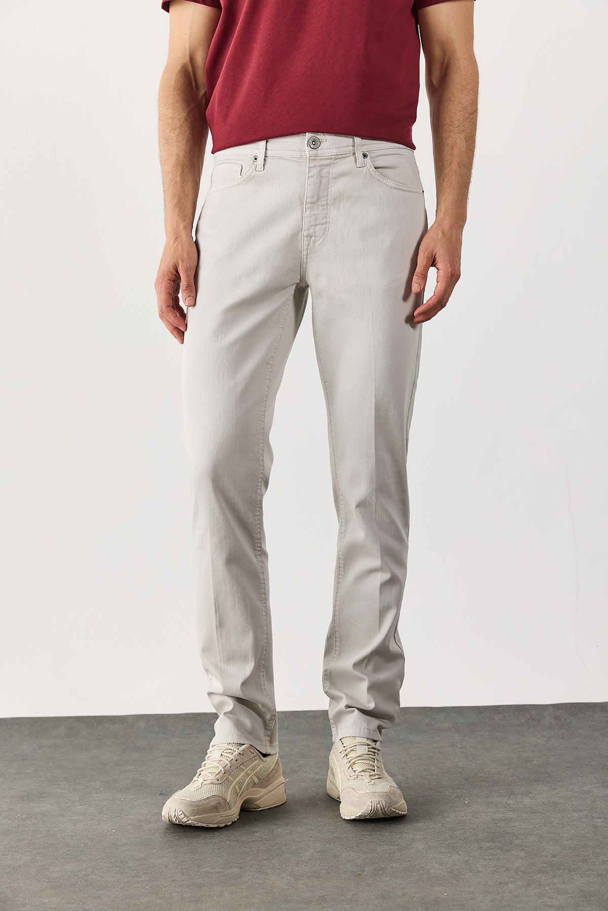 Erkek Richard Slim Fit 5 Cep Parça Boya Pantolon - Taş