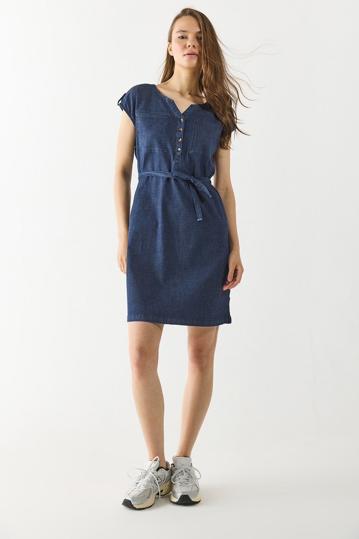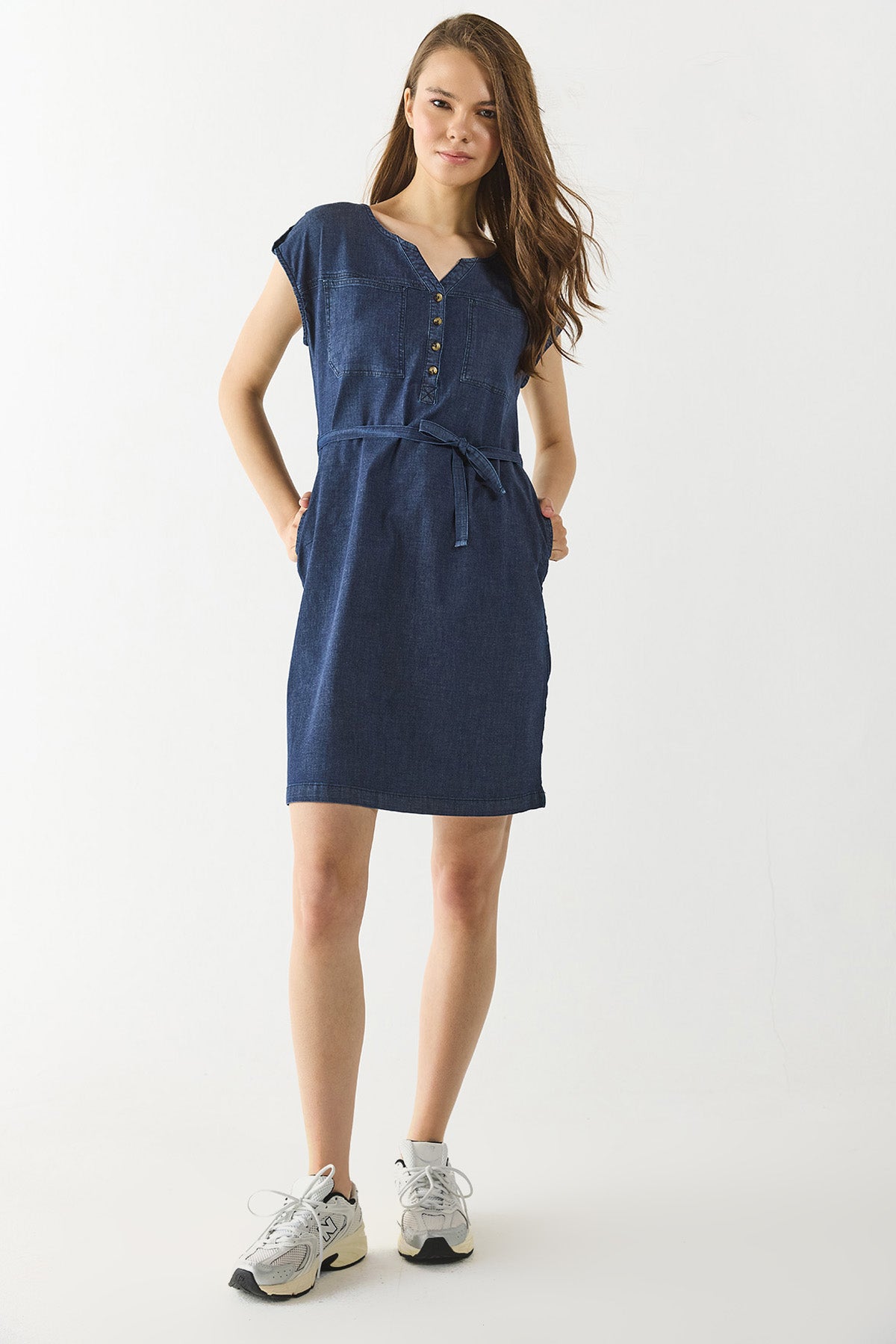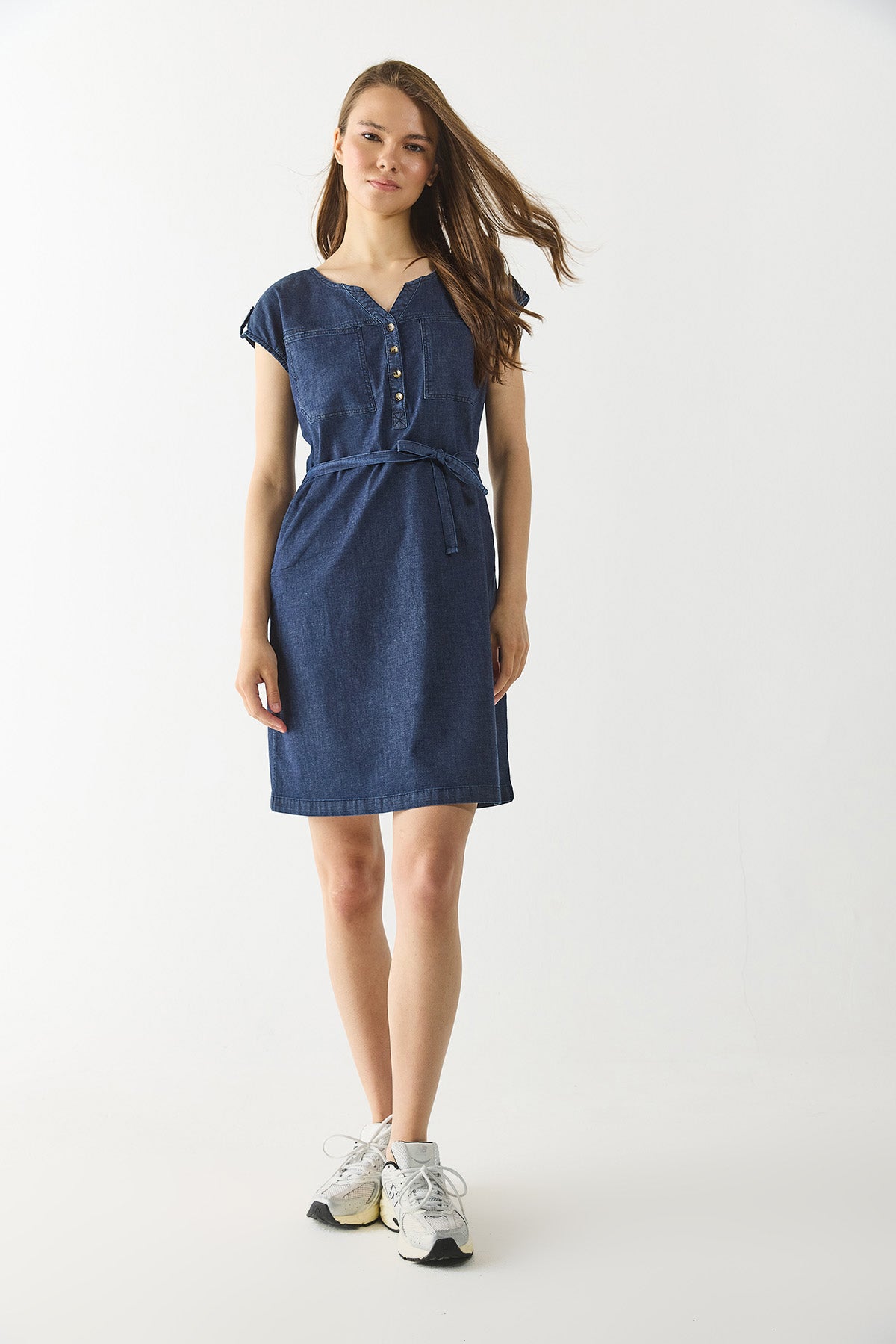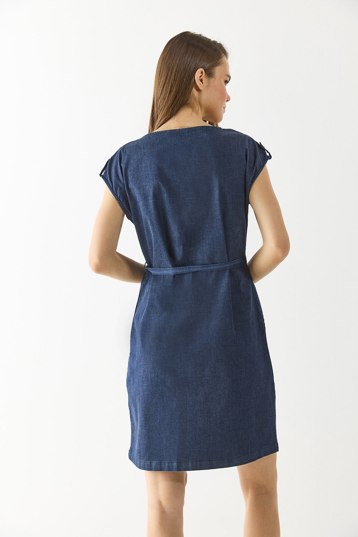 Kadın Riva Dark Blue Önü Düğmeli Regular Fit Jean Elbise - Dark Blue