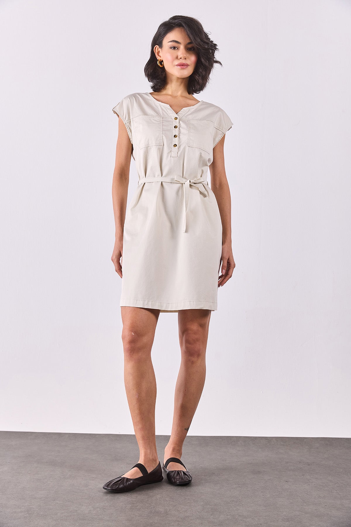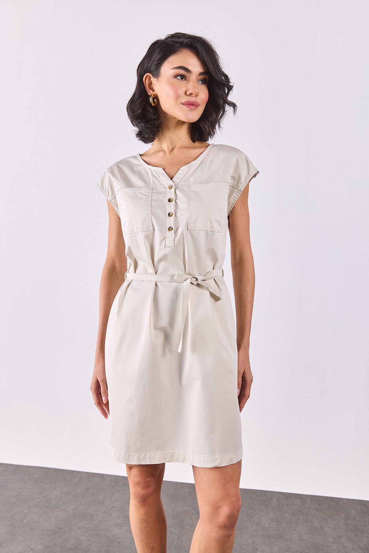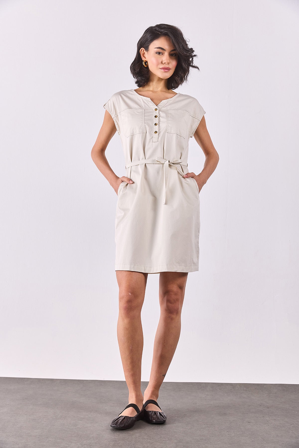 Kadın Riva Önü Düğmeli Regular Fit Gabardin Elbise - Kemik