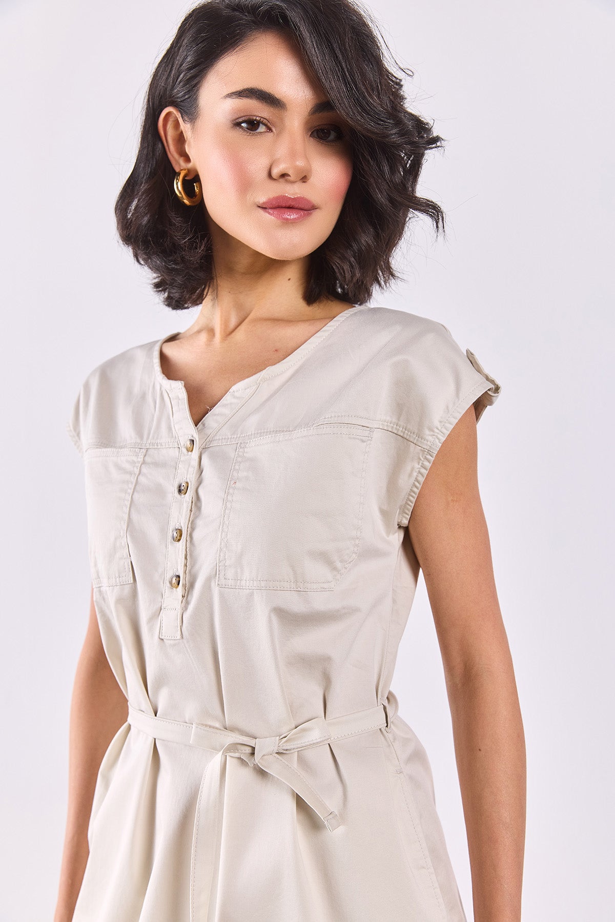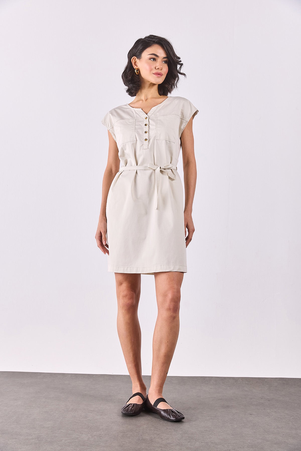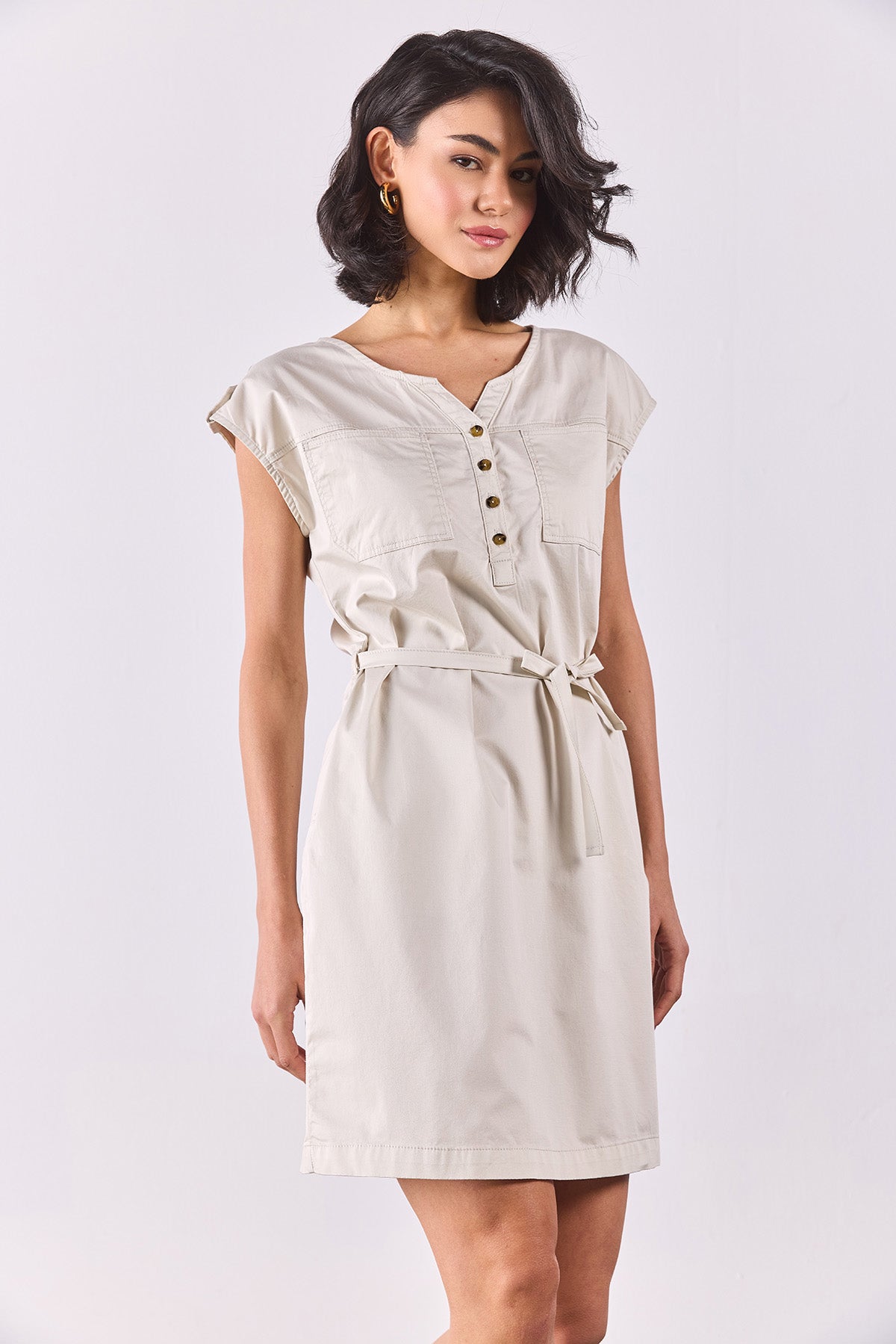 Kadın Riva Önü Düğmeli Regular Fit Gabardin Elbise - Kemik