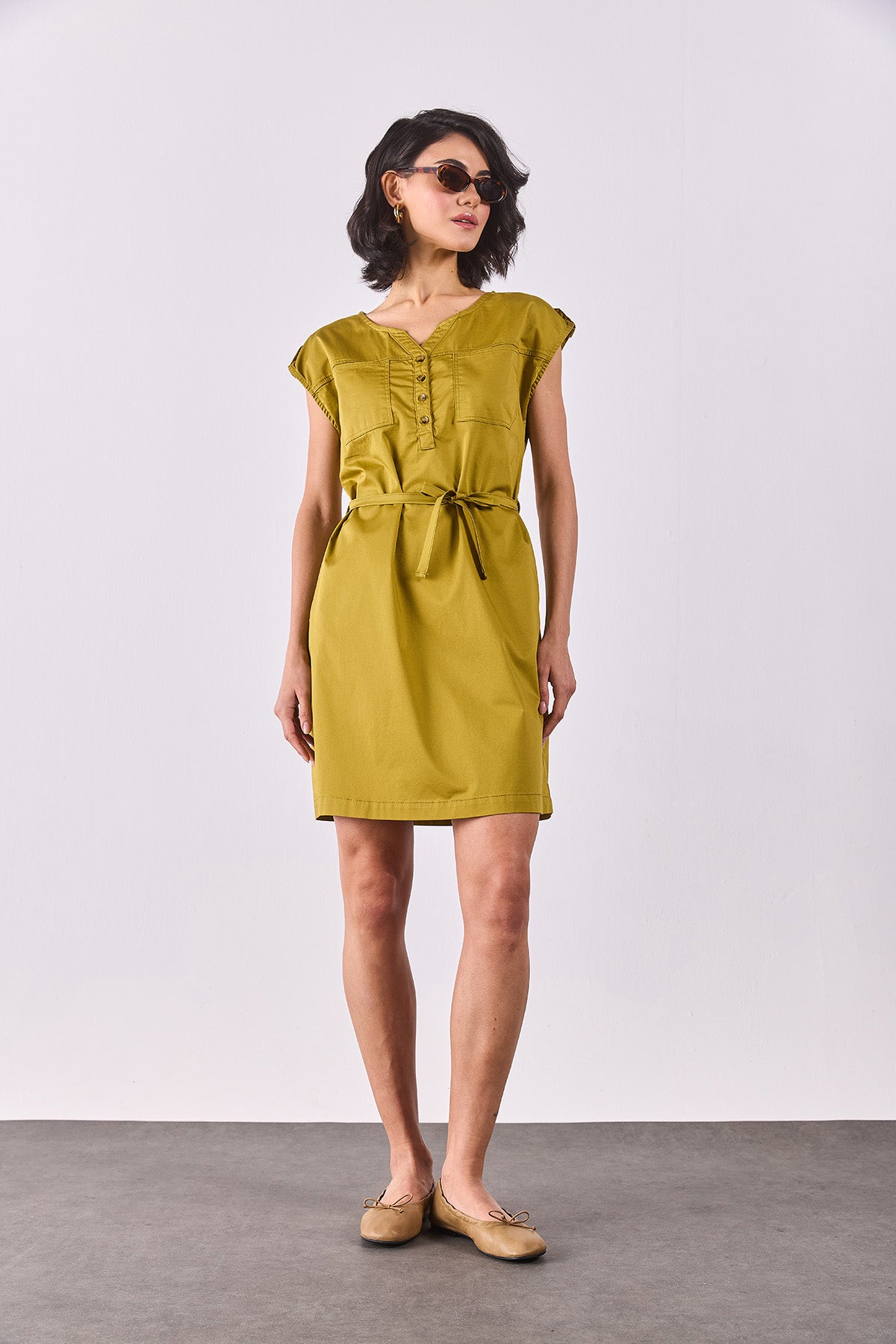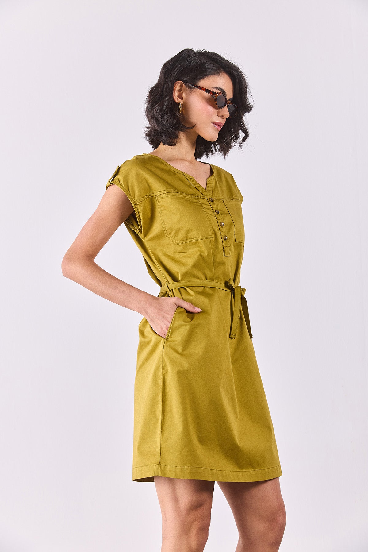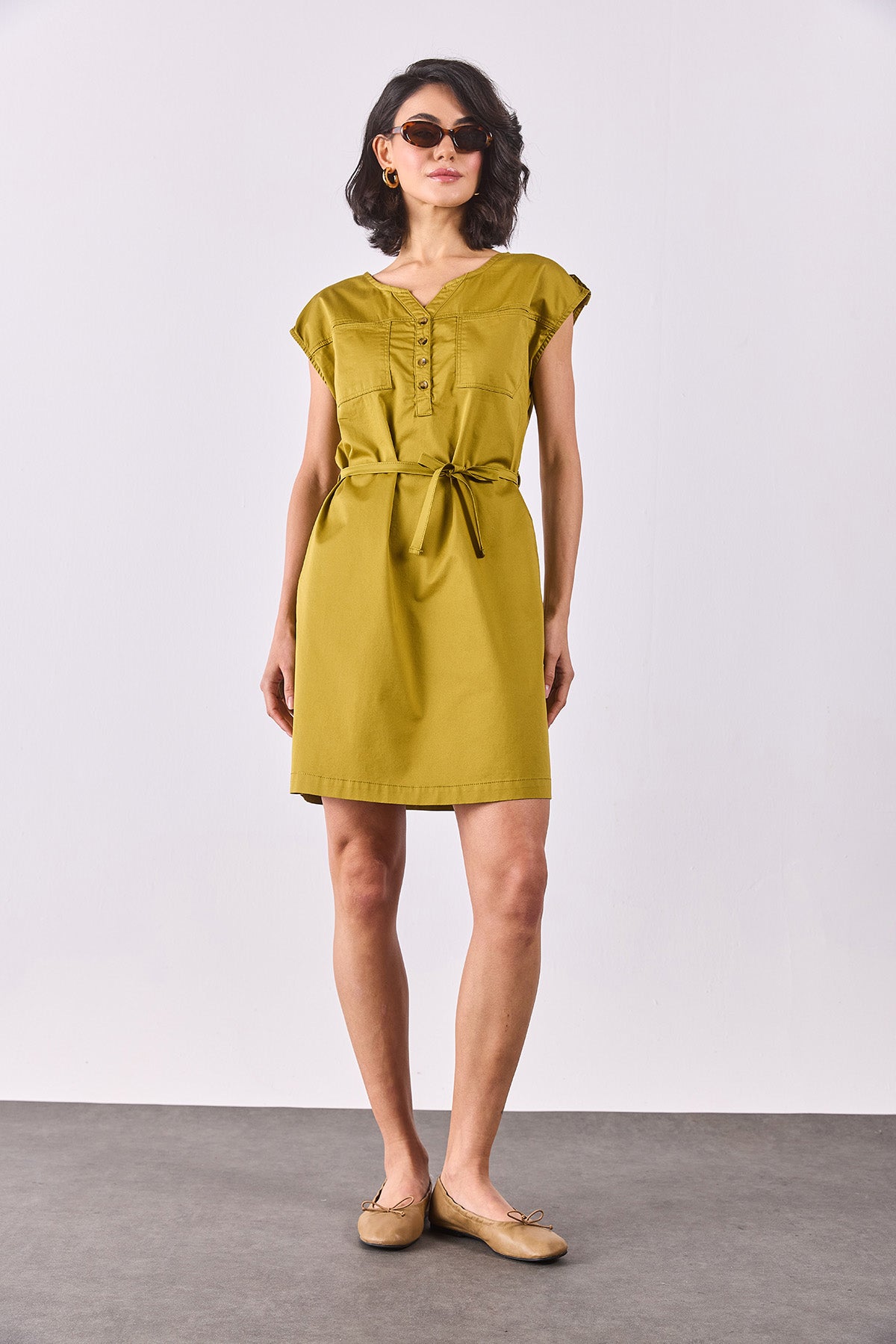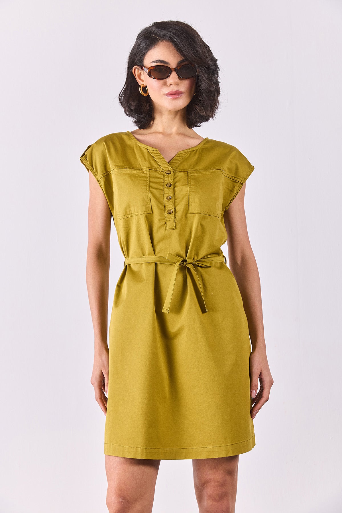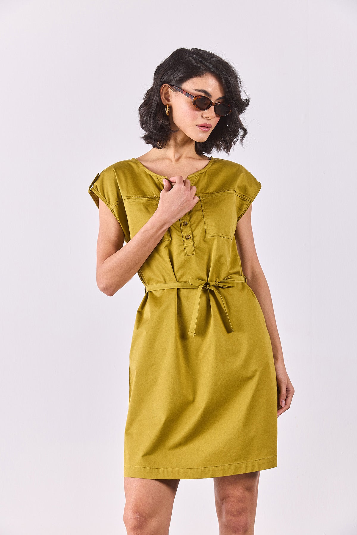 Kadın Riva Önü Düğmeli Regular Fit Gabardin Elbise - Yağ Yeşili
