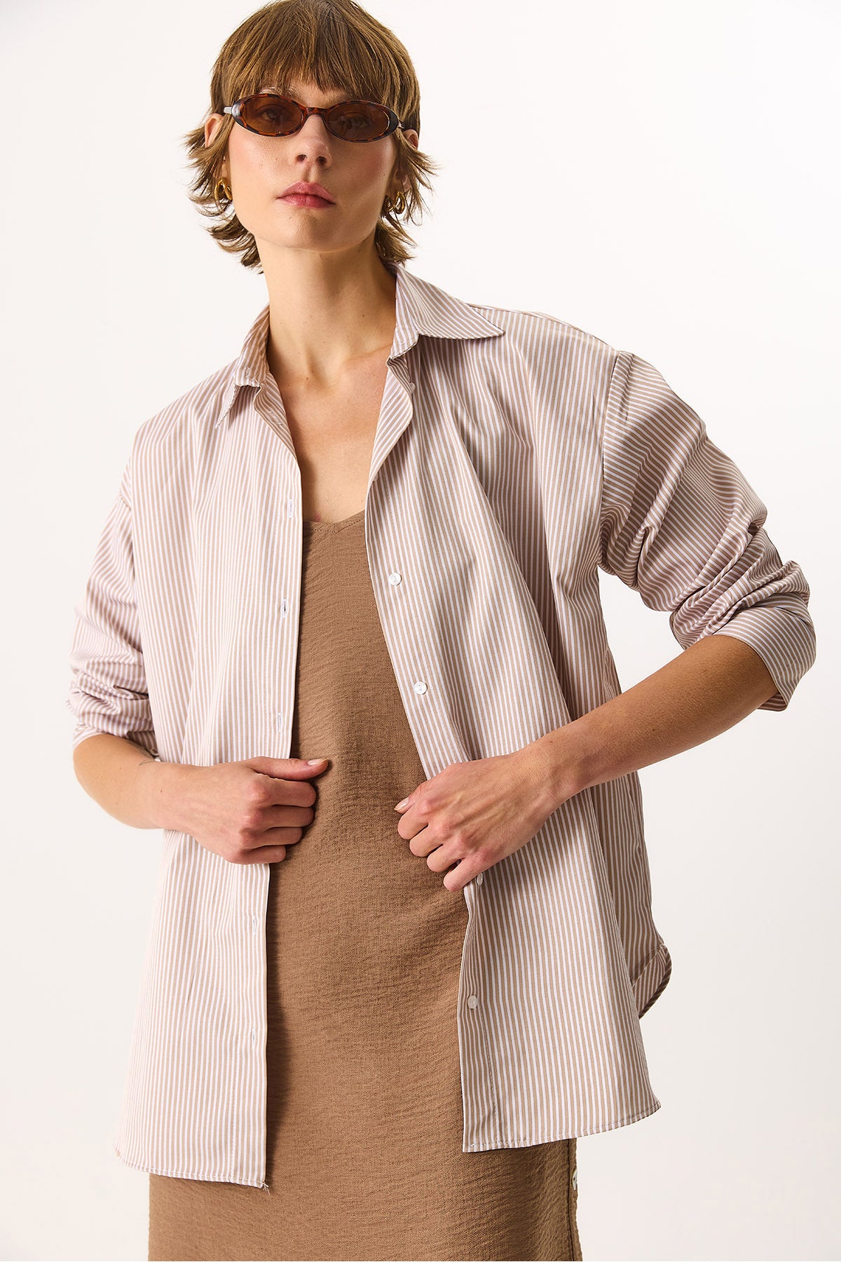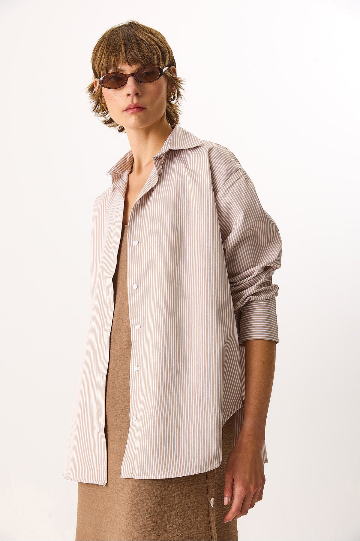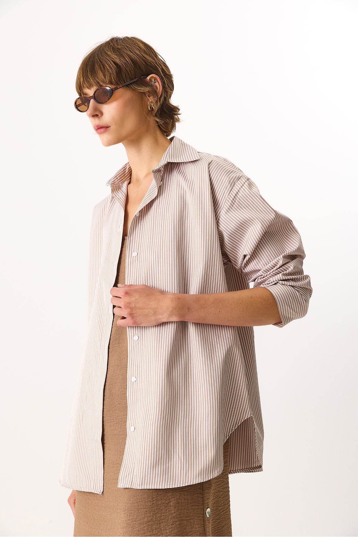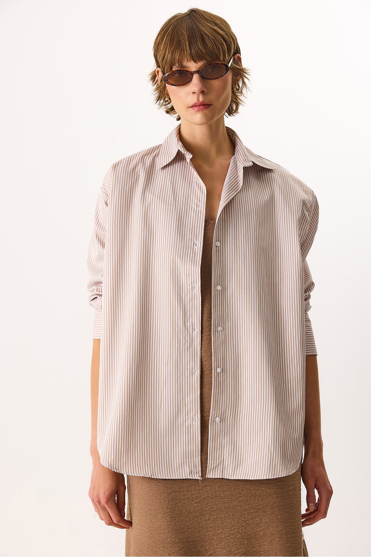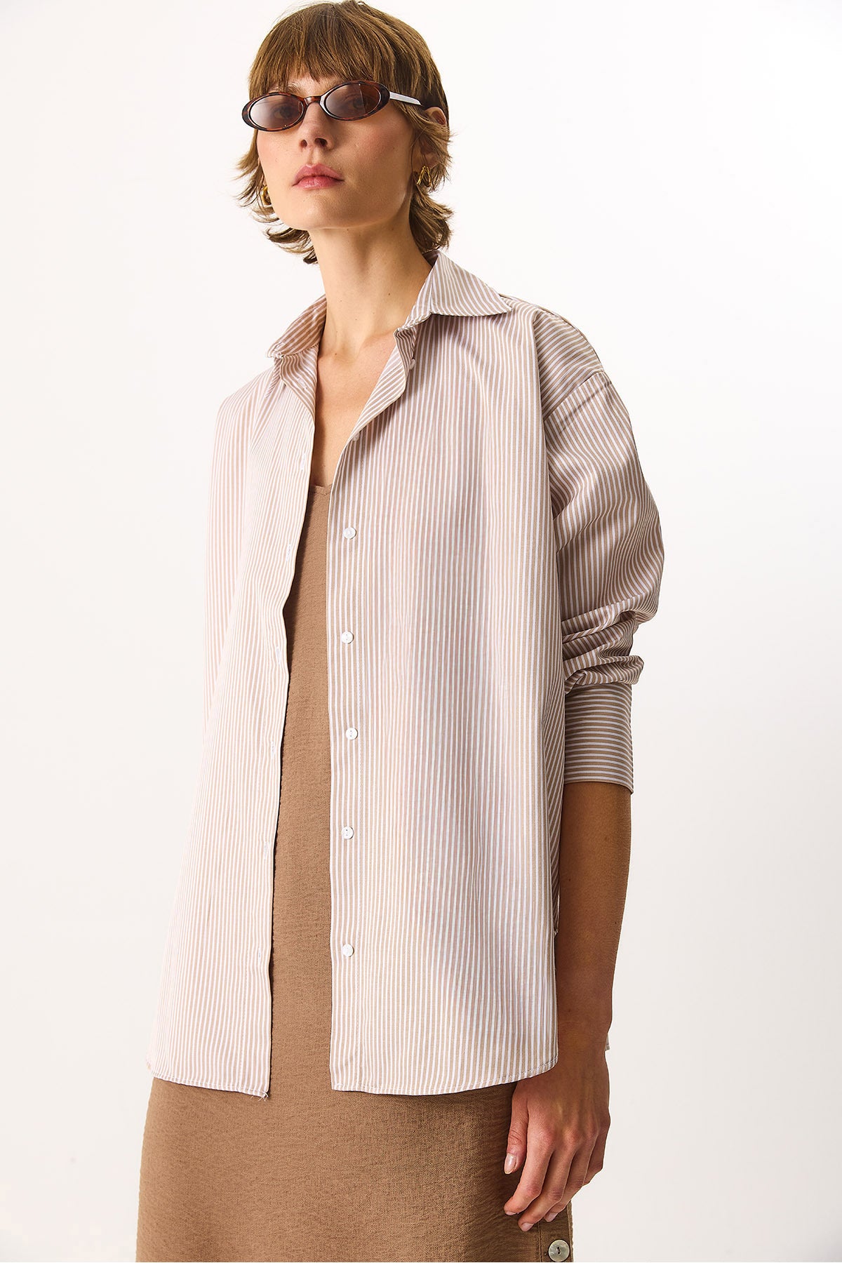 Kadın Rose Regular Fit Çizgili Gömlek - Taş Çizgili