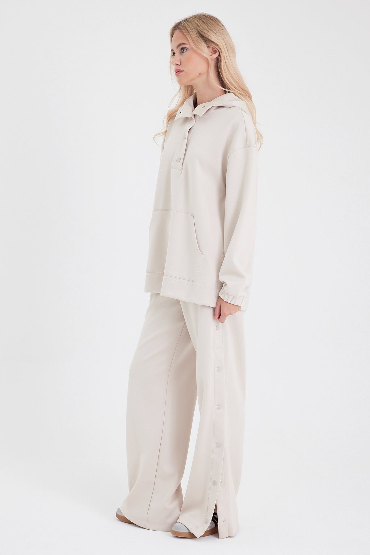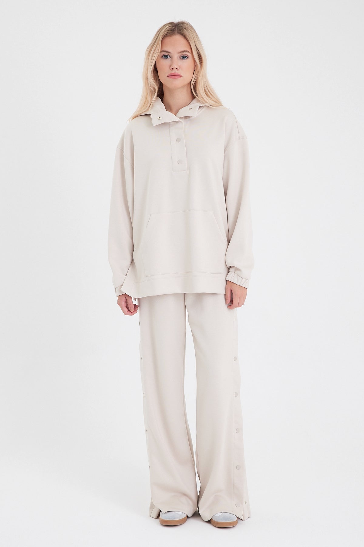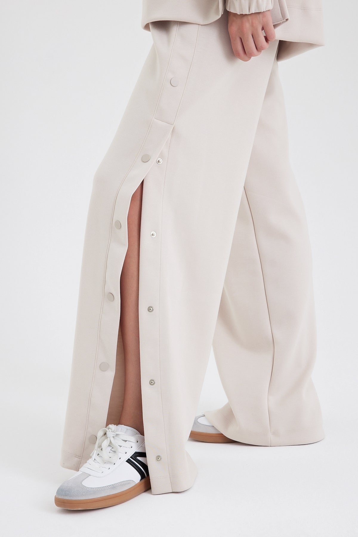Kadın Ruby Geniş Paça Beli Lastikli Yanı Çıtçıtlı Jogging Pantolon (CUPRO) - Kemik