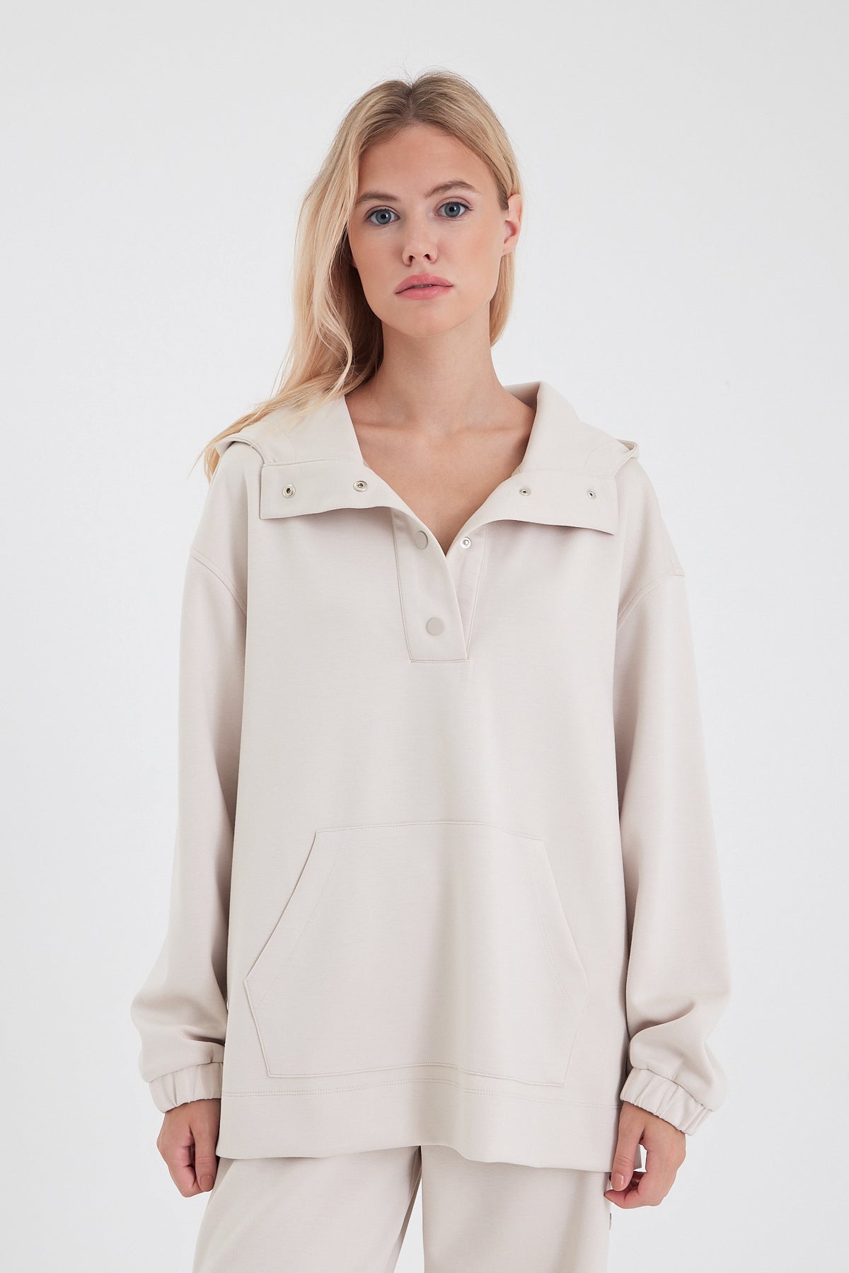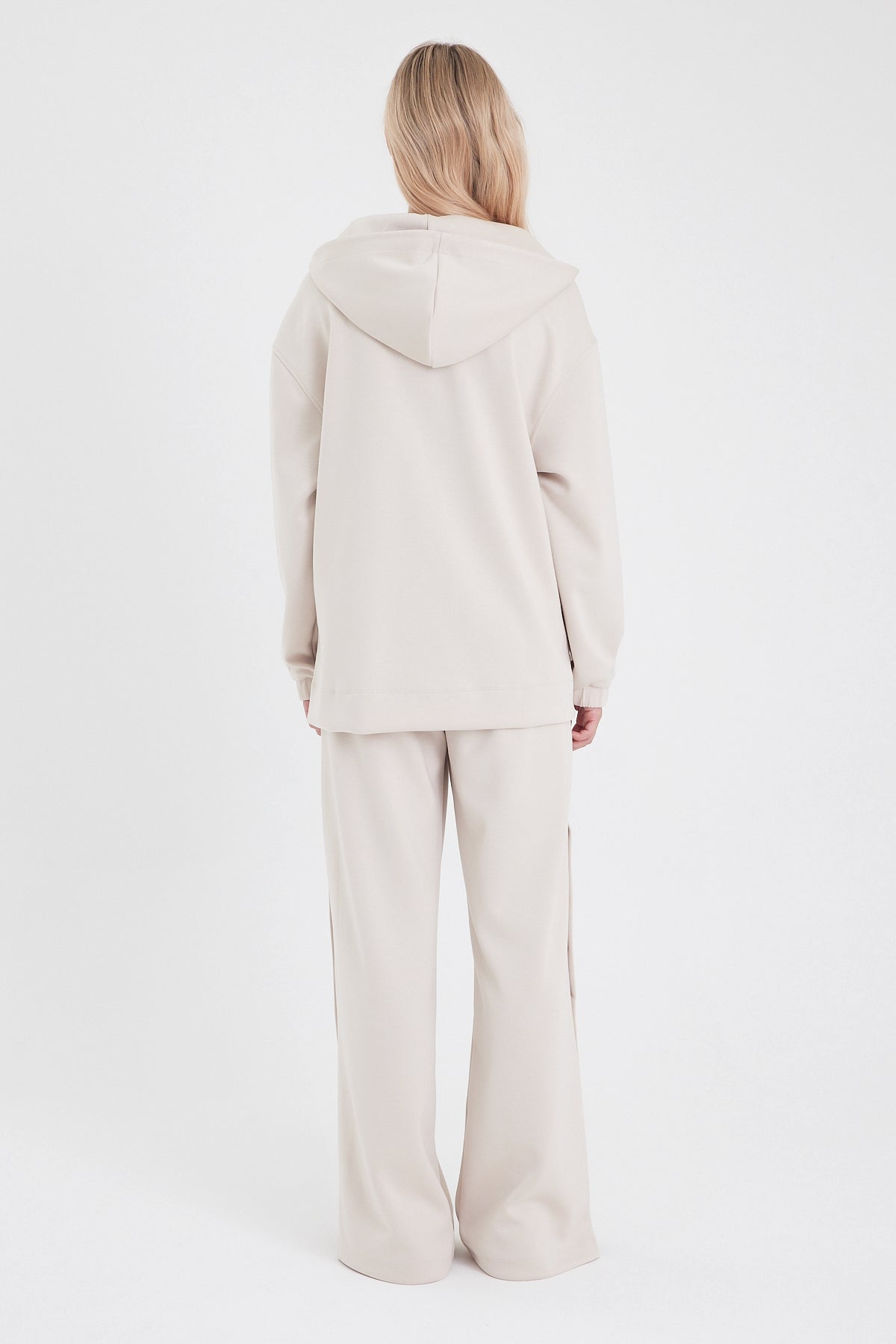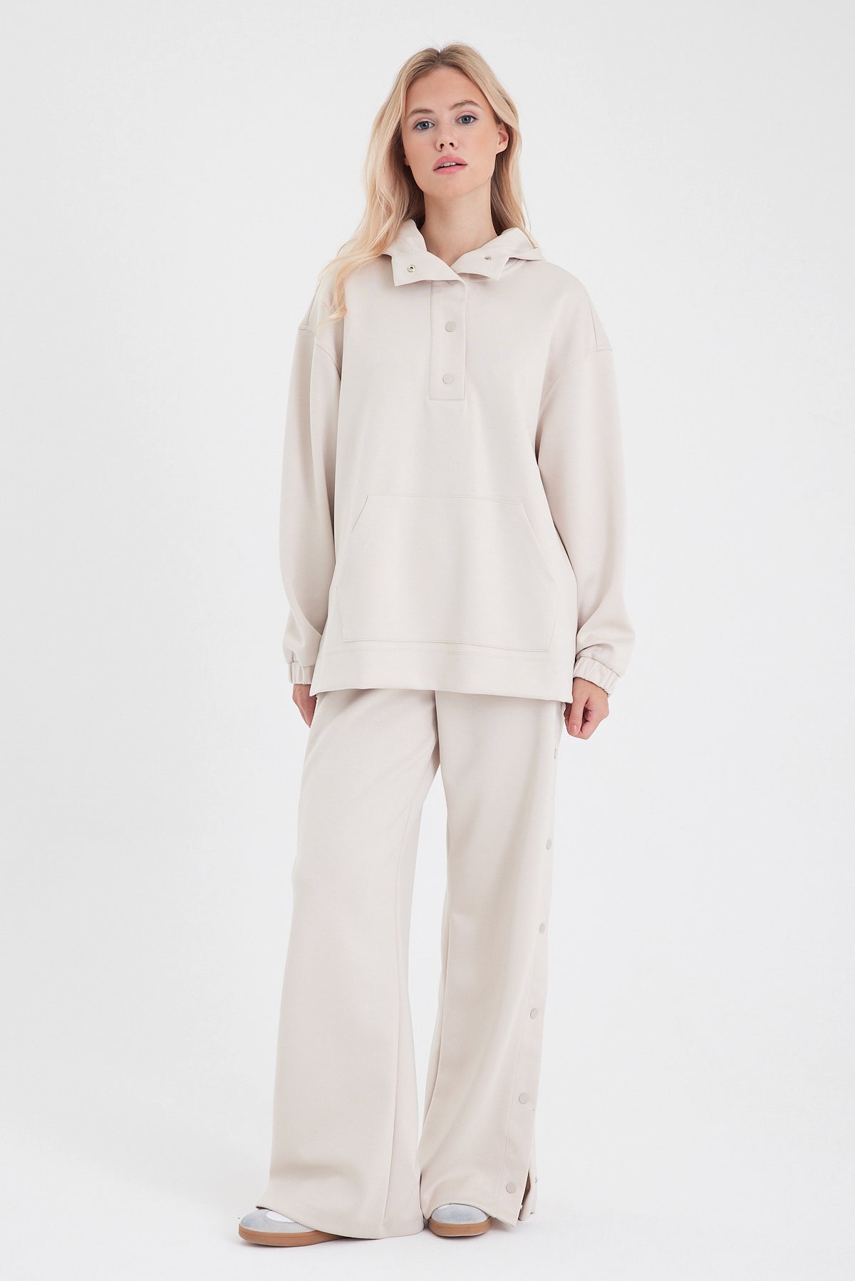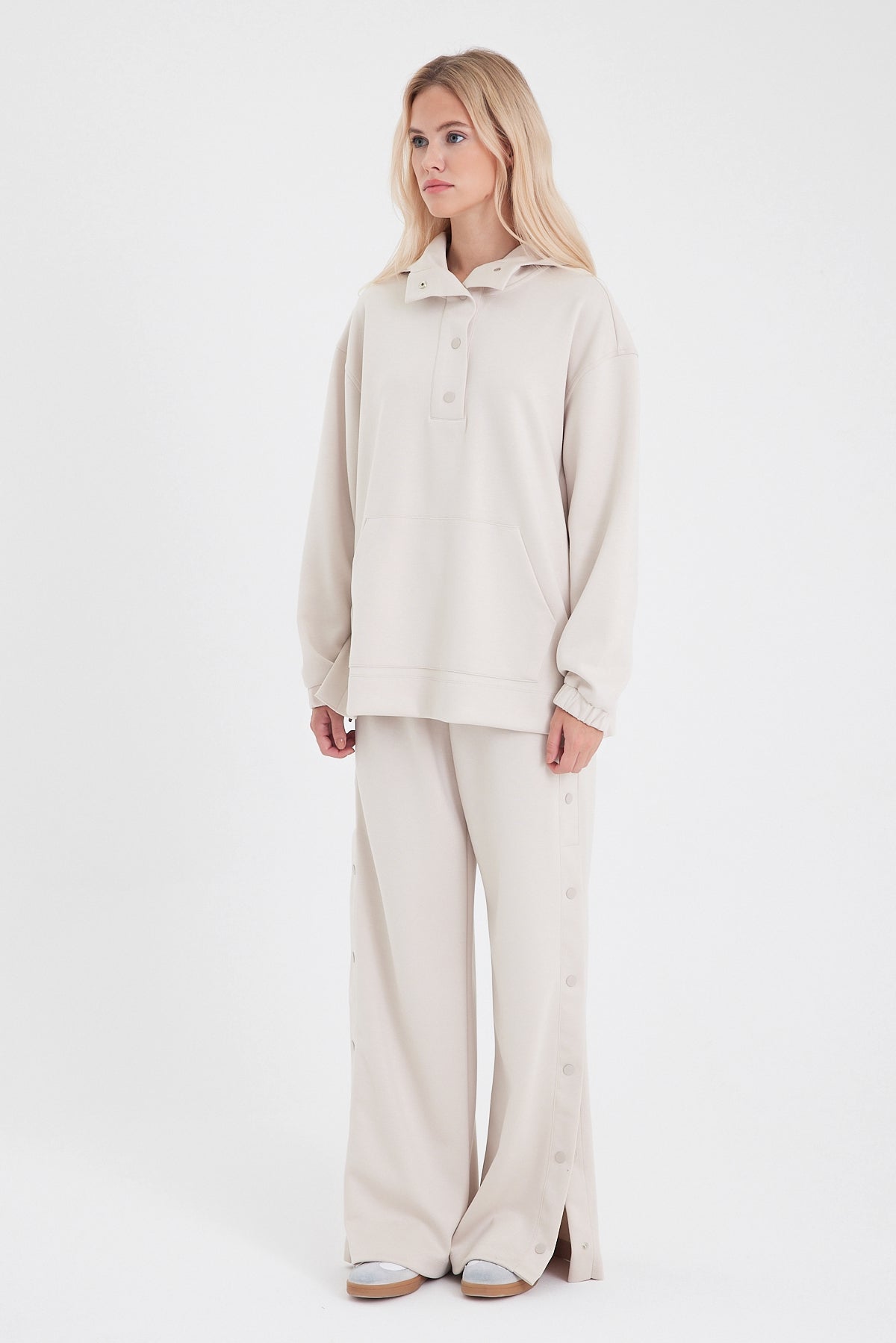 Kadın Ruby Geniş Paça Beli Lastikli Yanı Çıtçıtlı Jogging Pantolon (CUPRO) - Kemik