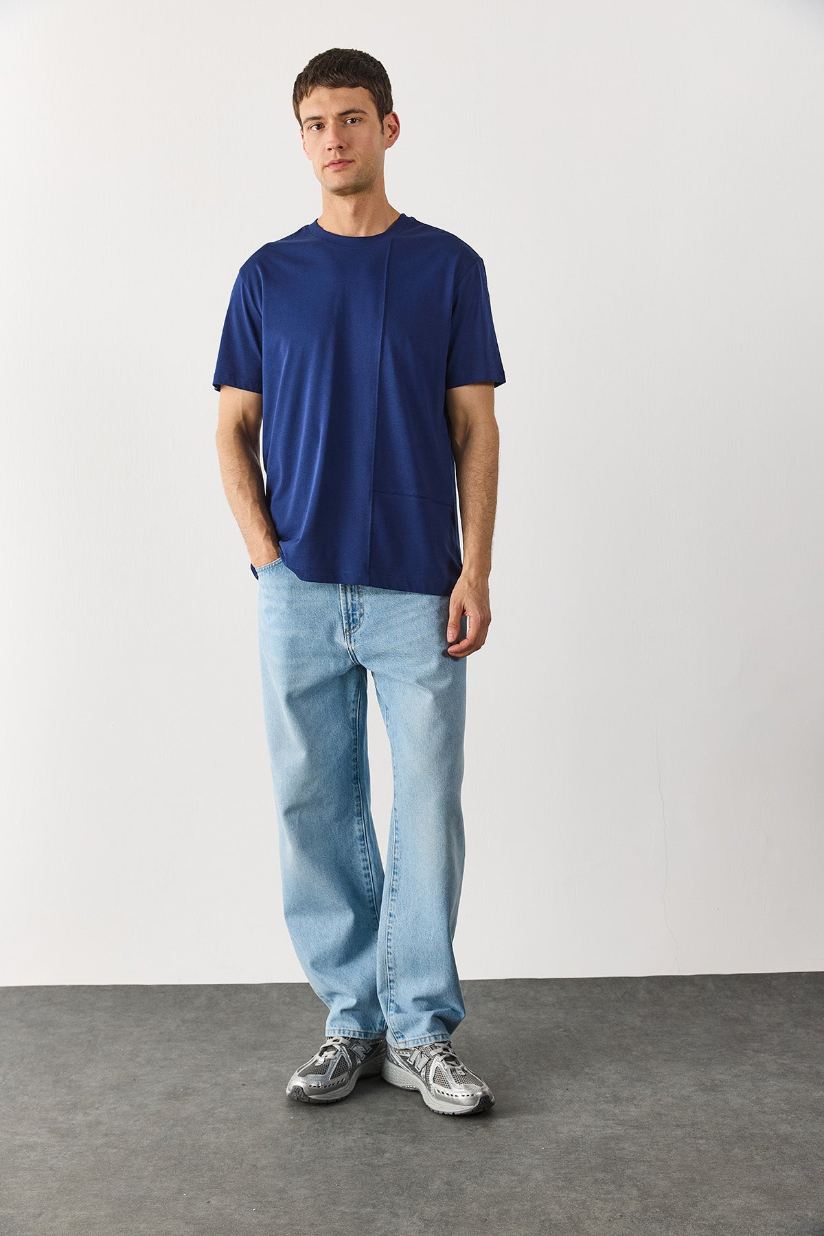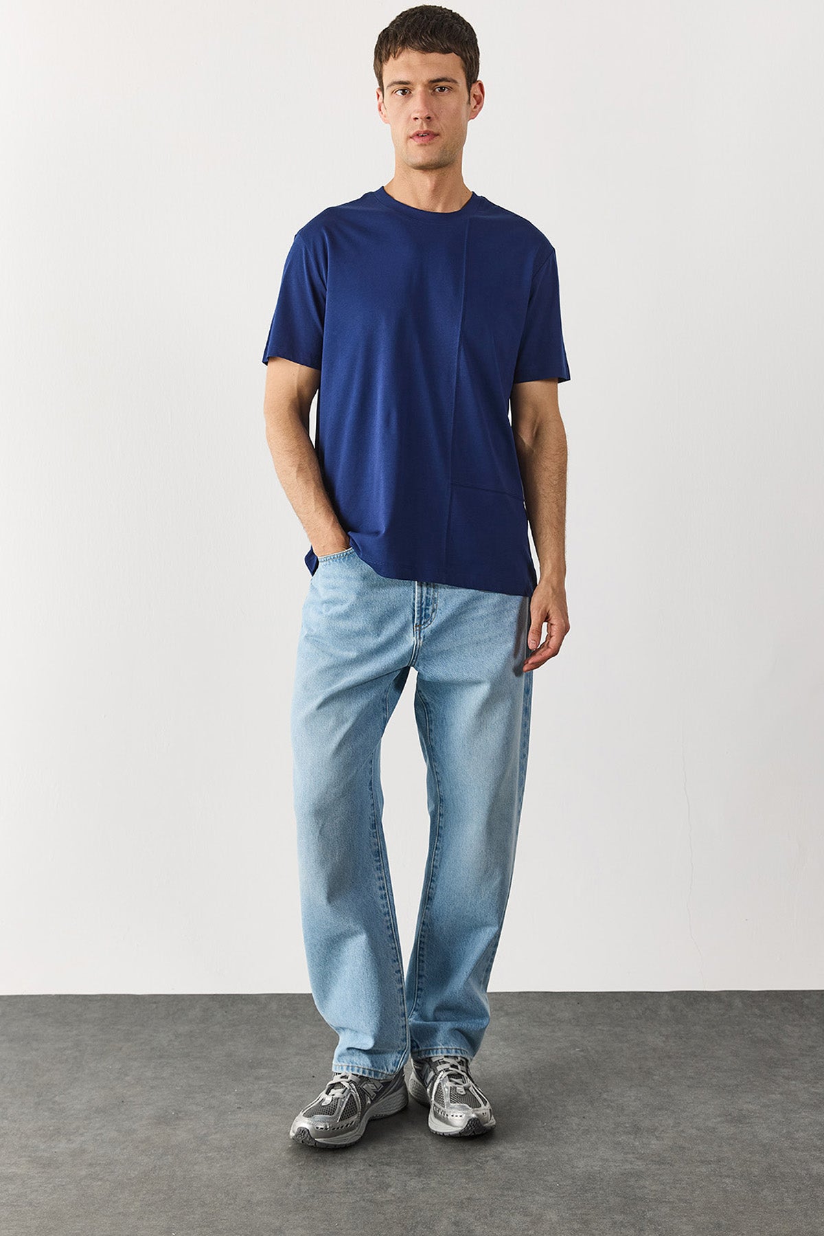 Erkek Ryan Bisiklet Yaka Regular Fit Tişört %100 Pamuk - Lacivert