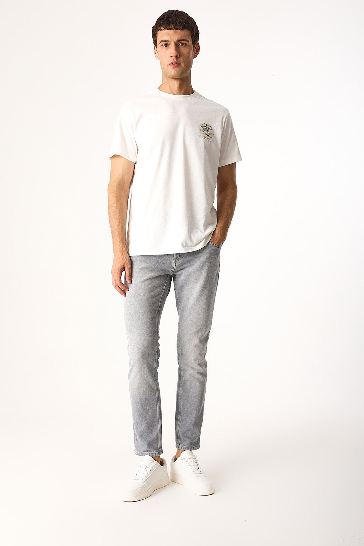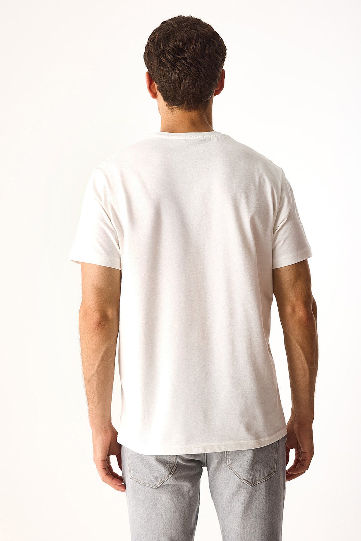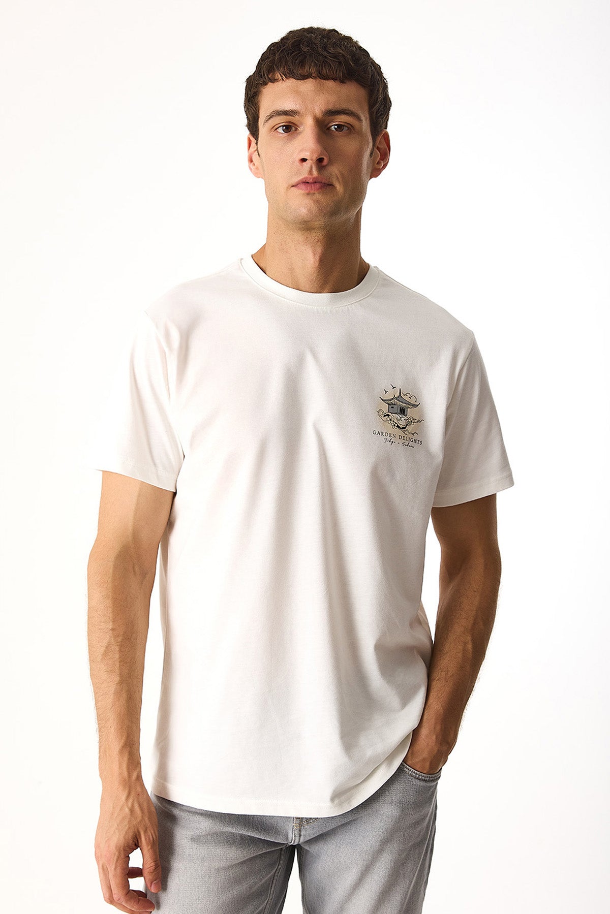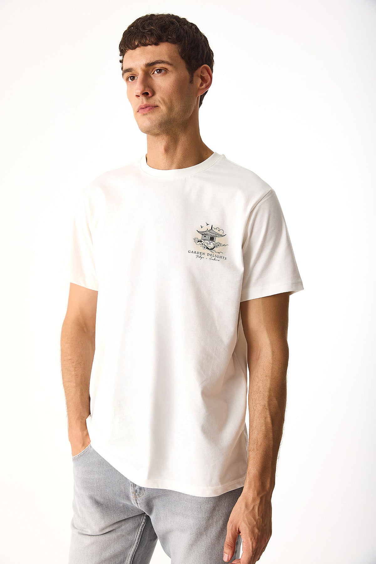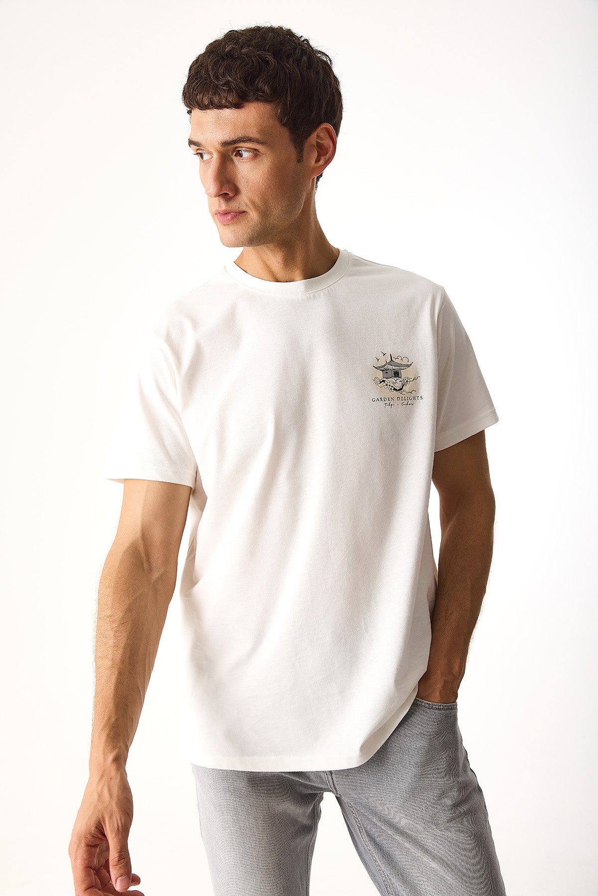 Erkek Sakura Baskılı Bisiklet Yaka Regular Fit Tişört %100 Pamuk - Fildişi
