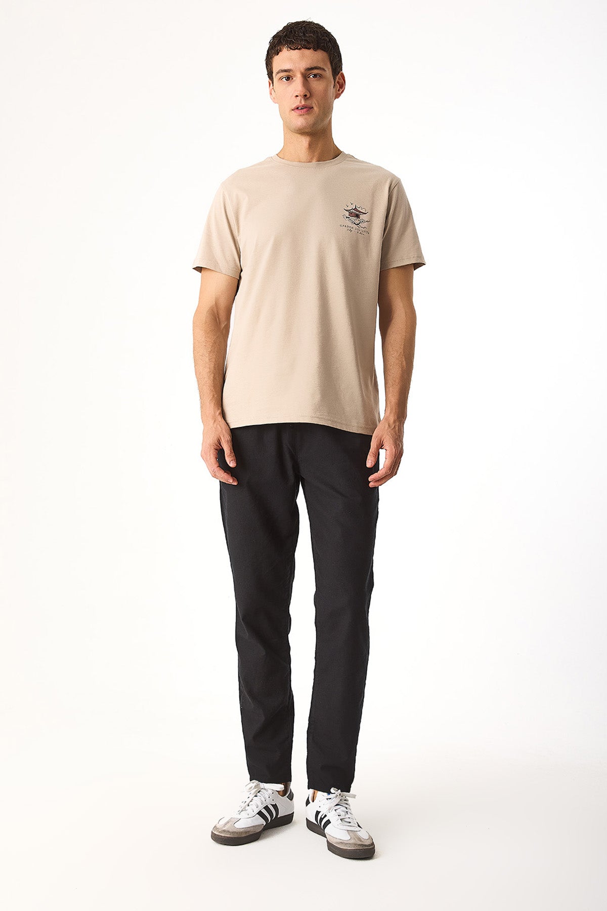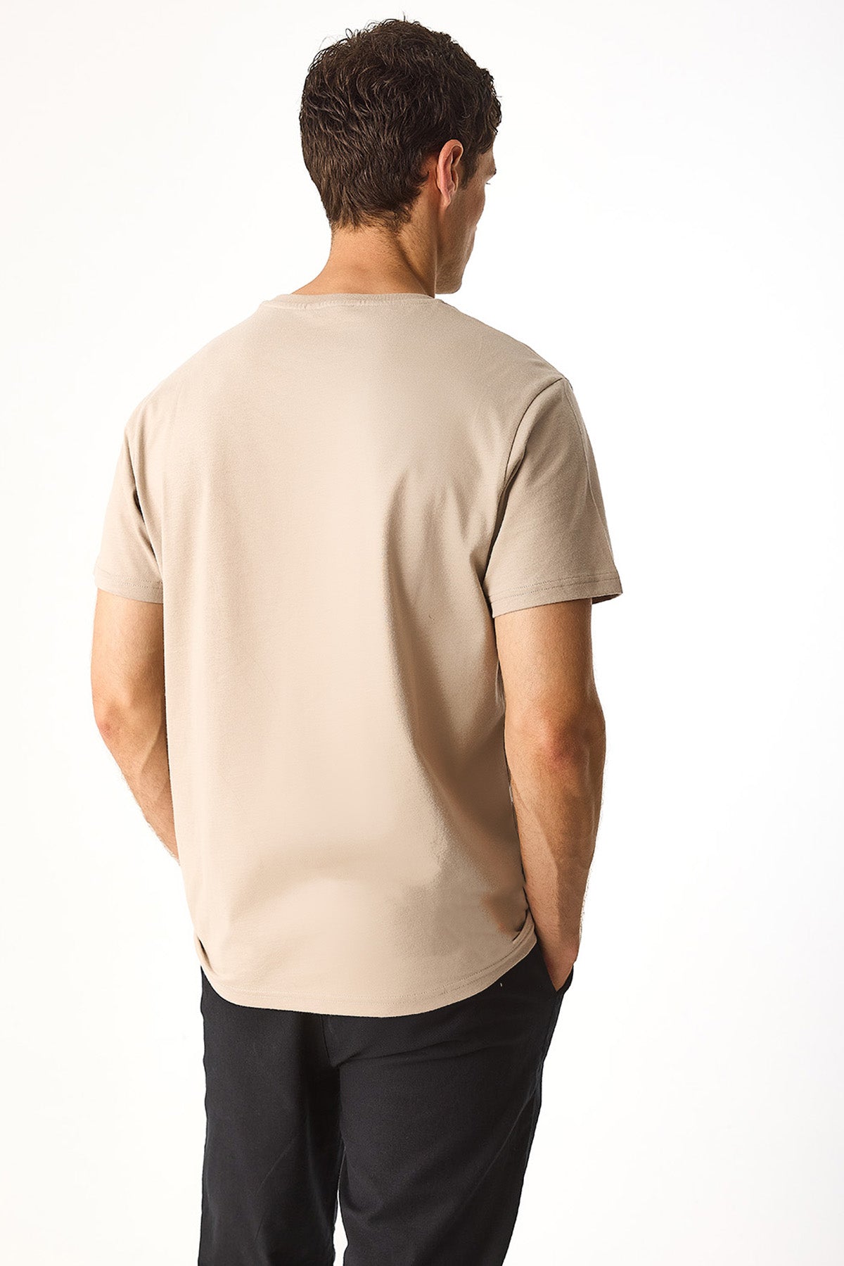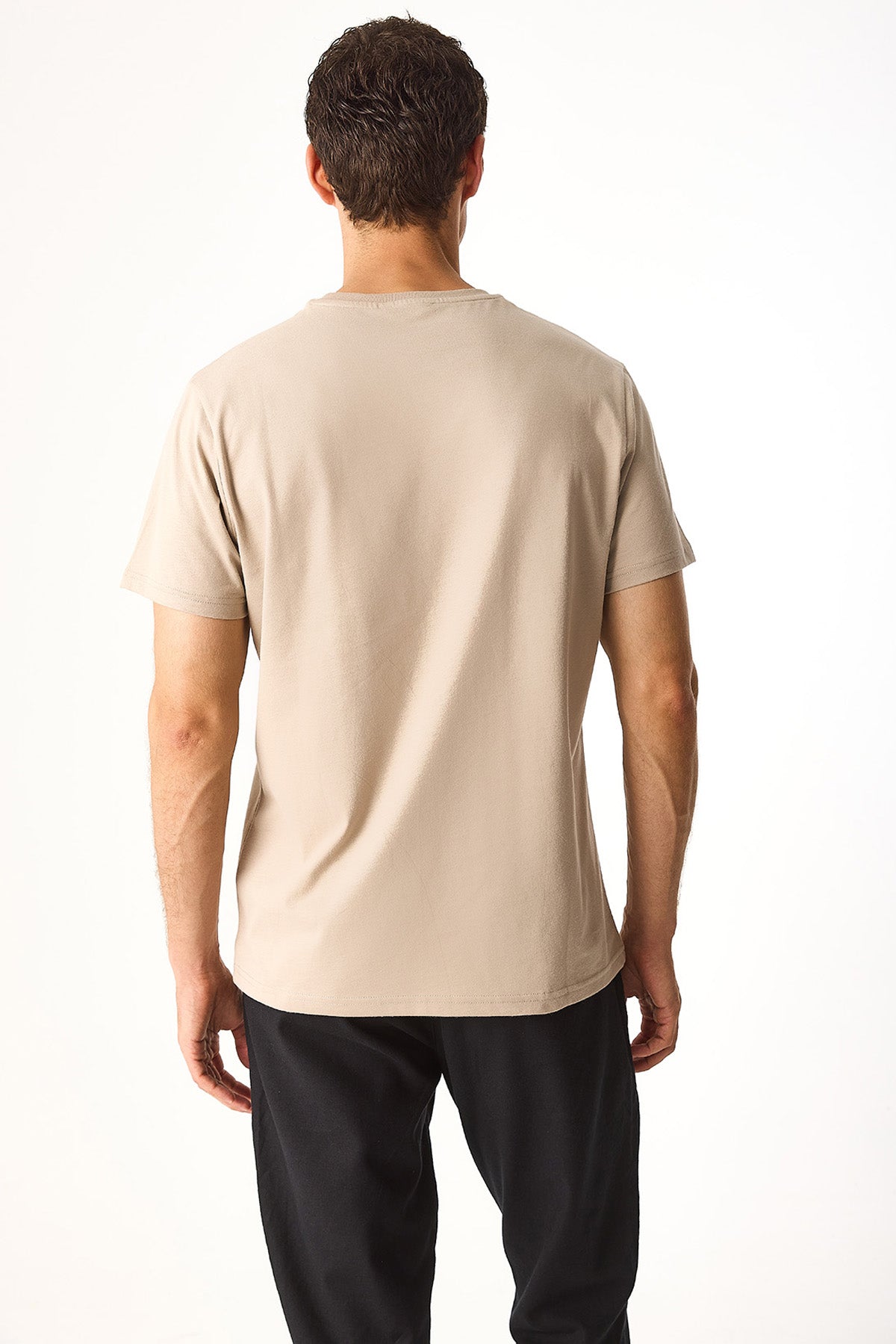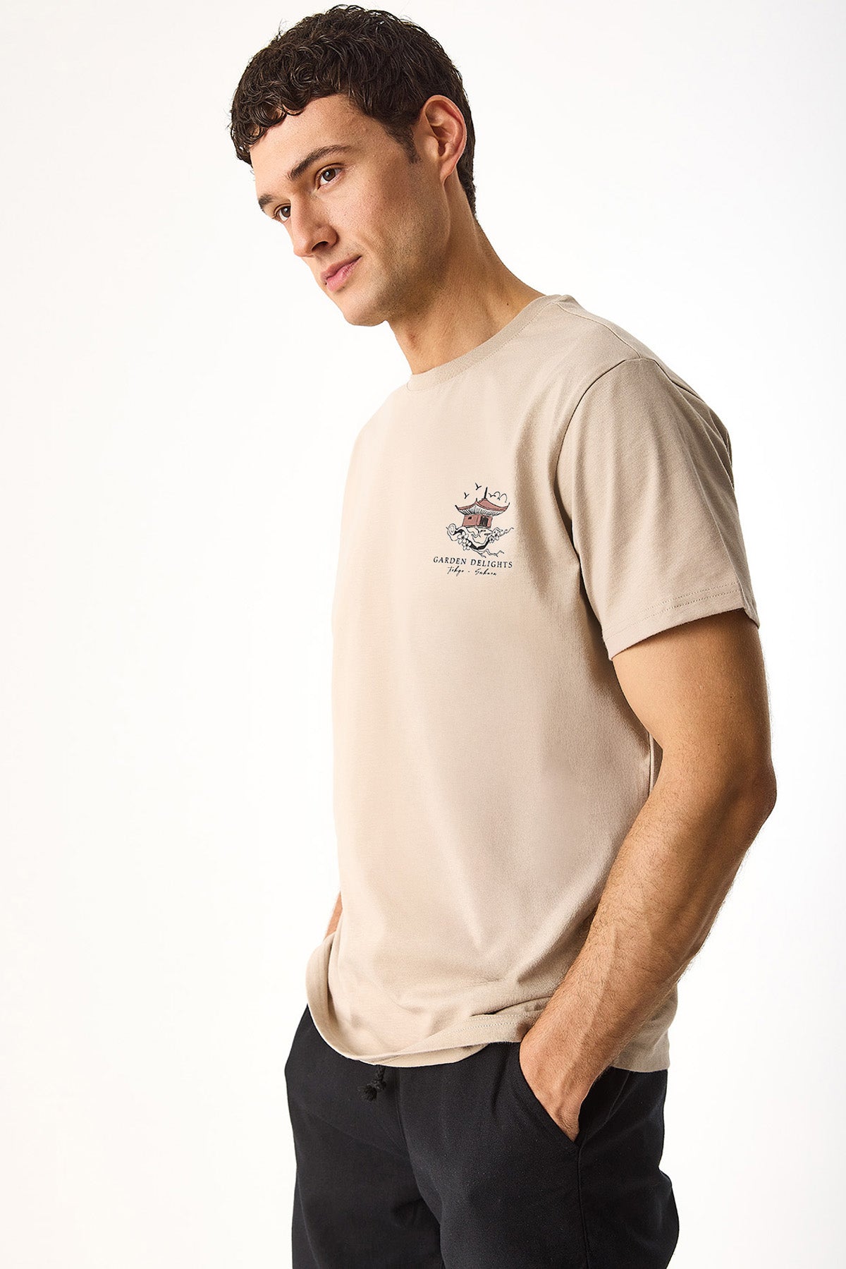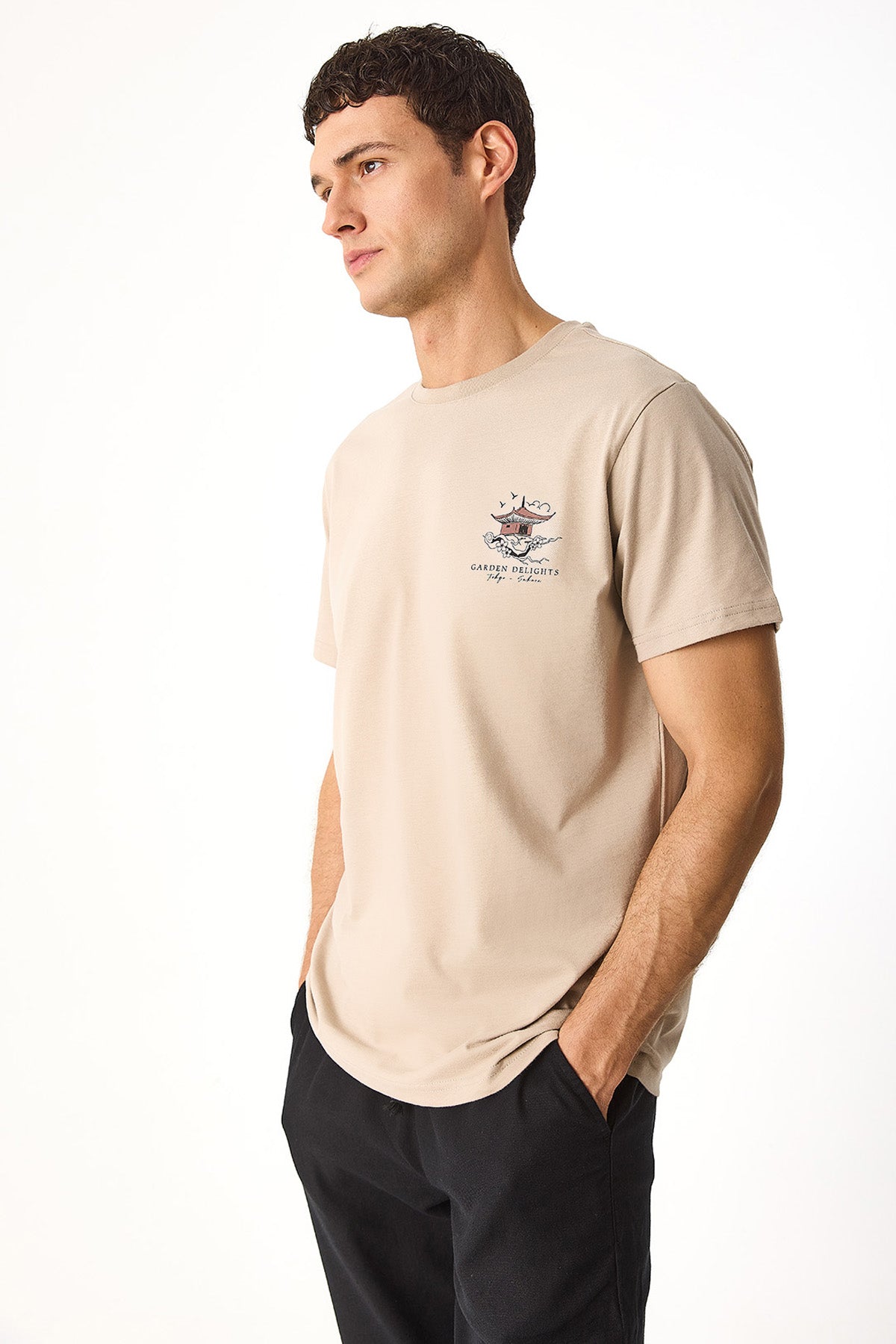 Erkek Sakura Baskılı Bisiklet Yaka Regular Fit Tişört %100 Pamuk - Vizon