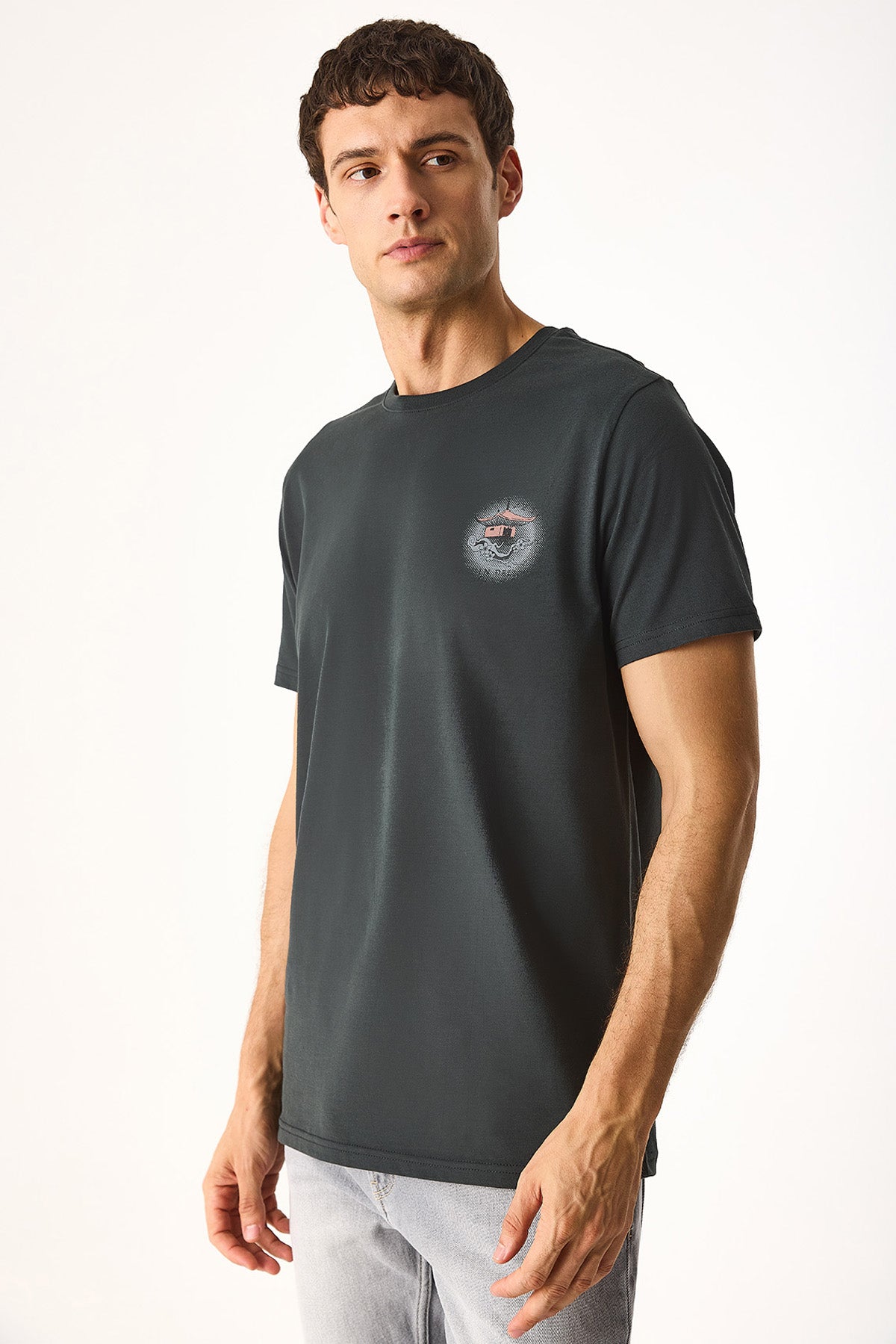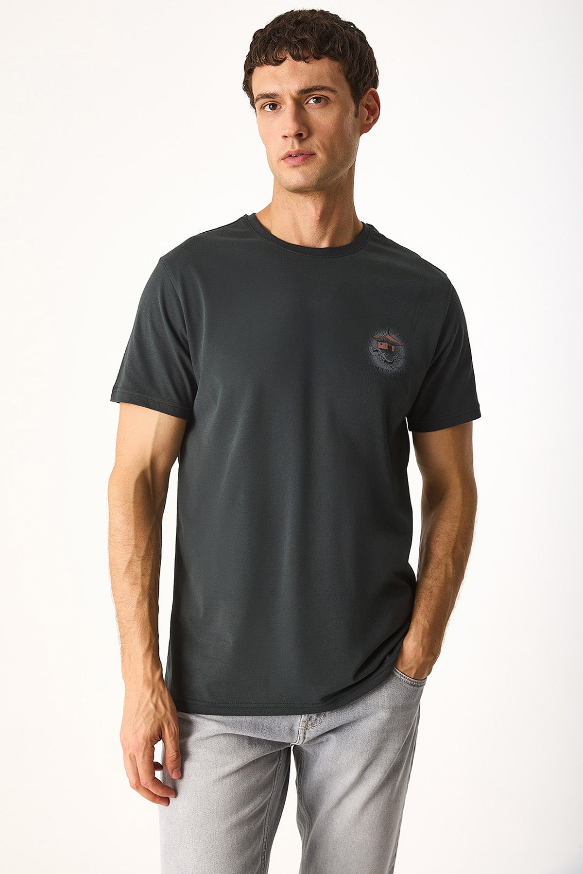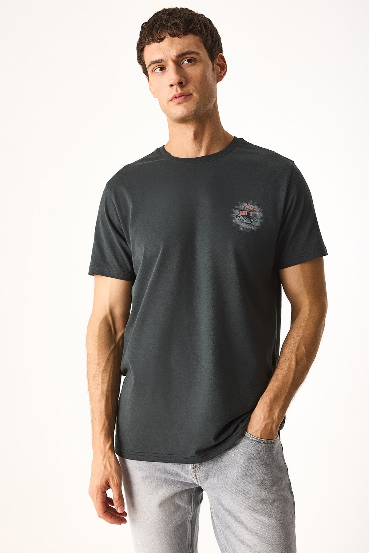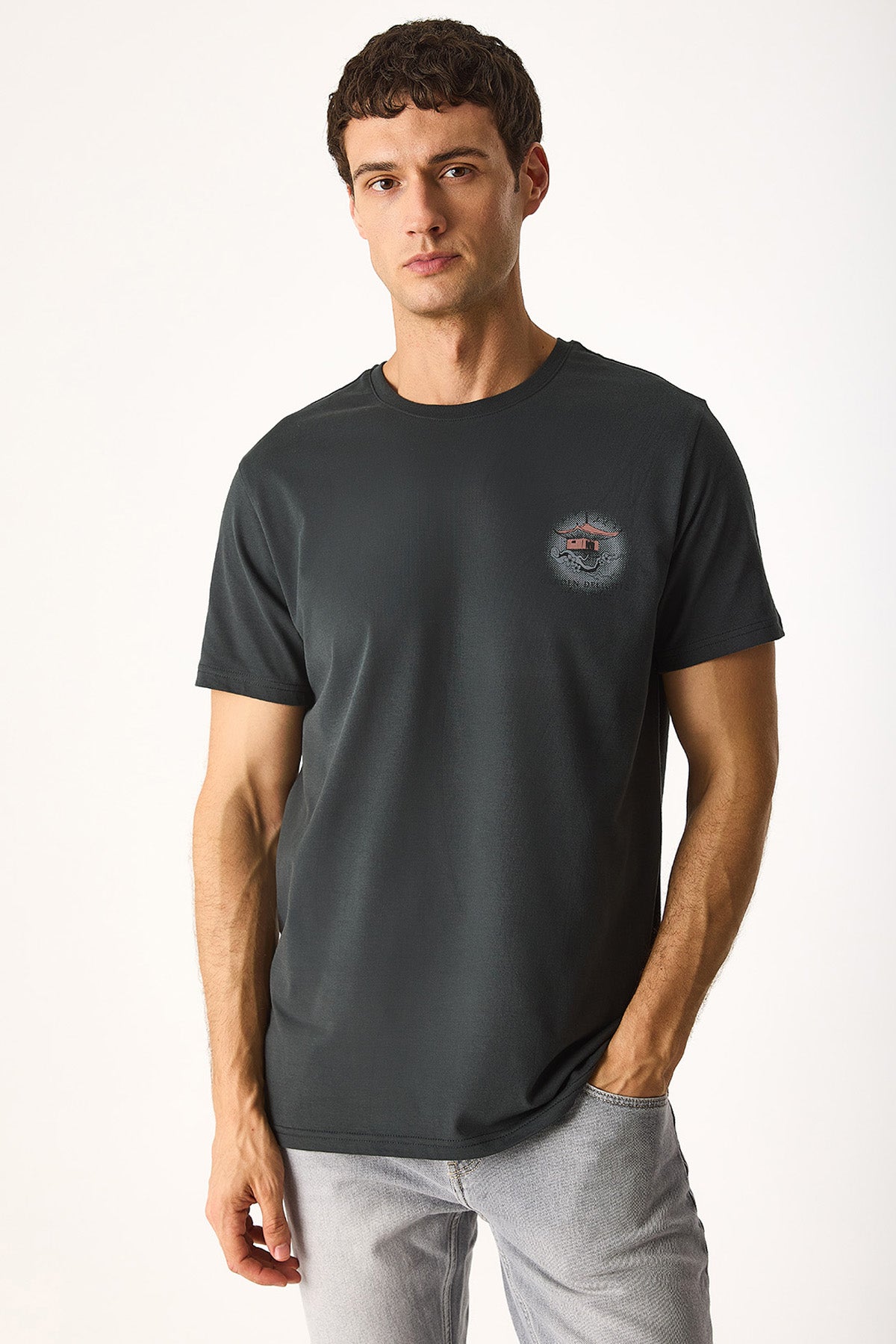Erkek Sakura Baskılı Bisiklet Yaka Regular Fit Tişört %100 Pamuk - Antrasit