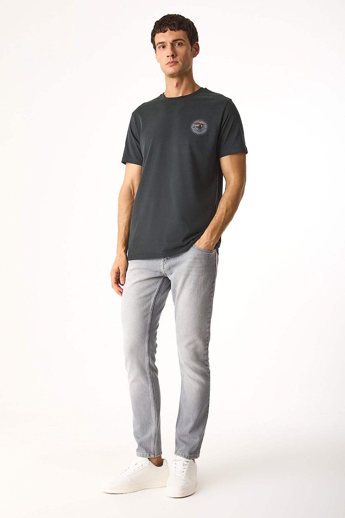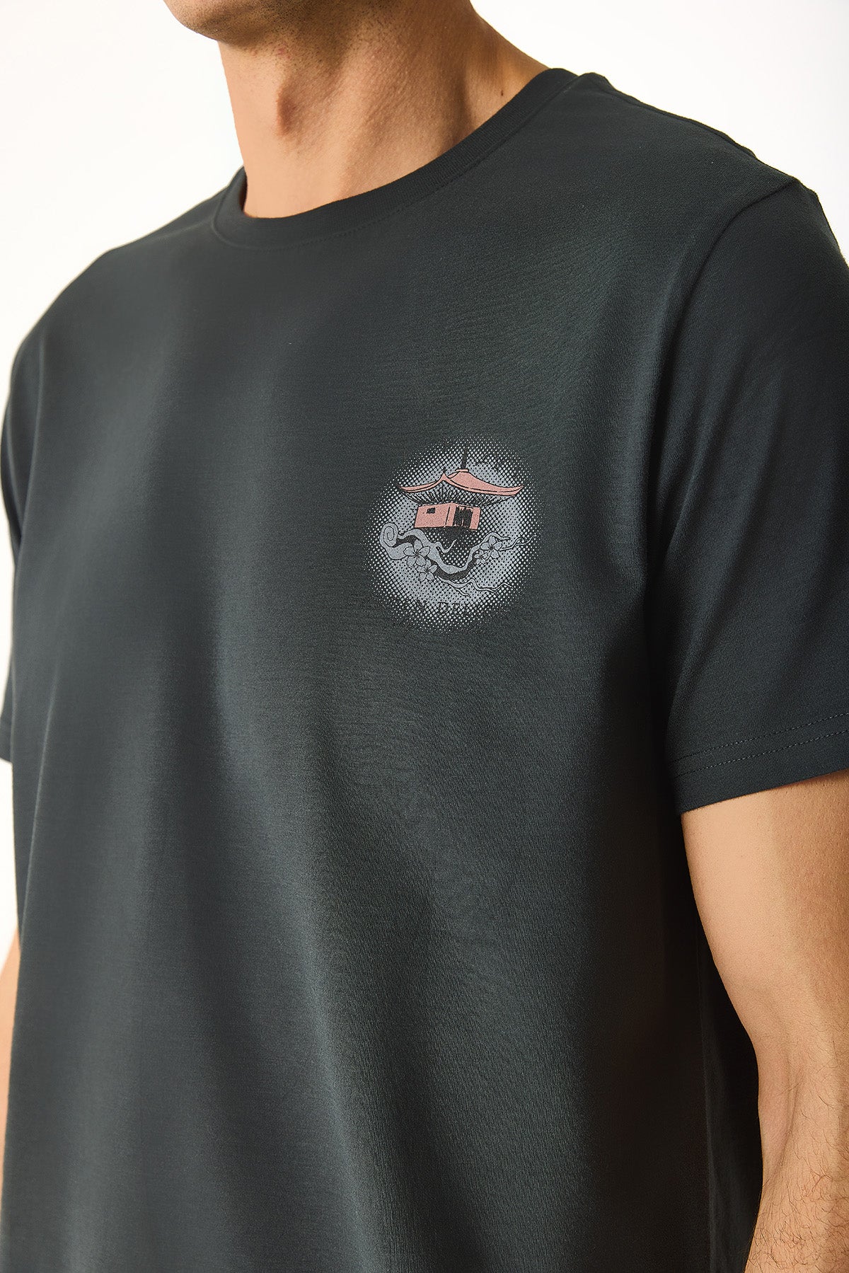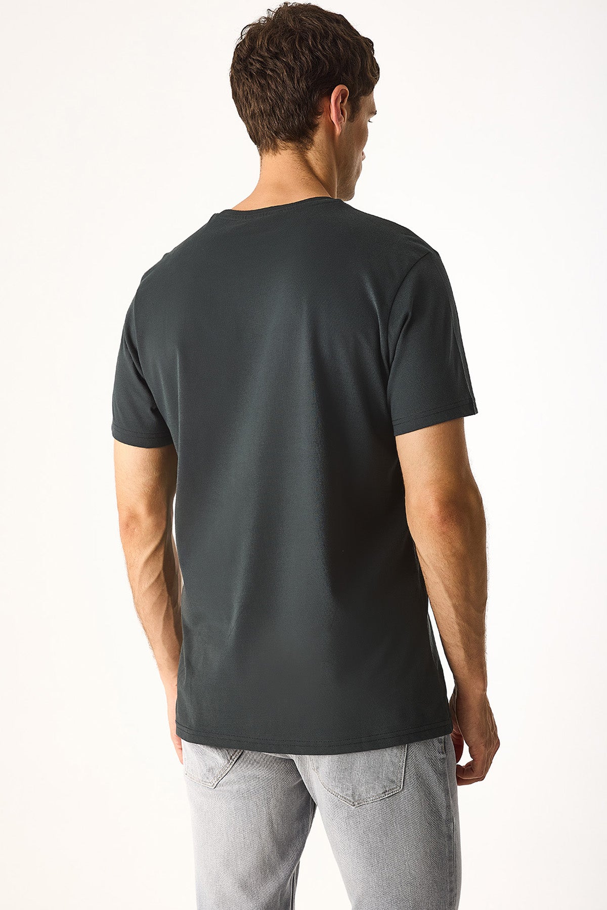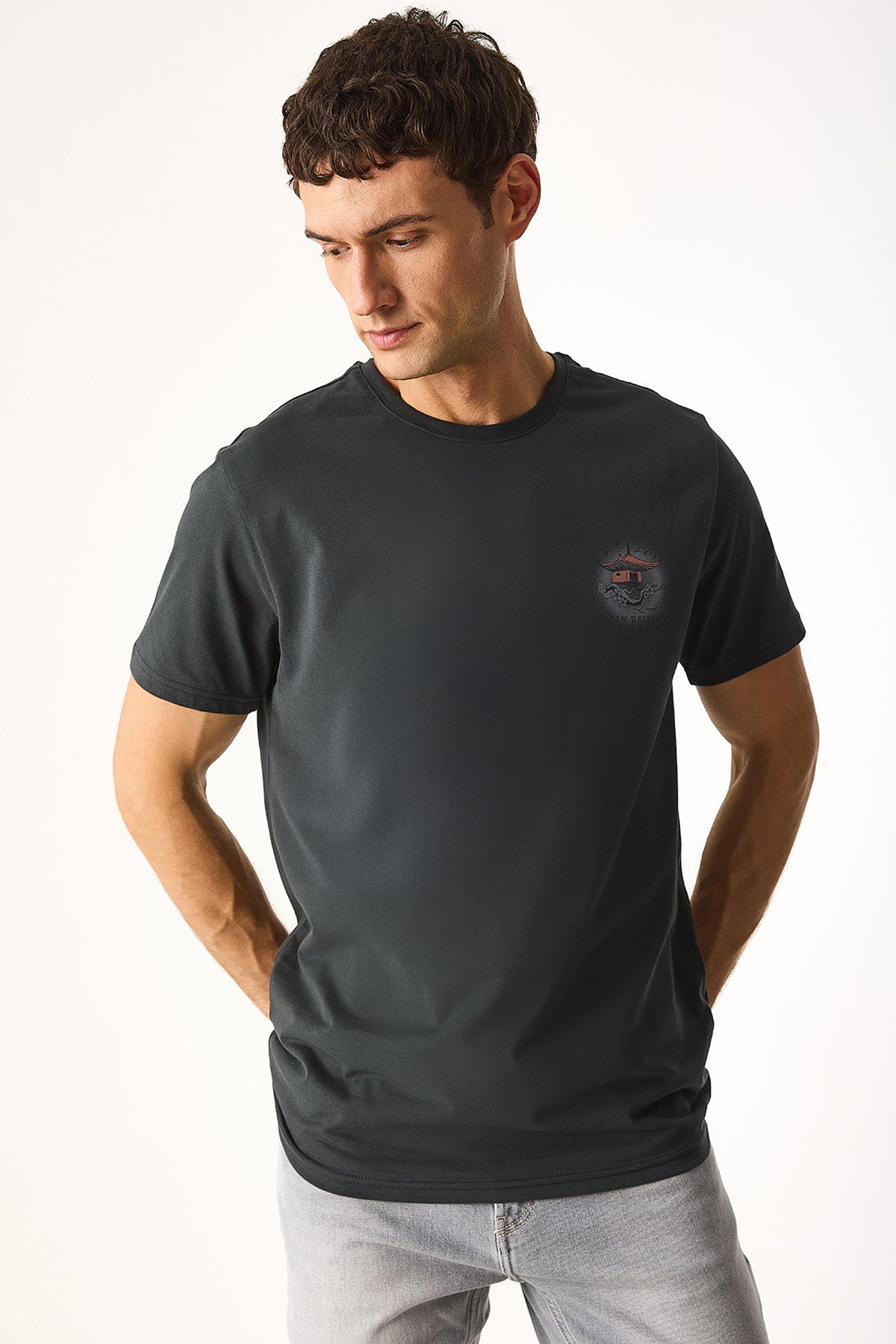 Erkek Sakura Baskılı Bisiklet Yaka Regular Fit Tişört %100 Pamuk - Antrasit