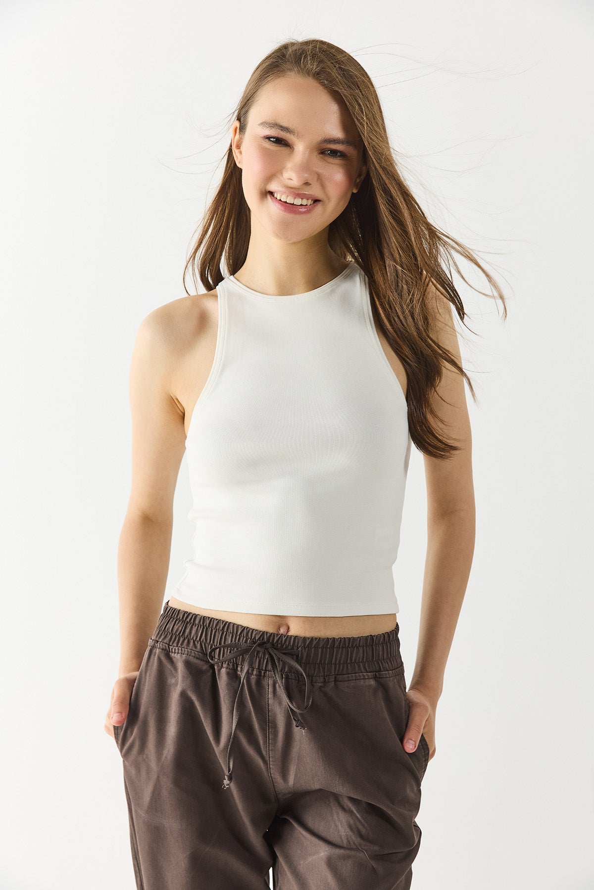 Kadın Sandra Halter Top Crop Atlet - Fildişi