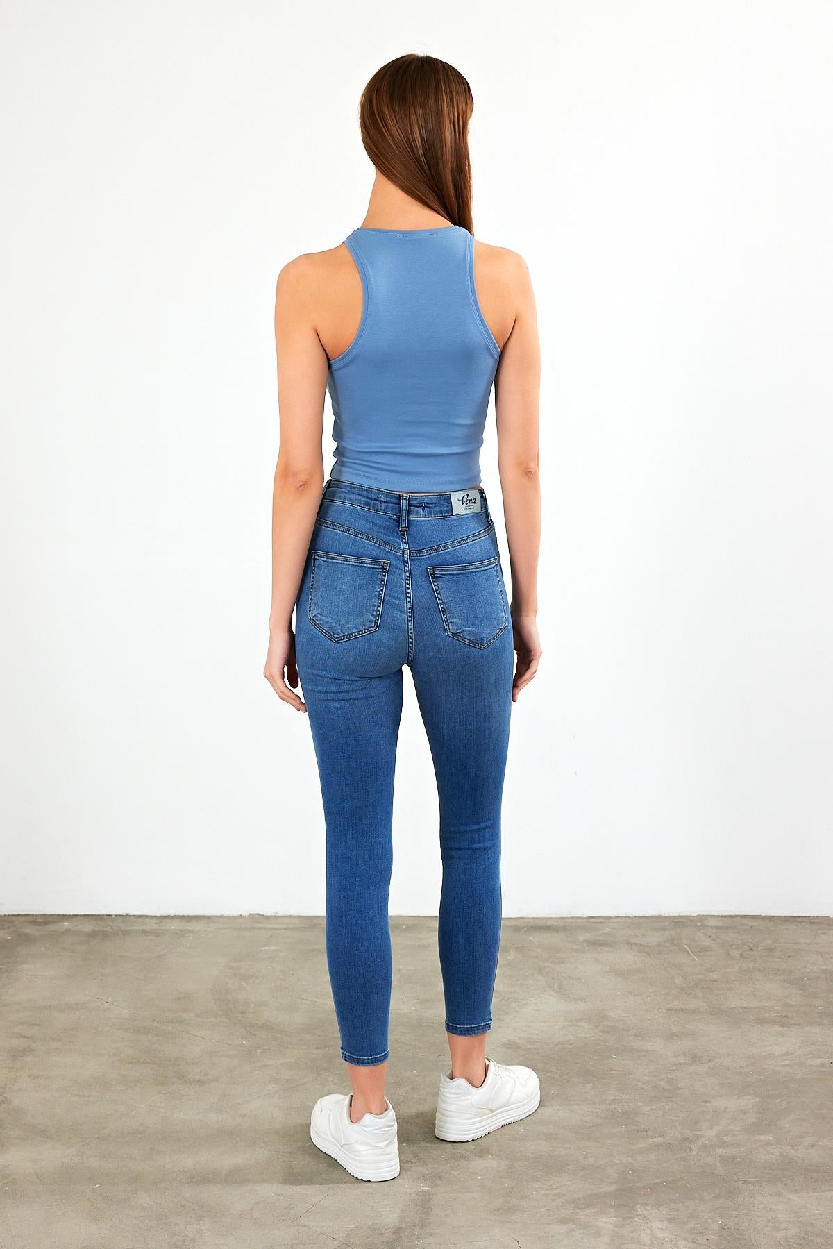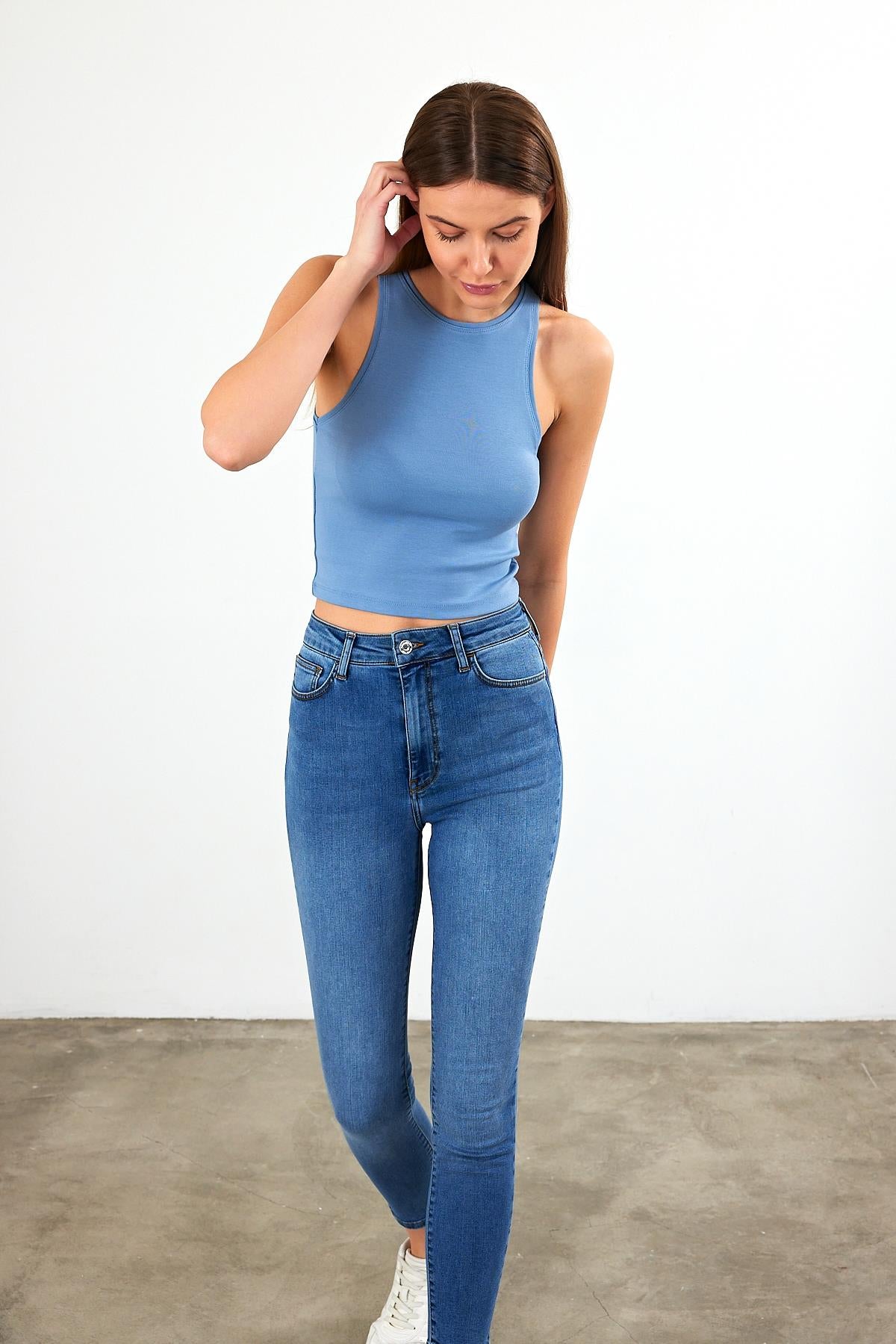 Kadın Sandra Halter Top Crop Atlet - Mavi