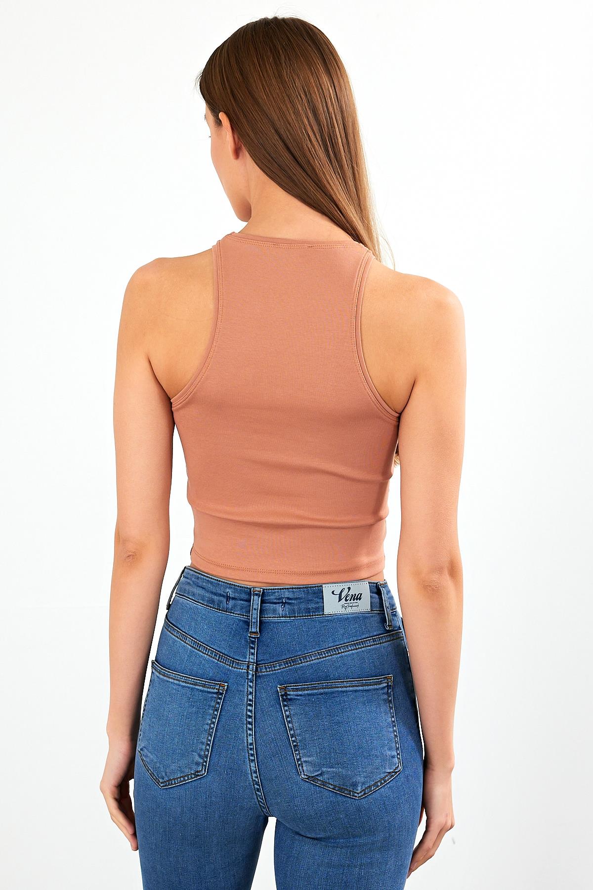 Kadın Sandra Halter Top Crop Atlet - Sütlü Kahve