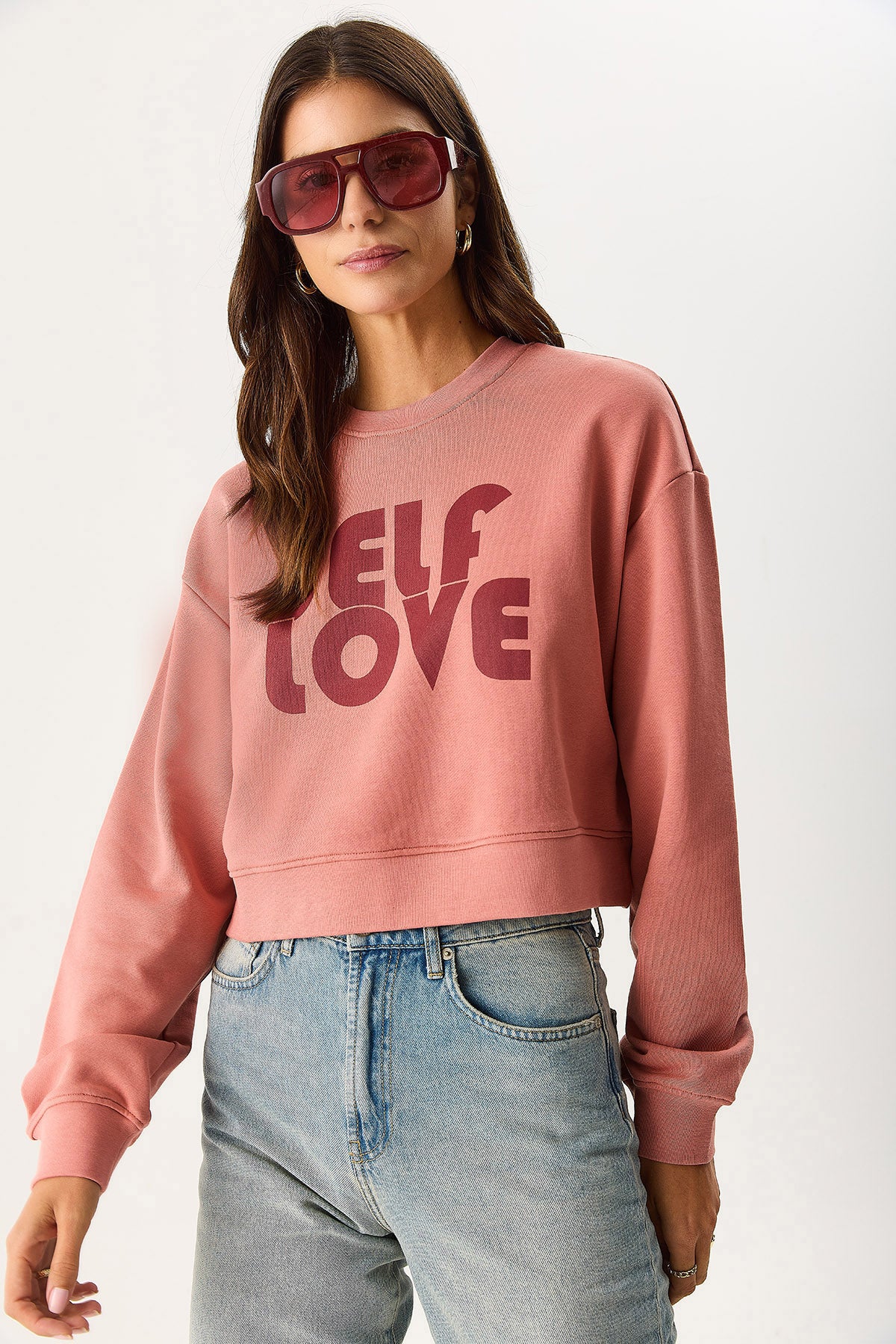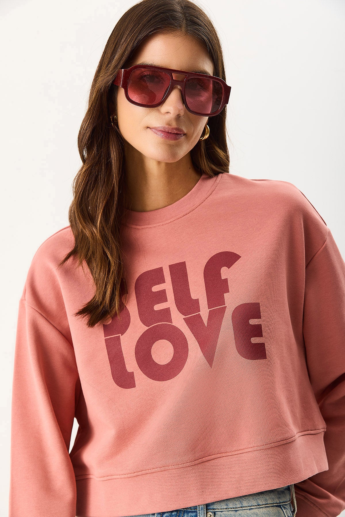 Kadın Self Love Baskı Detaylı Sweatshirt %100 Pamuk - Gülkurusu