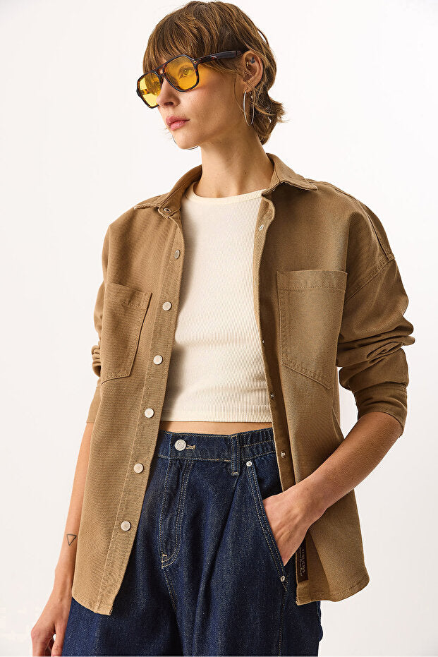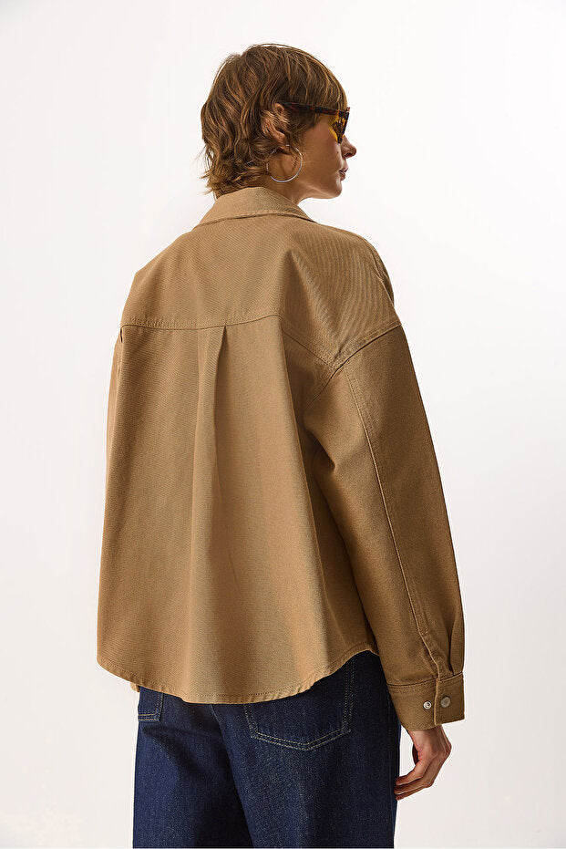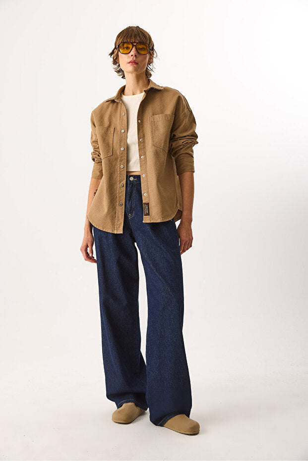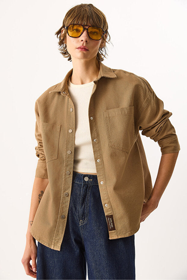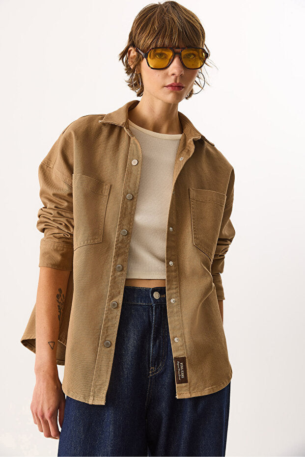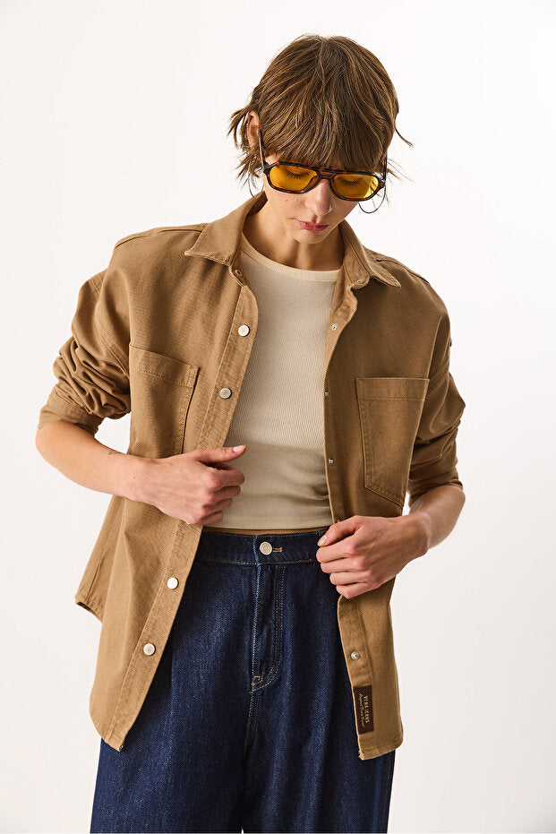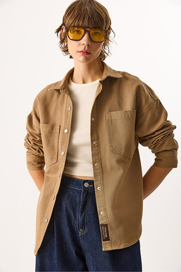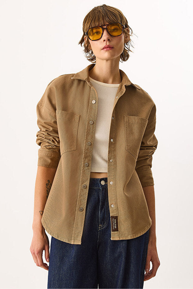 Sementa Renkli %100 Pamuk Jean Dış Gömlek - CAMEL