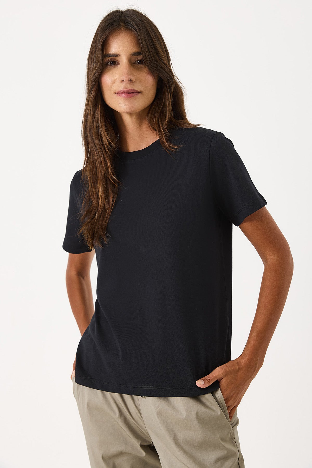 Kadın Sıfır Yaka Rahat Kalıp Kalın Süprem Tişört %100 Pamuk - Siyah