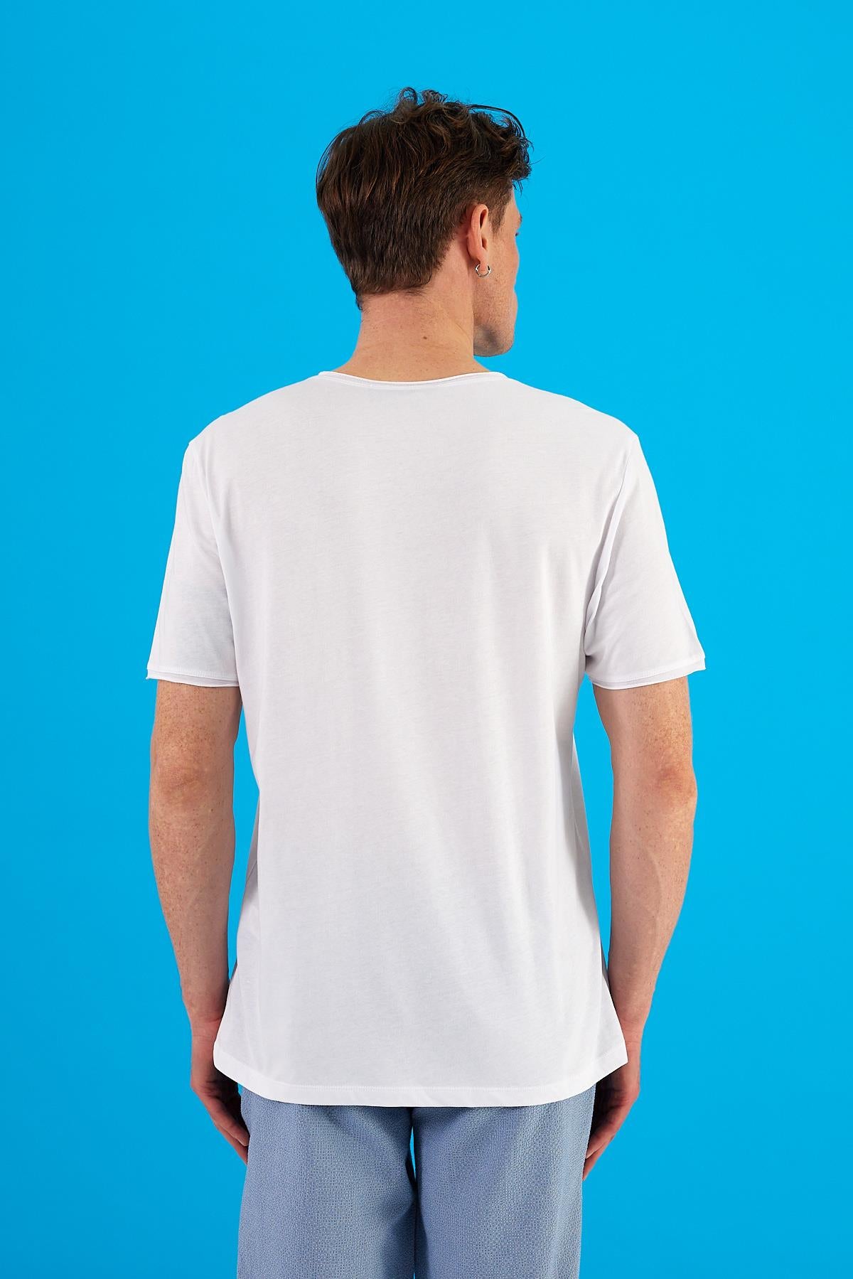 Erkek Simon Bisiklet Yaka Cep Detaylı Basic Tişört %100 Pamuk - Beyaz