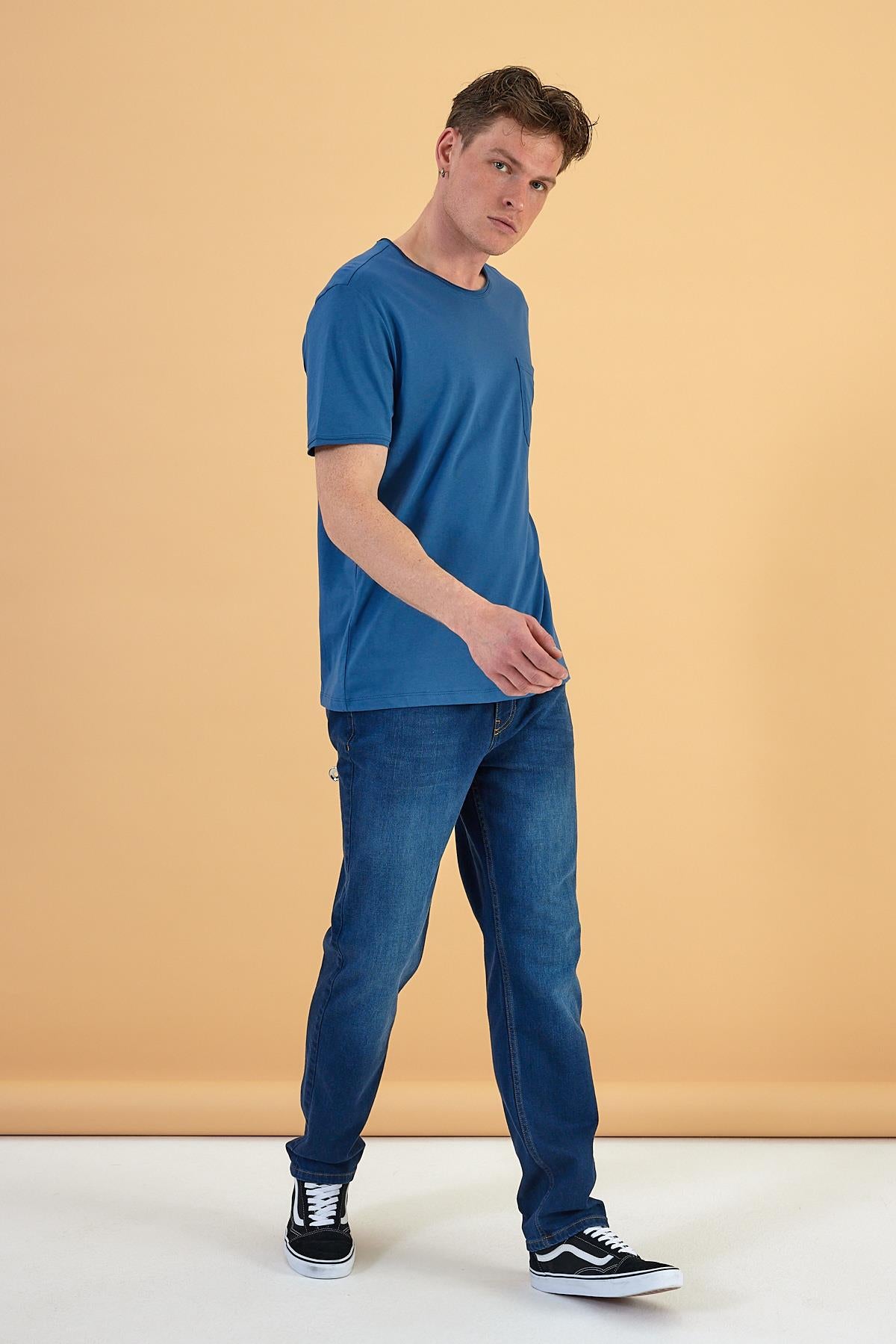 Erkek Simon Bisiklet Yaka Cep Detaylı Basic Tişört %100 Pamuk - Navy