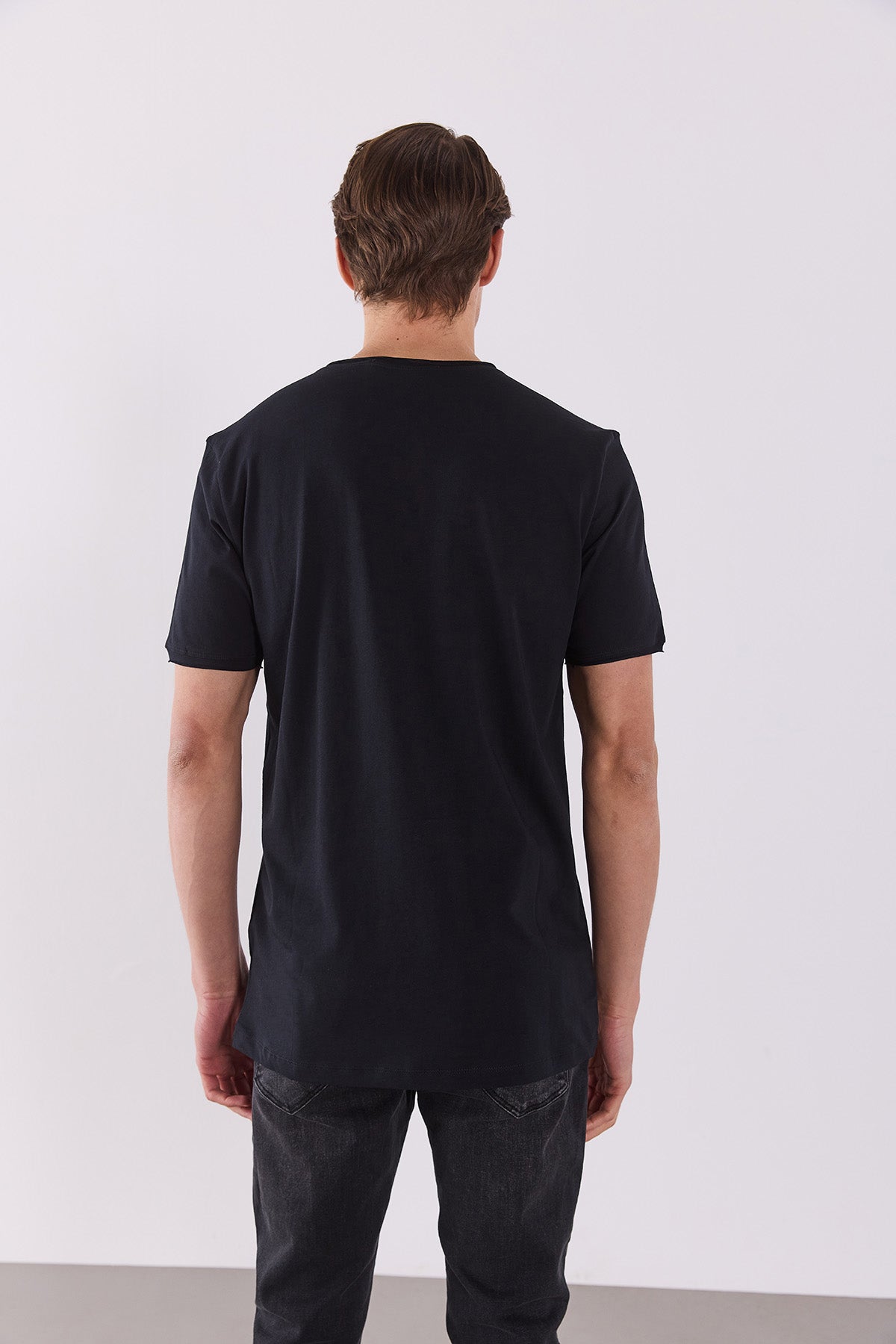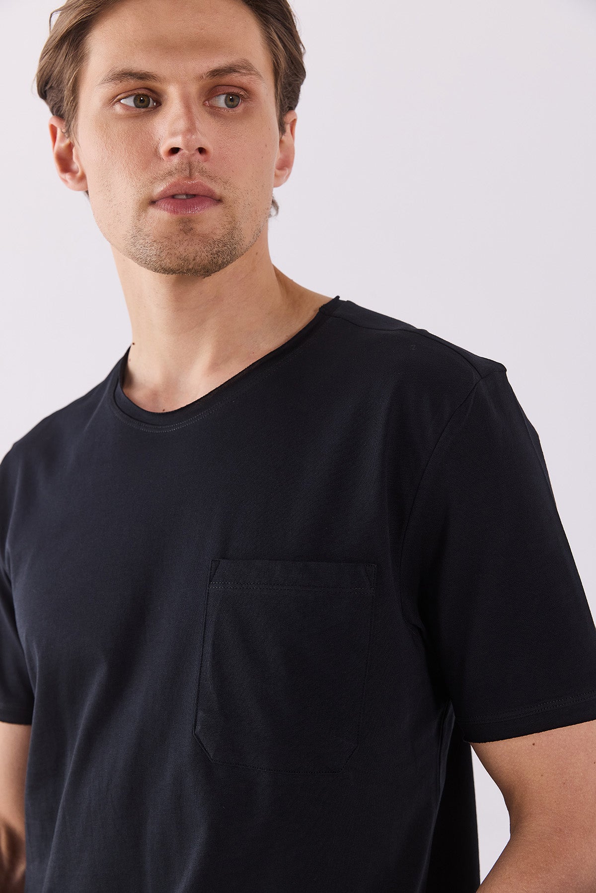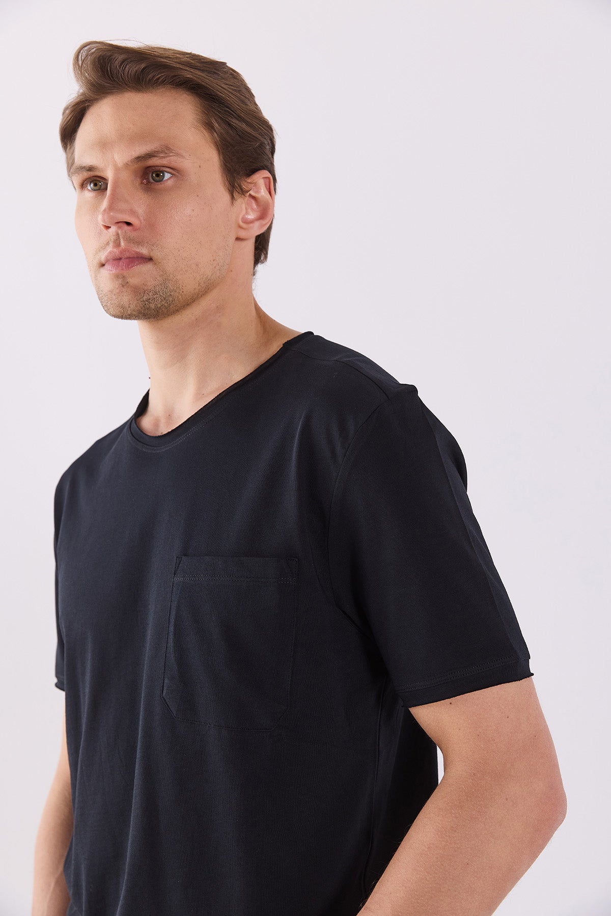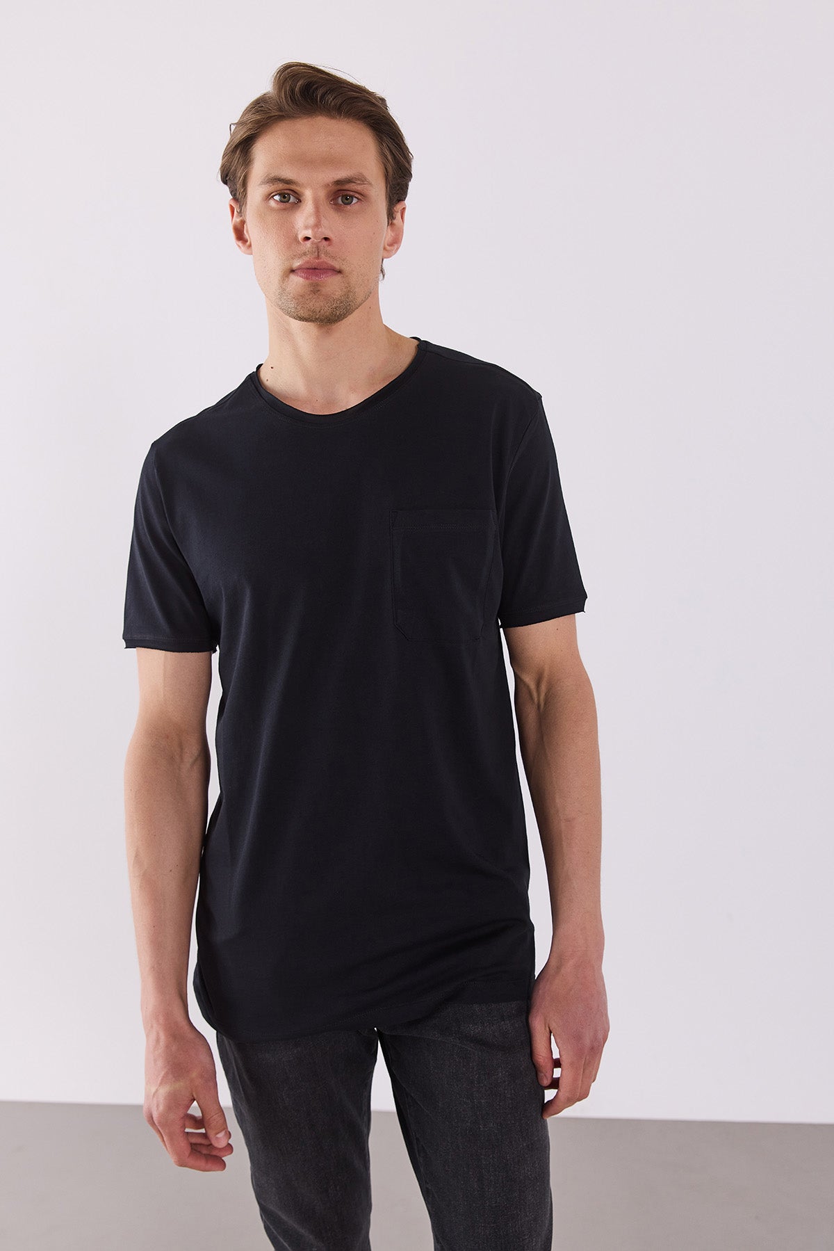 Erkek Simon Bisiklet Yaka Cep Detaylı Basic Tişört %100 Pamuk - Siyah