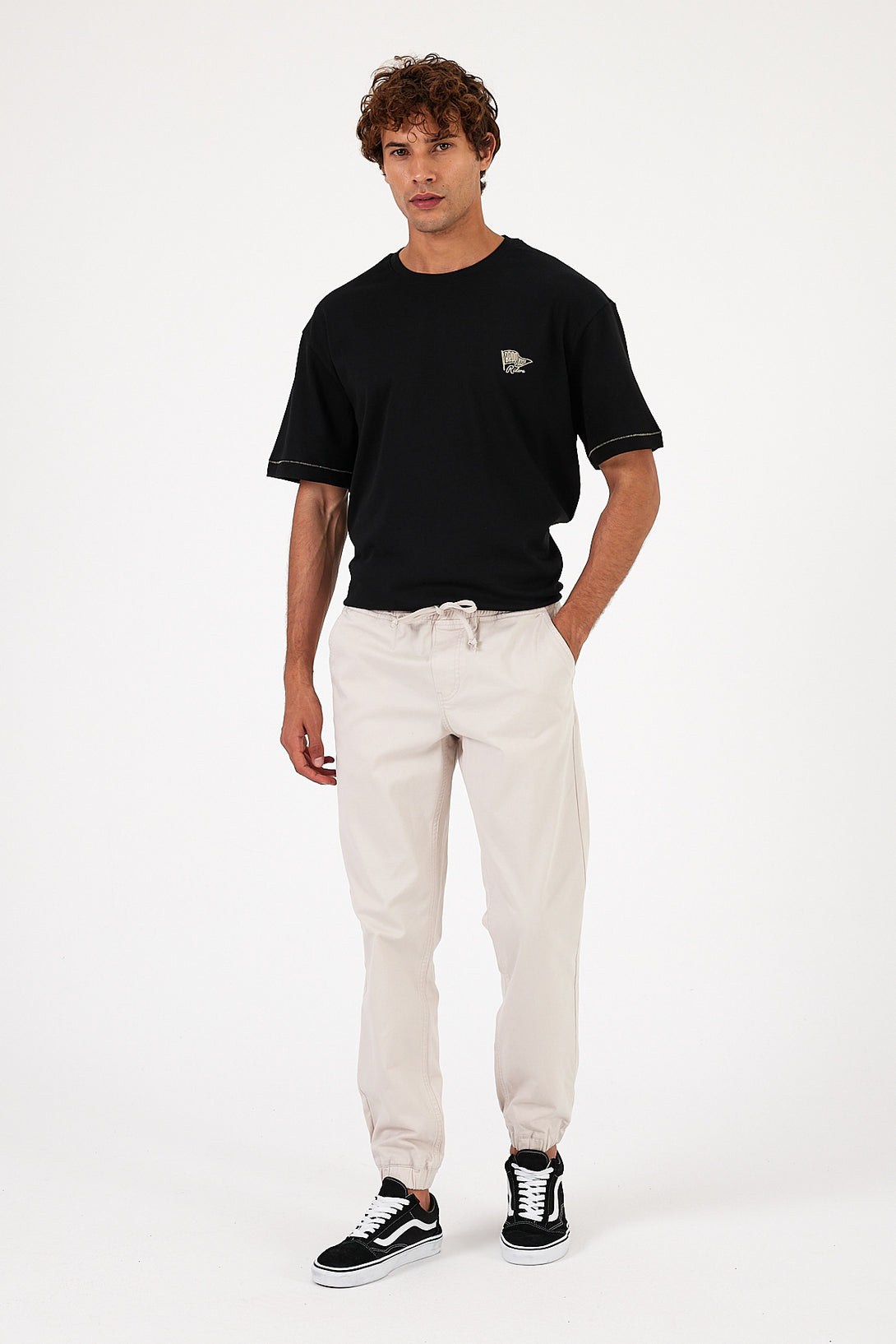 Erkek Simon Slim Fit Gabardin Jogger Pantolon - Taş