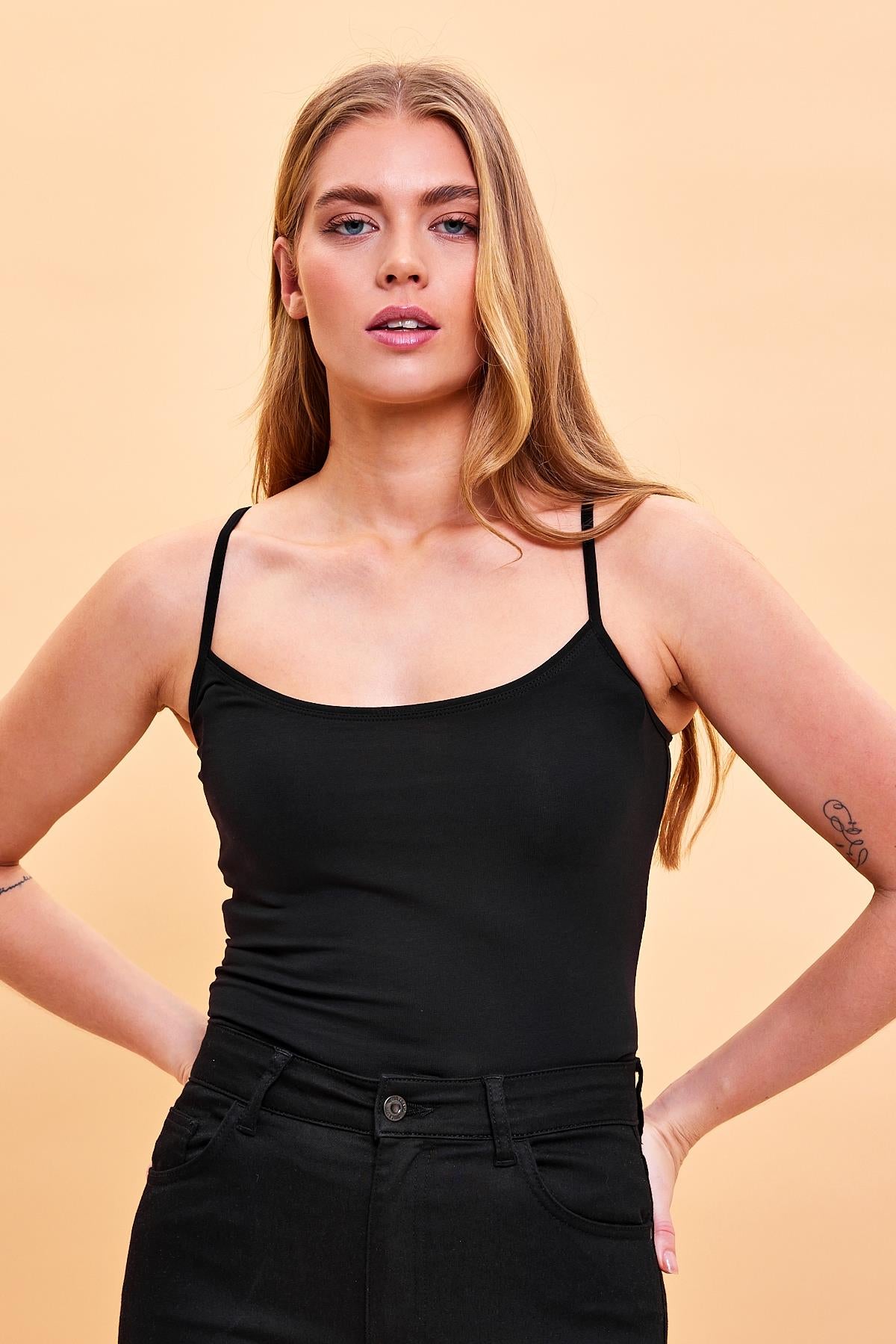 Kadın Slim Fit İp Askılı Atlet - Siyah