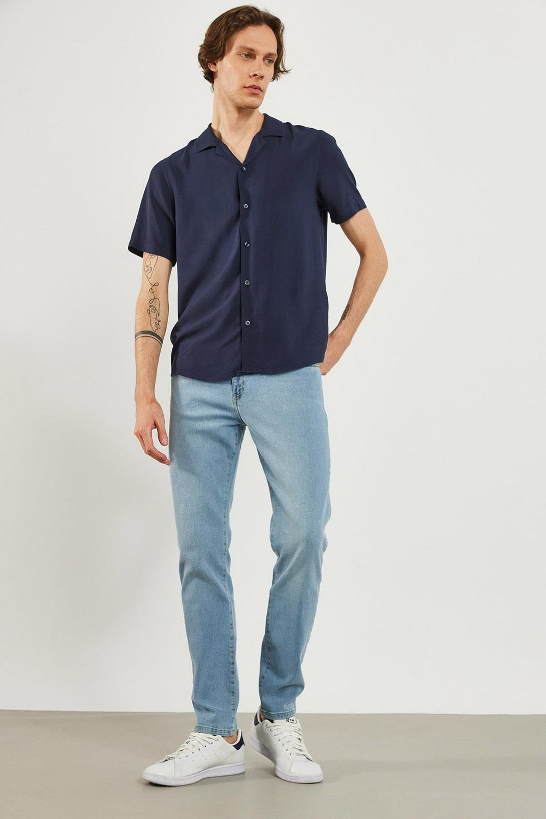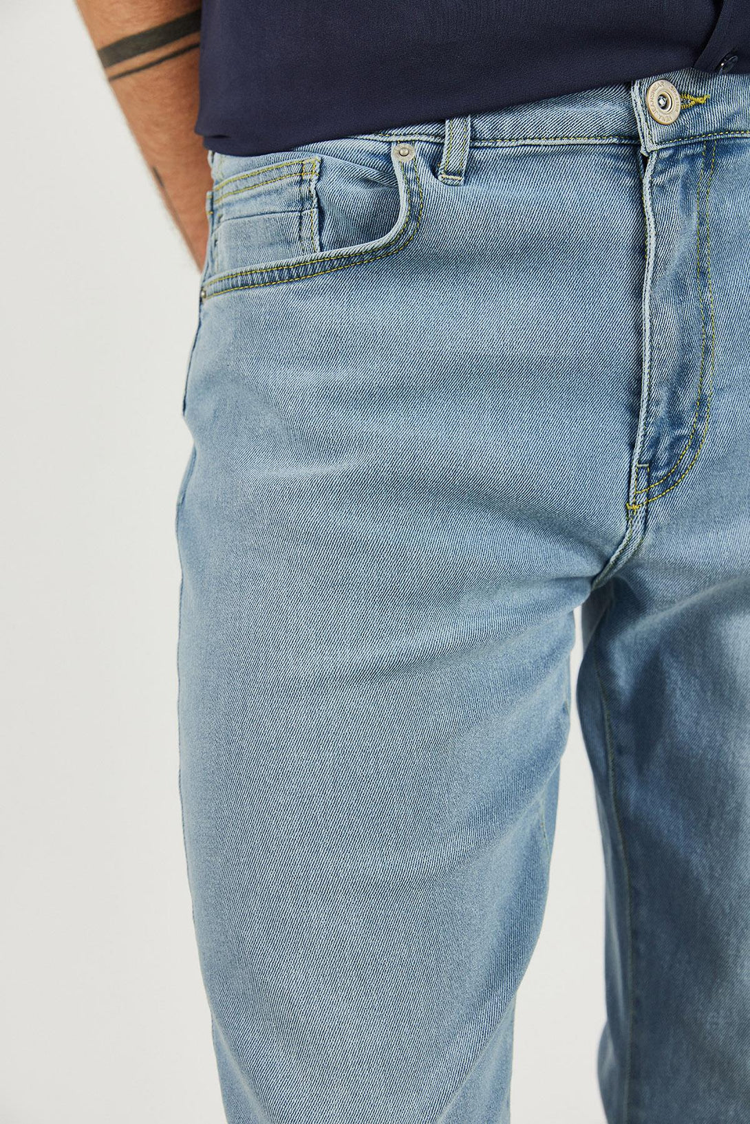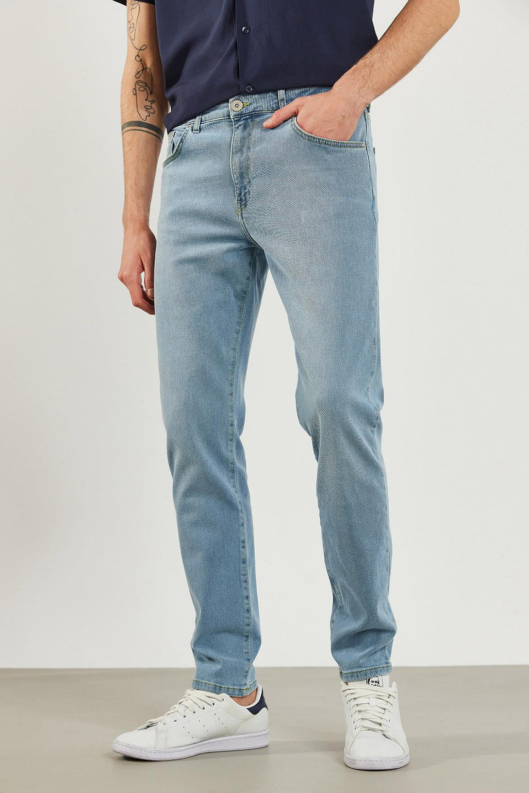 Ice blue renginde, tapered fit, jean pantolon.