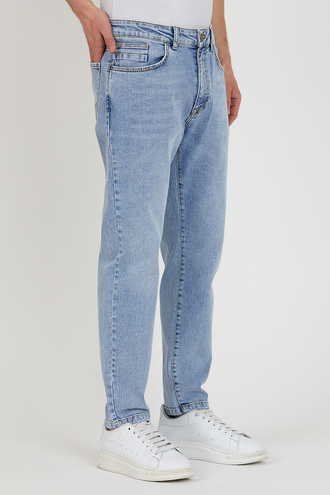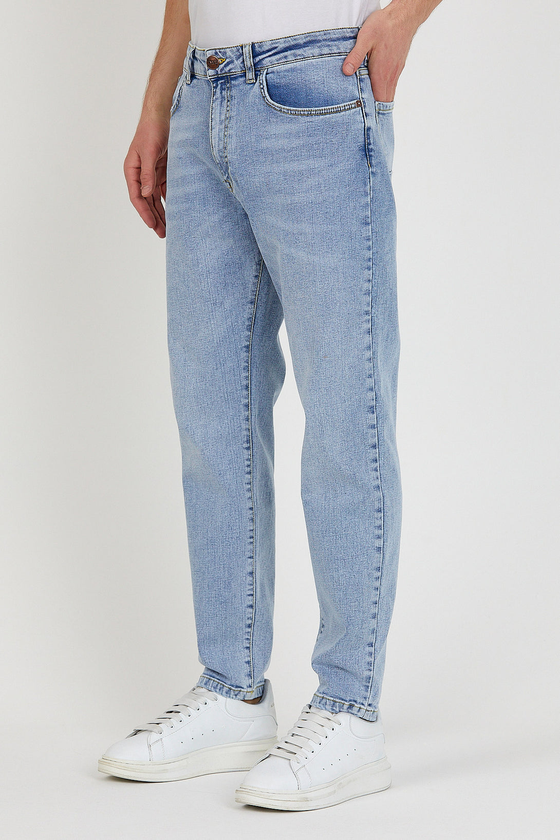 Smith Ice Blue Tapered Fit Jean Pantolon, modern tapered fit kesimi ve buz mavisi rengiyle günlük kombinlerinize ferah bir dokunuş katıyor. %98,8 pamuk ve %1,2 elastan karışımı kumaşı sayesinde hem nefes alabilirlik hem de hafif esneklik sunar. Orta bel yapısı ve daralan paça kesimiyle hem rahatlık hem de şıklığı bir arada arayan erkekler için ideal bir tercihtir