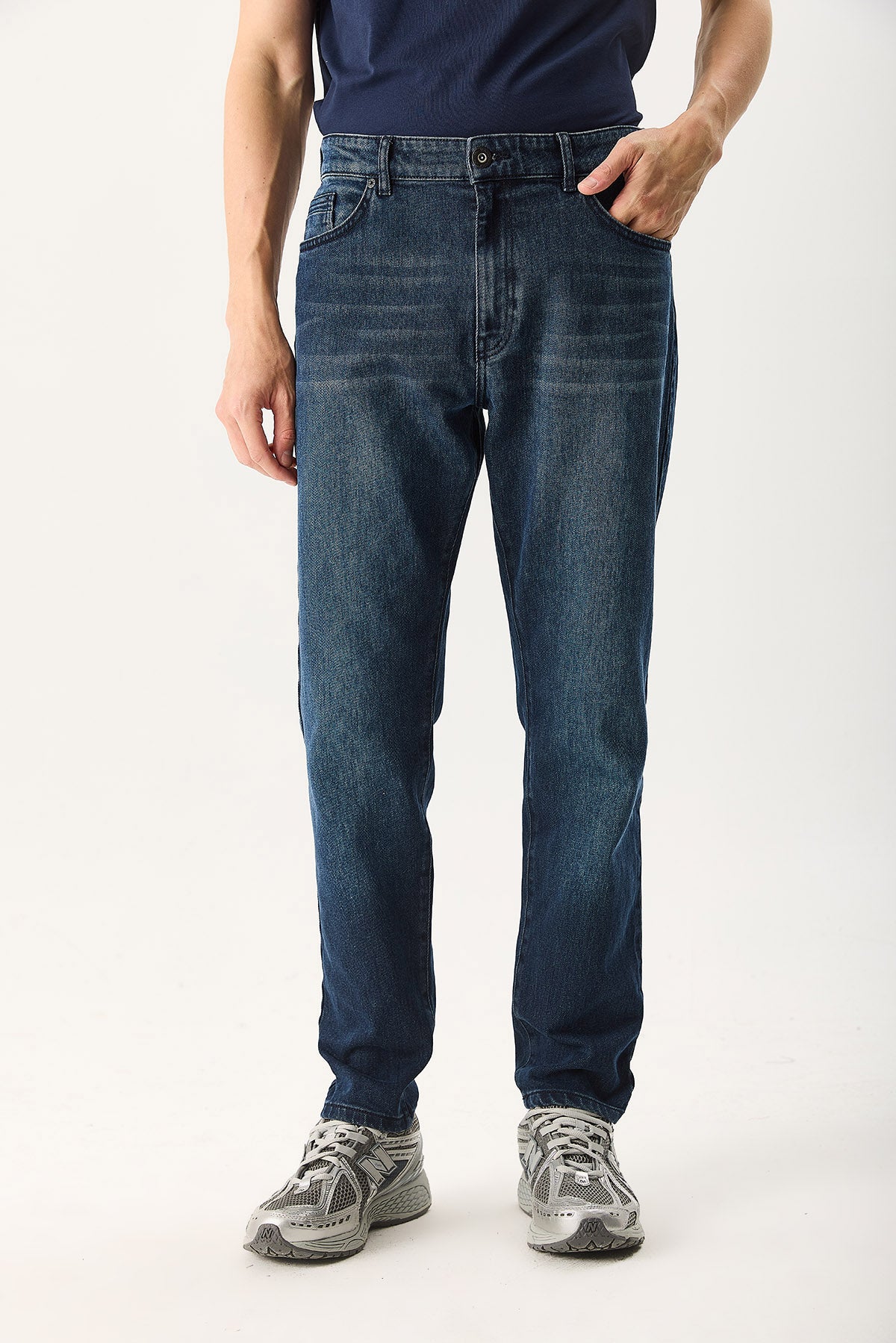 Erkek Smith Premium Blue Black Tapered Fit Jean Pantolon - Blue Black