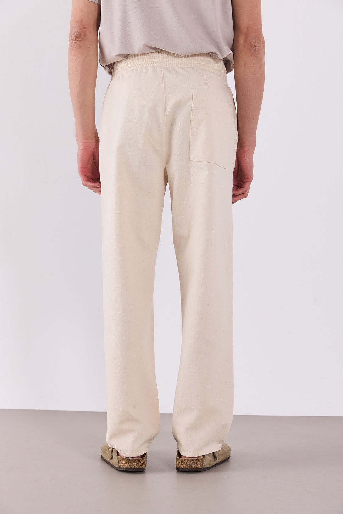 Erkek Steve Baggy Fit Beli Lastikli Naturel Pantolon %100 Pamuk - Naturel