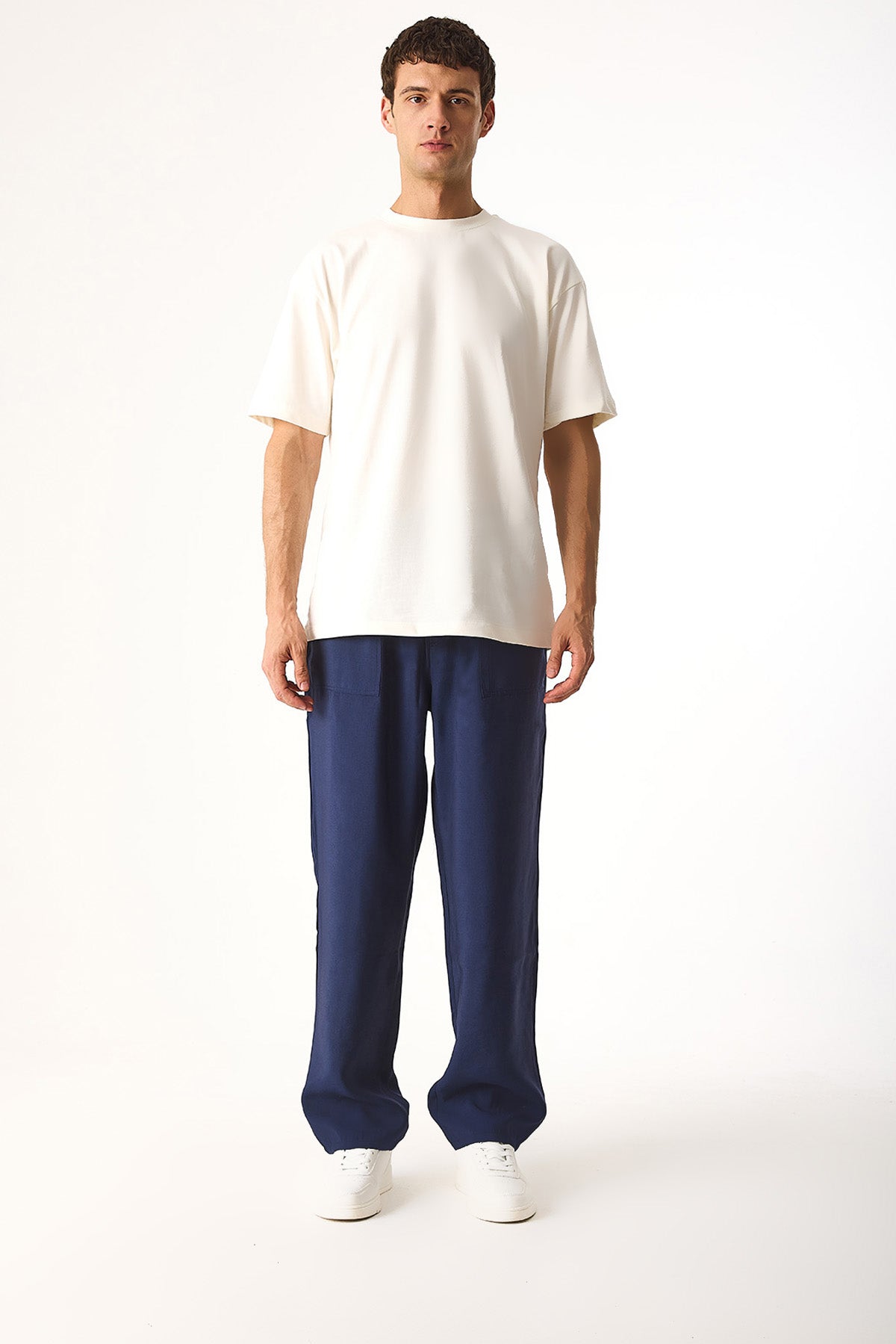 Erkek Steve Baggy Fit Beli Lastikli Pantolon (CUPRO) - Lacivert