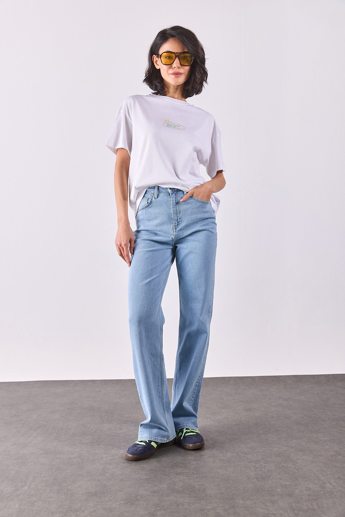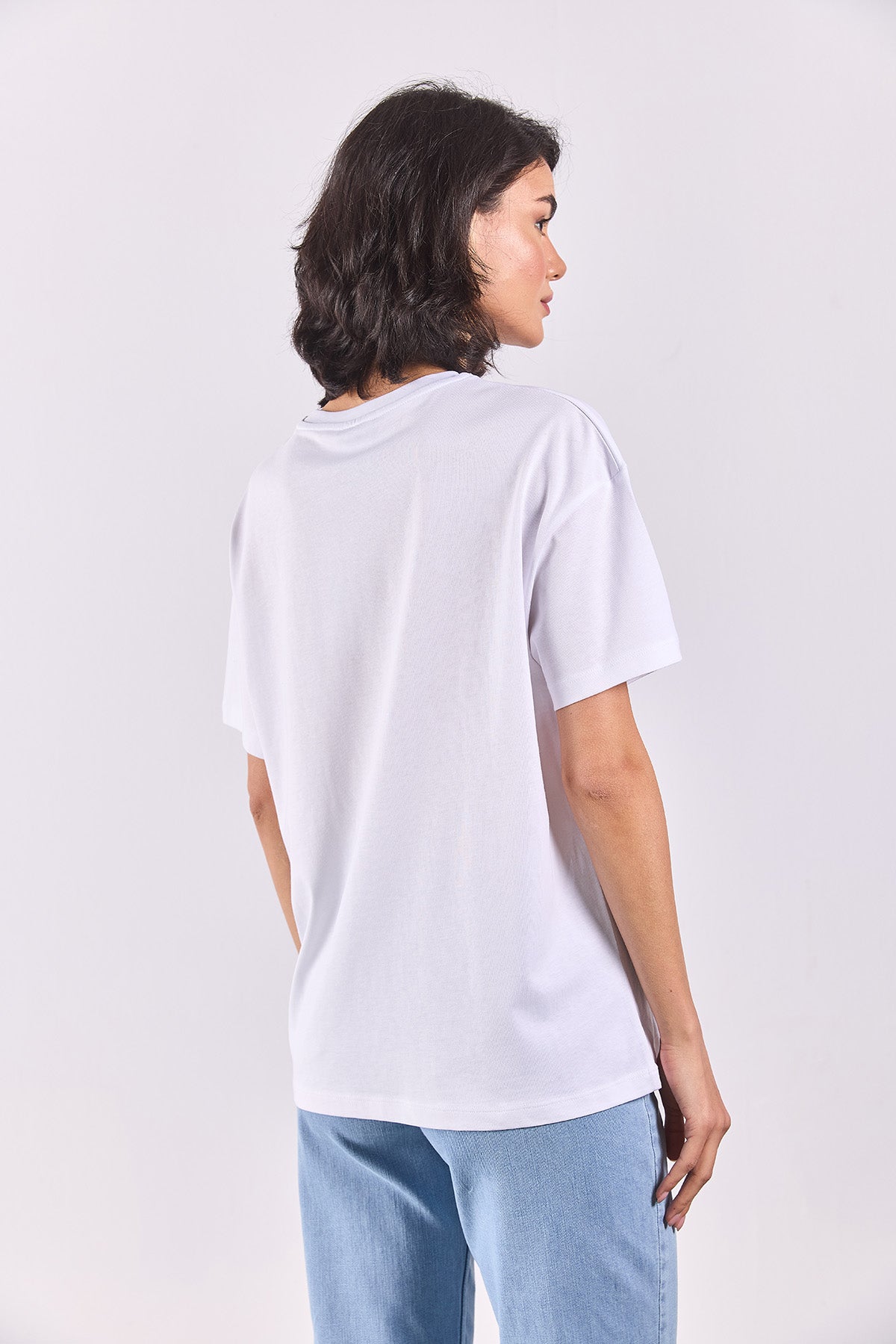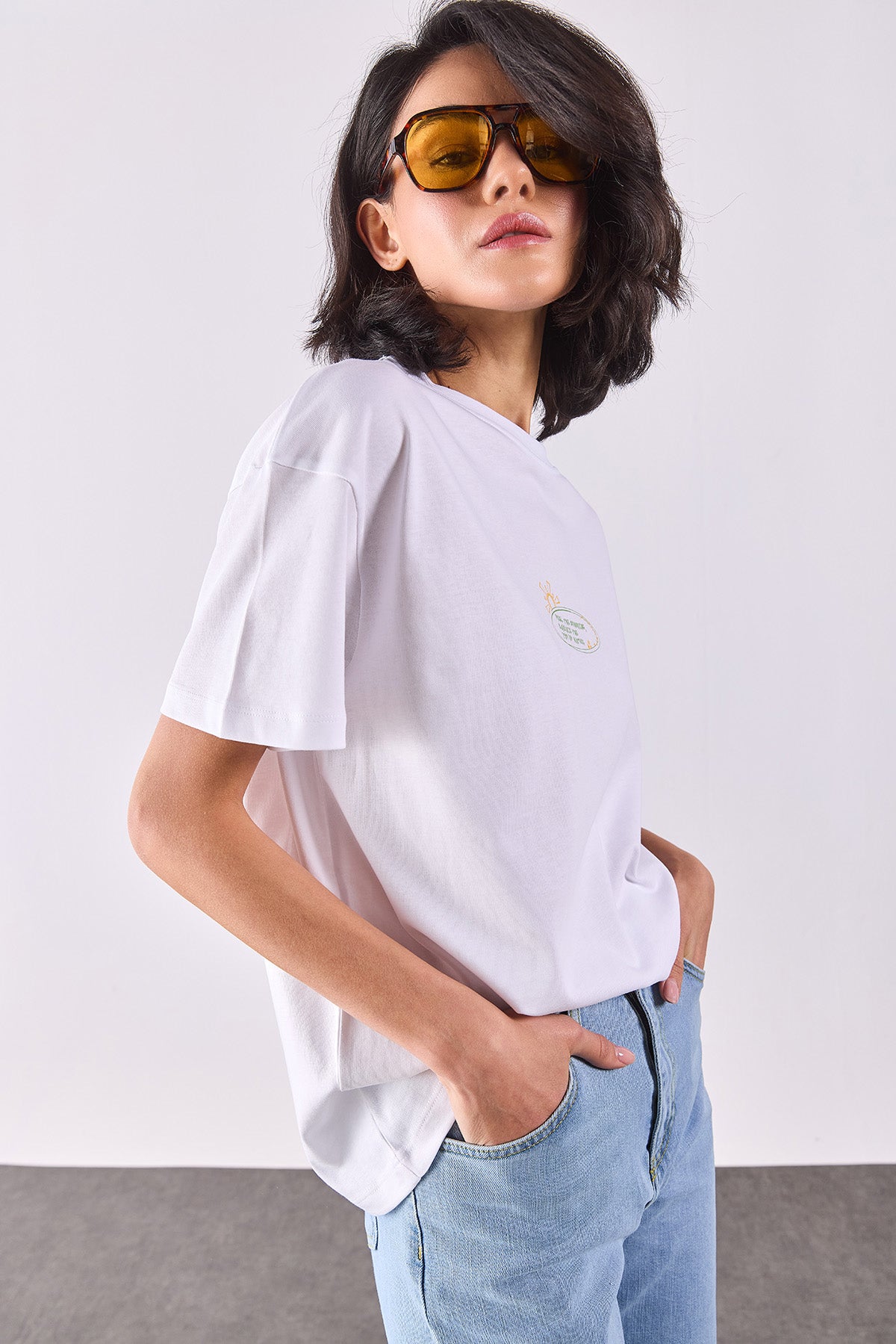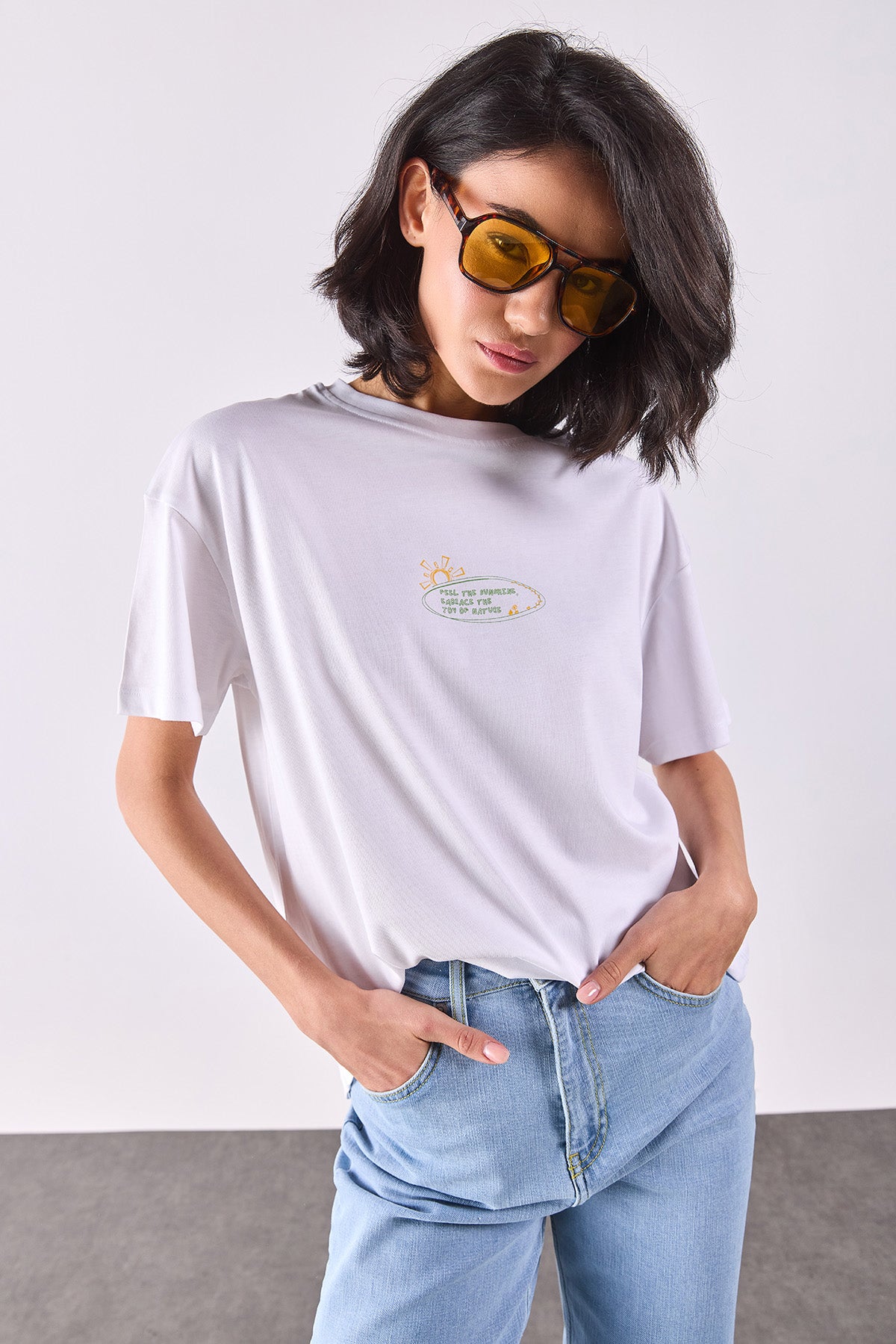 Kadın Sunshine Baskılı Tişört %100 Pamuk - Beyaz