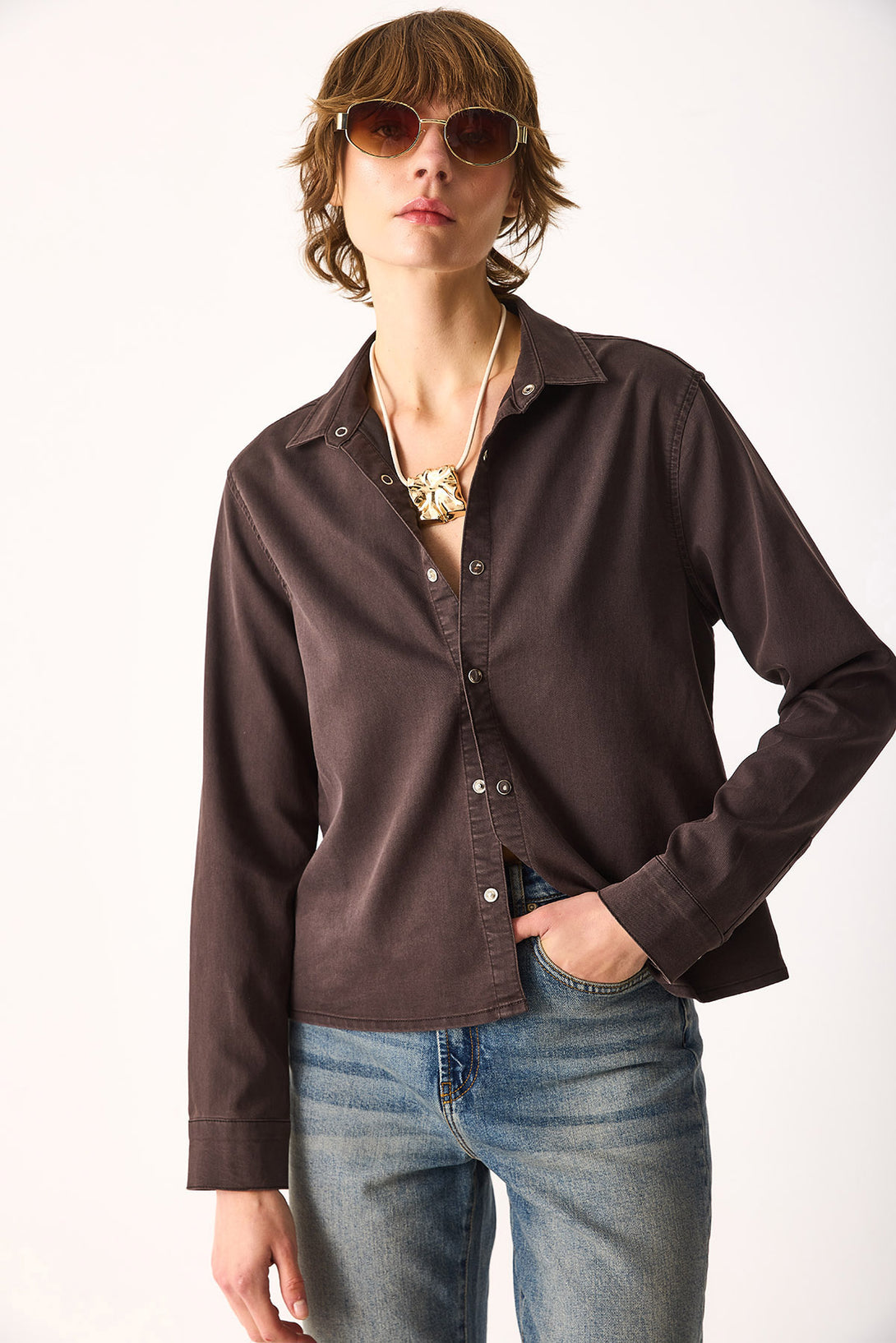 Sydney Brown Slim Fit Jean Gömlek(TENCEL)(TM)-Brown