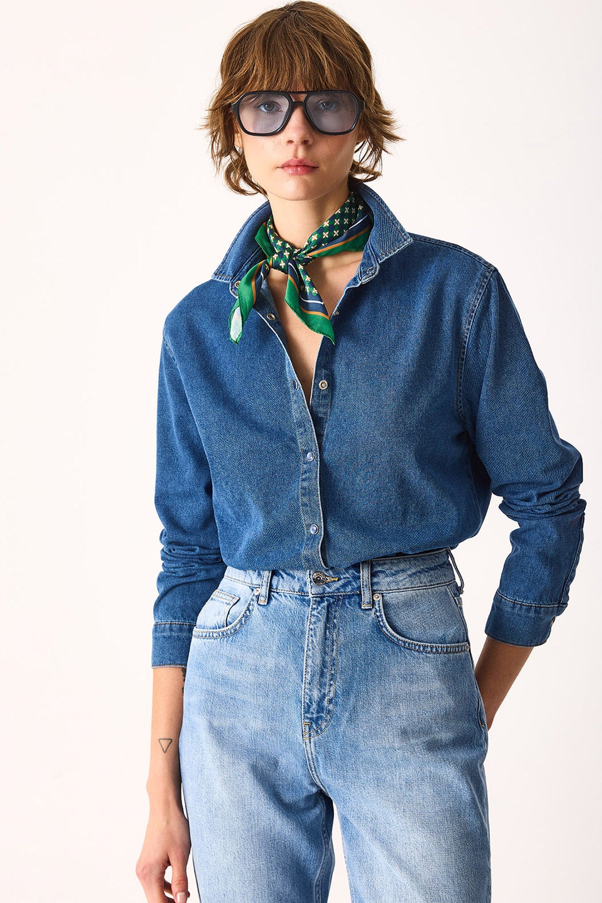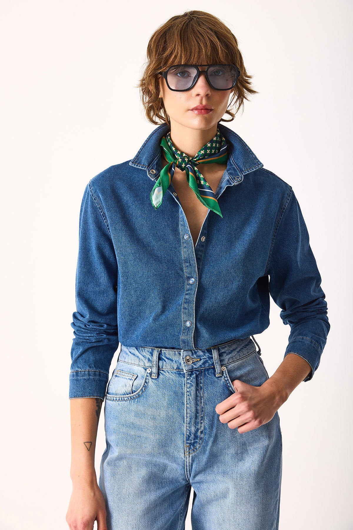Kadın Sydney Dark Blue Slim Fit Jean Gömlek %100 Pamuk - Dark Blue