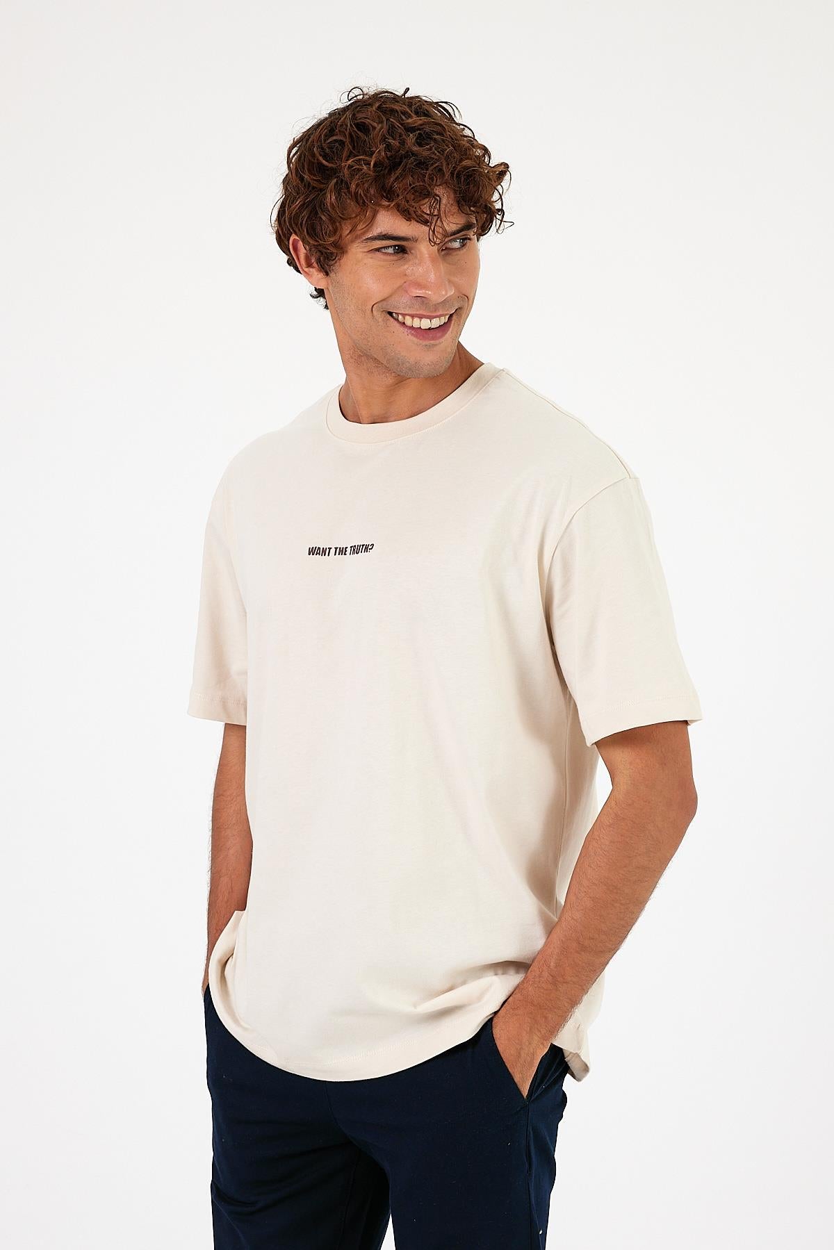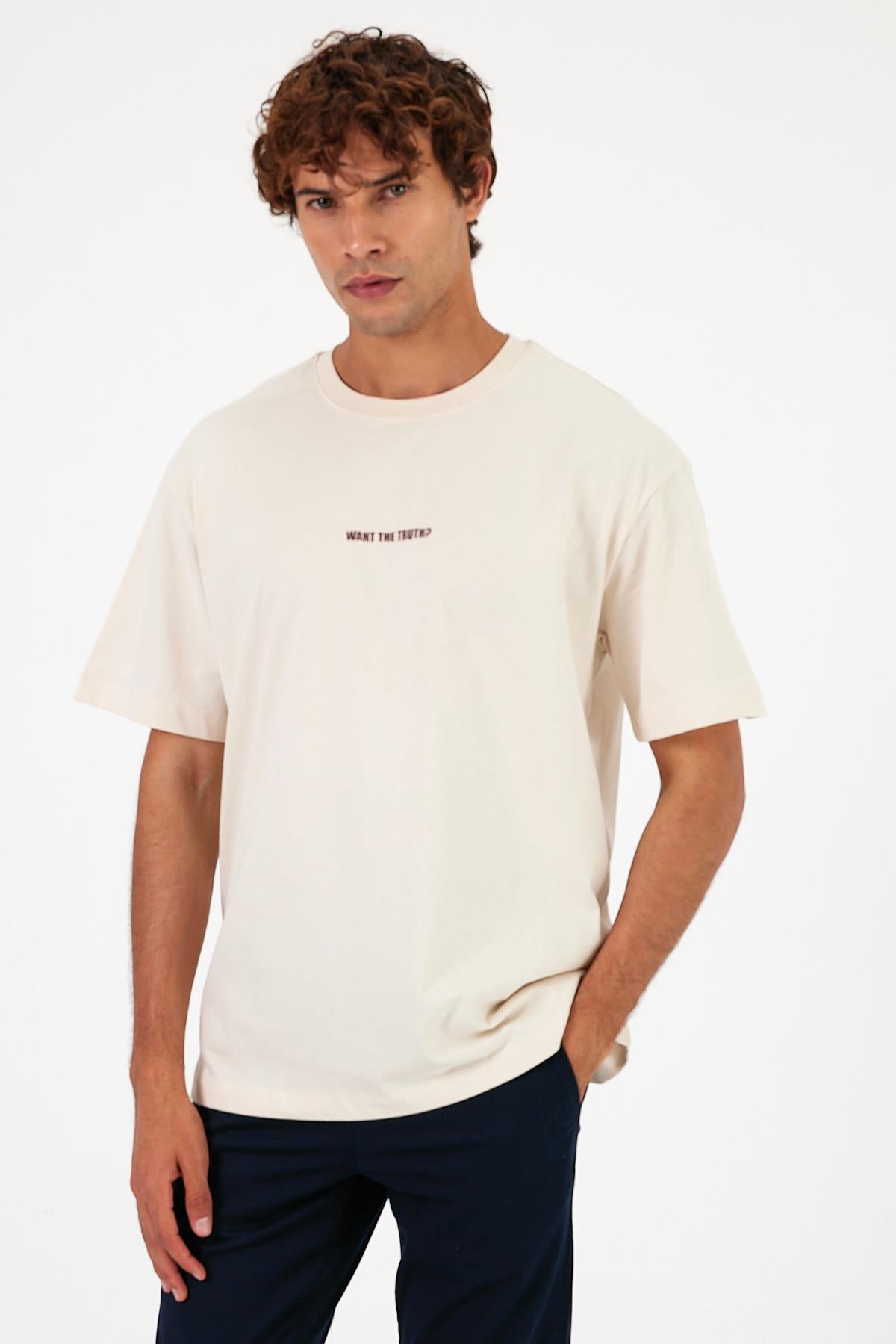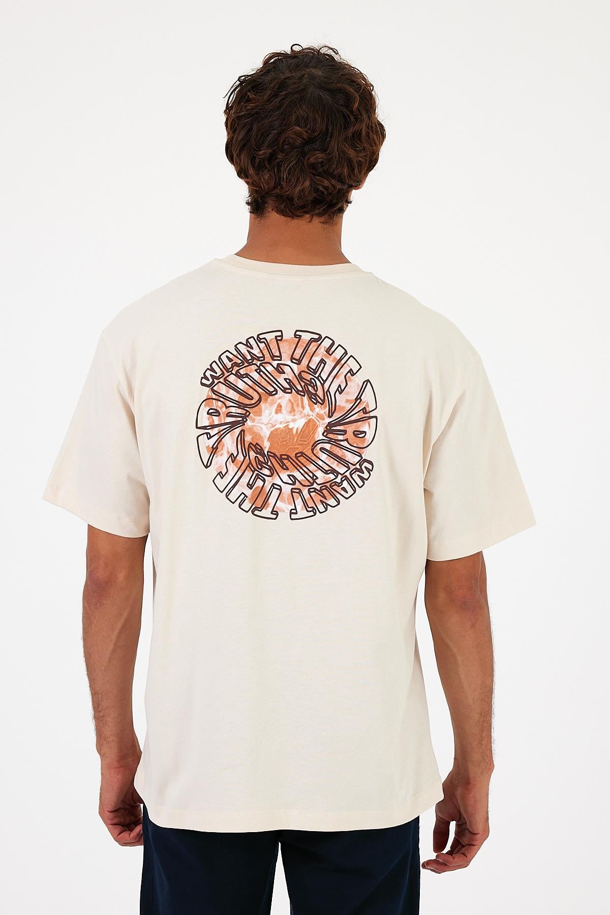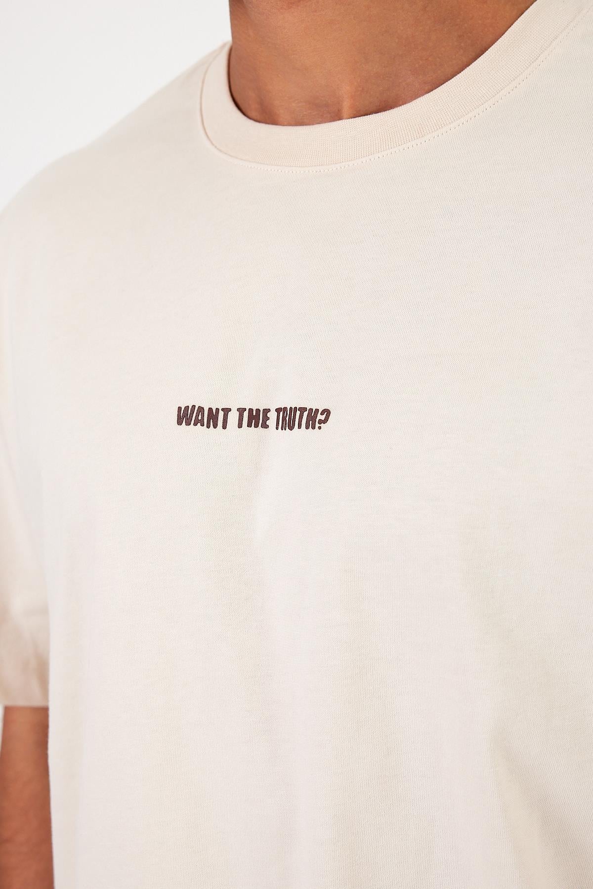 Erkek Truth Sırtı Baskılı Oversize Tişört %100 Pamuk - Naturel