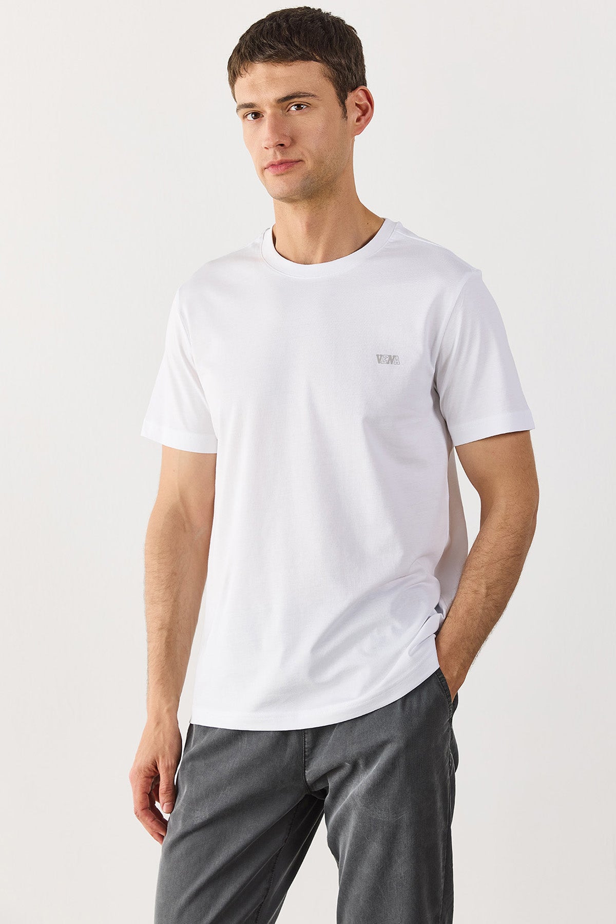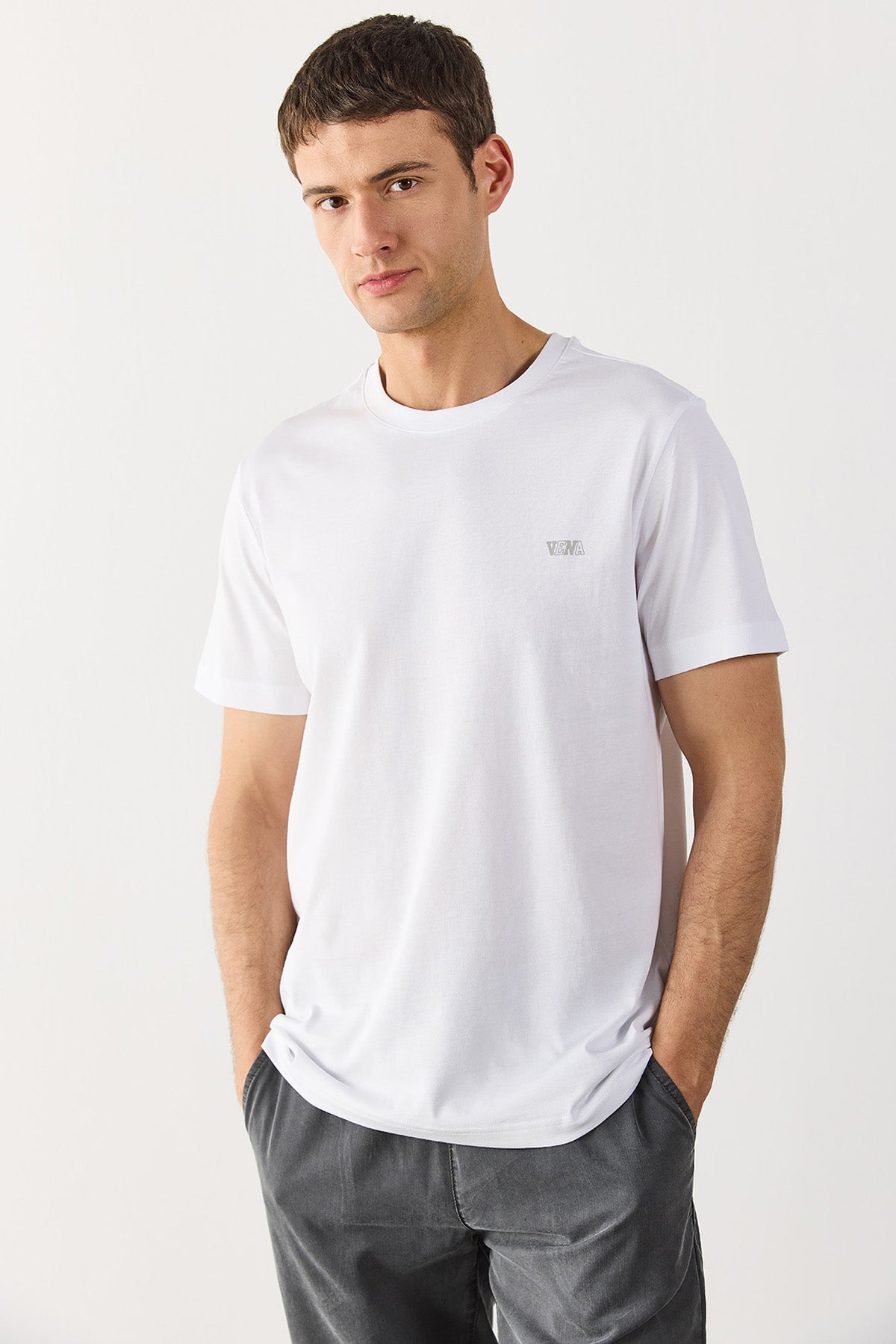 Erkek koleksiyonundan Vena Jeans Baskılı Bisiklet Yaka Regular Fit Tişört. Logo baskılı. Bisiklet yaka. Regular fit. Yüzde yüz pamuk kumaşı sayesinde nefes alır, konfor sağlar. Kısa kollu. Göğsünde kolej logo baskılı.
