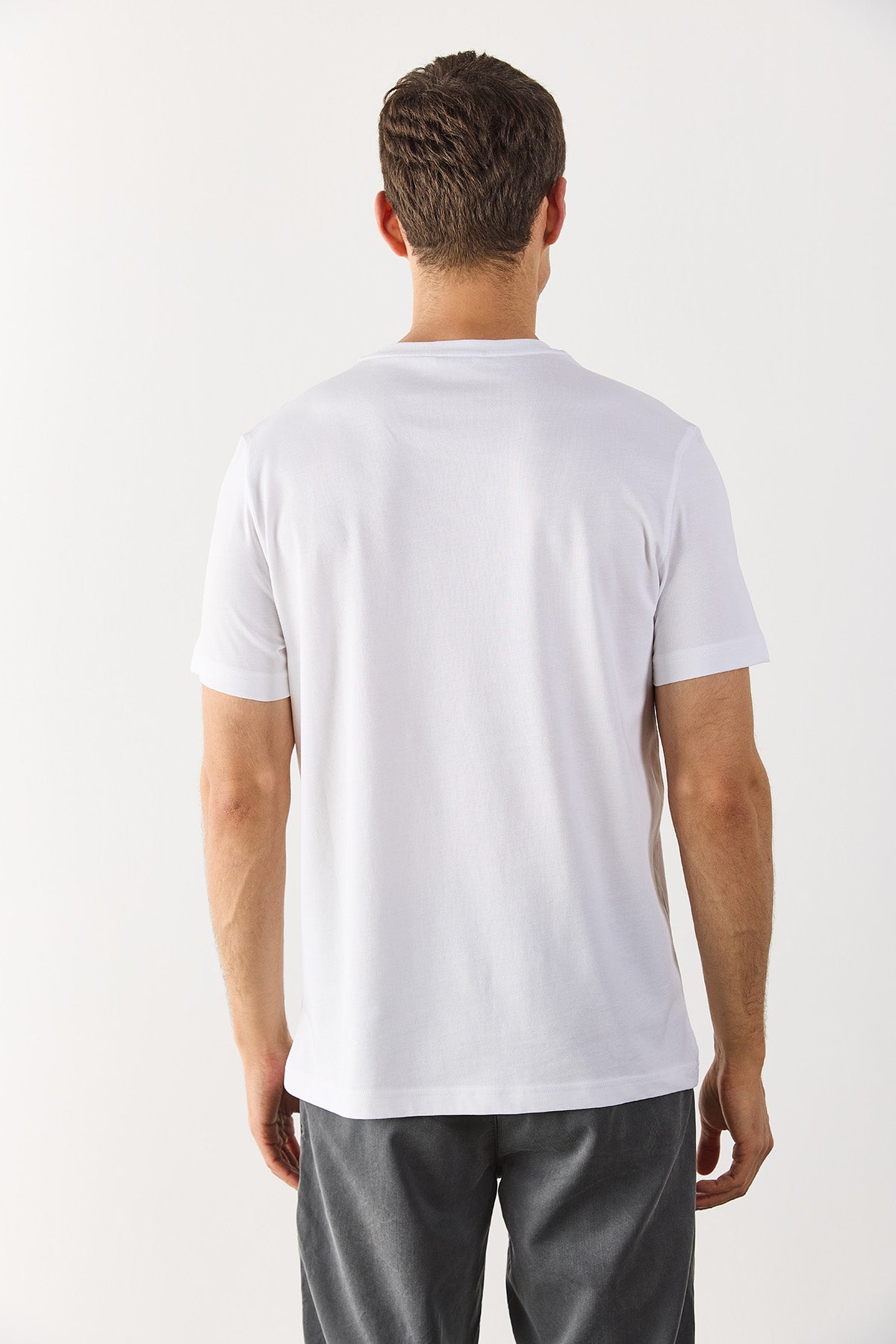 Erkek Vena Baskılı Bisiklet Yaka Regular Fit Tişört %100 Pamuk - Beyaz