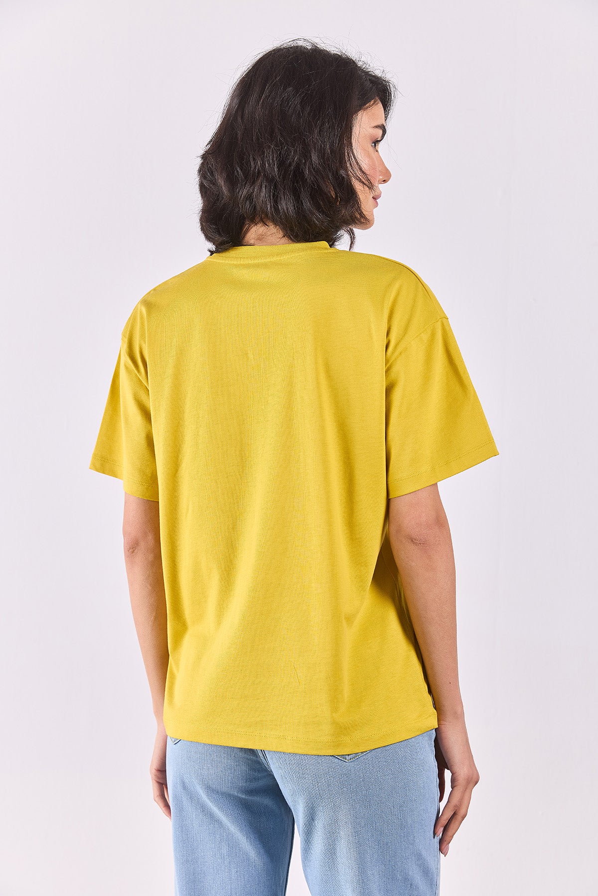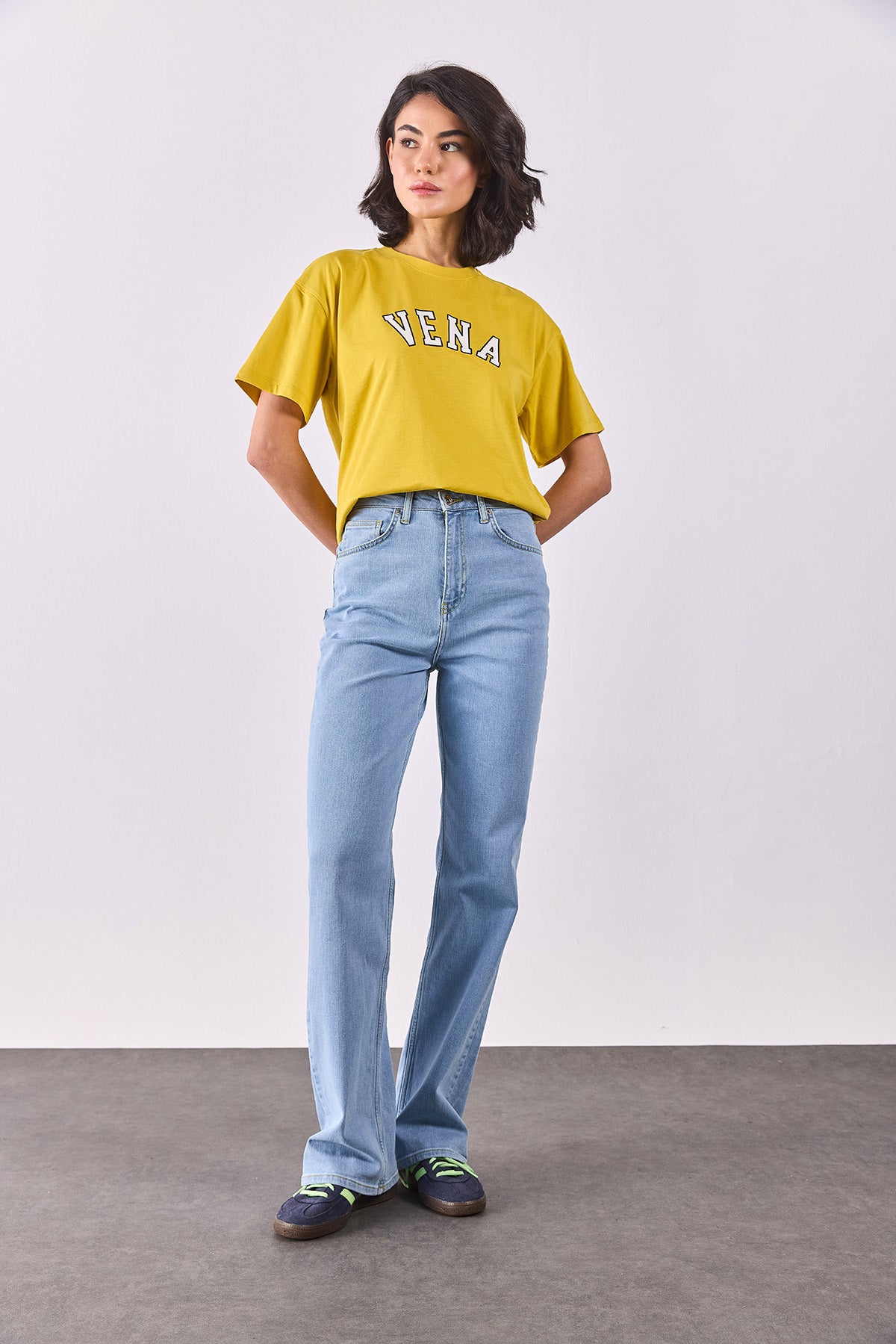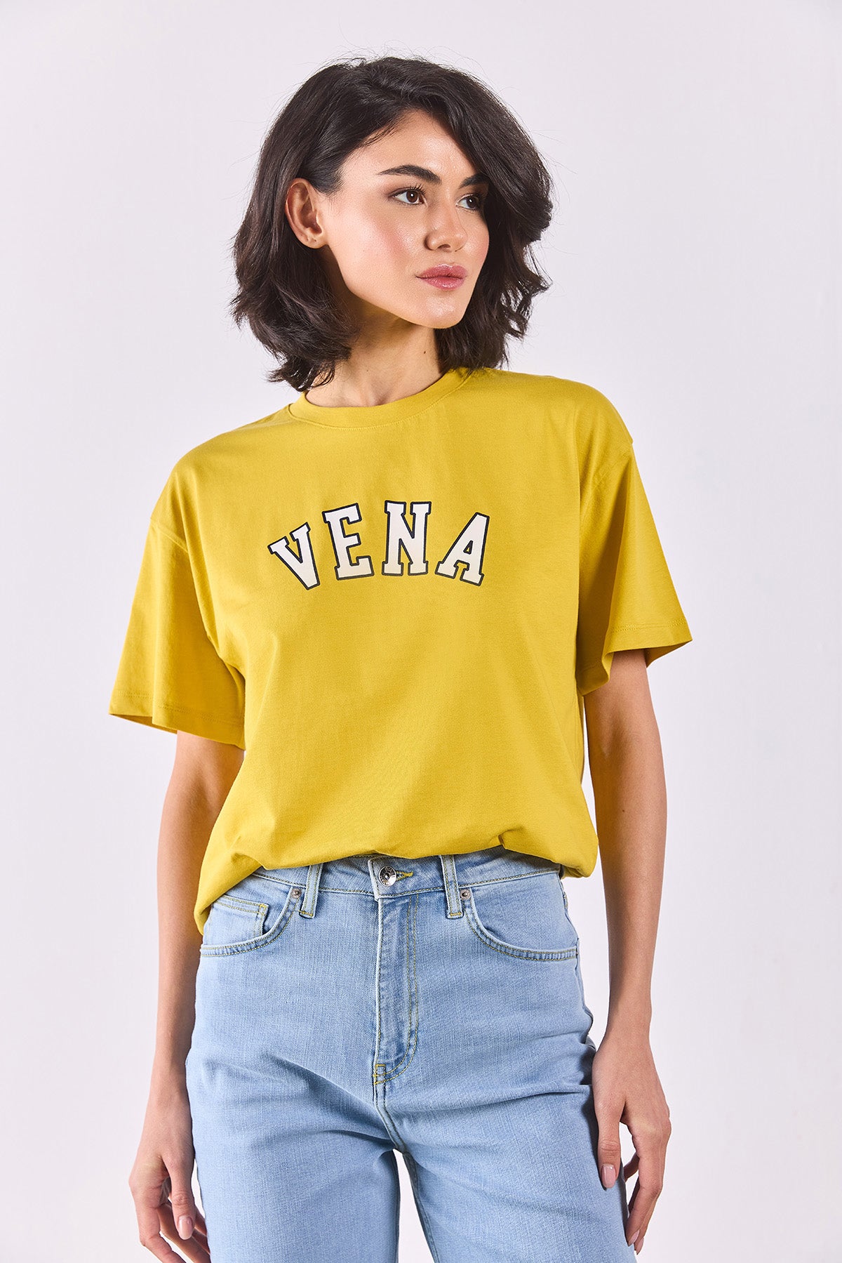Kadın Vena Jeans Baskılı Bisiklet Yaka Regular Fit Tişört %100 Pamuk - Sarı