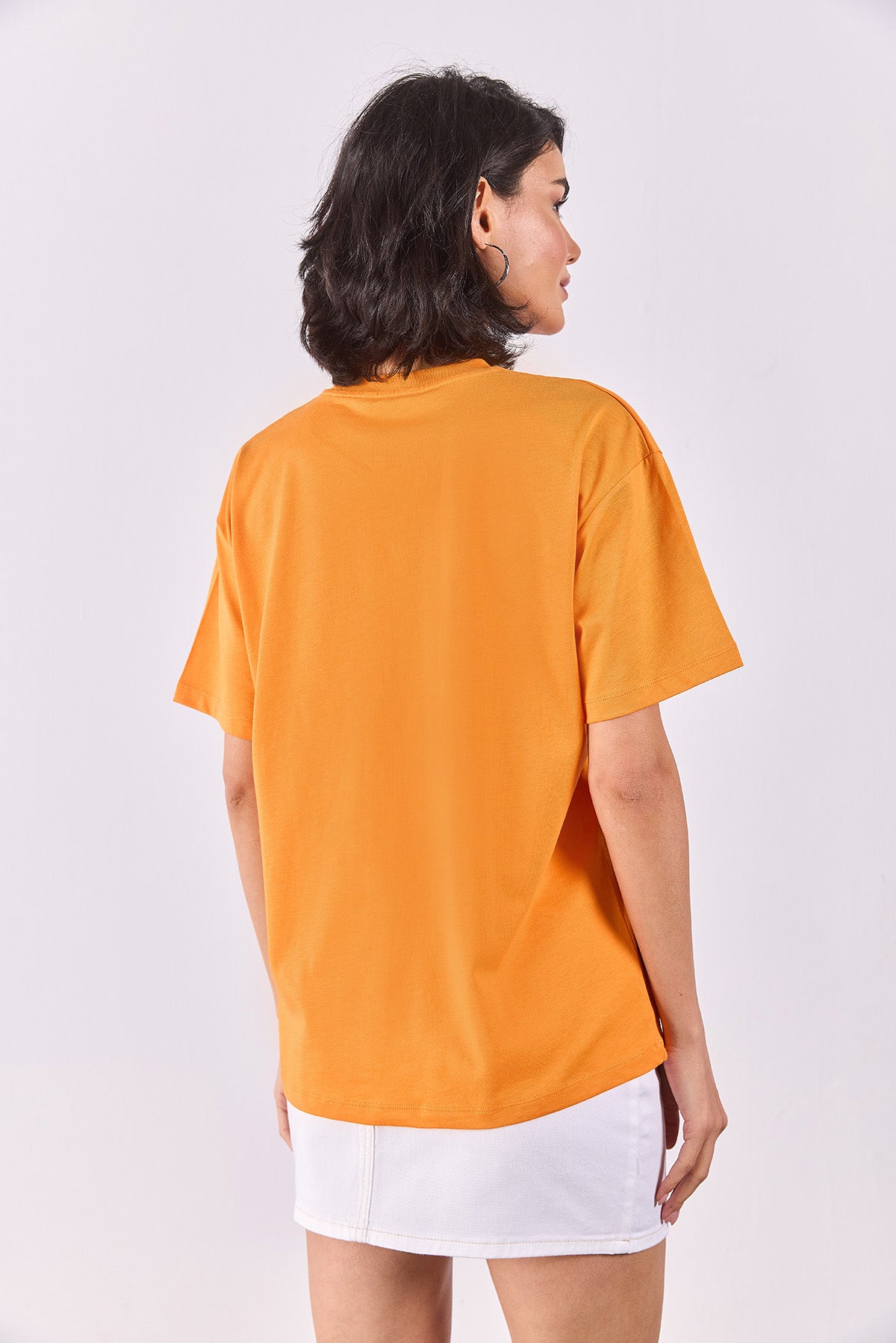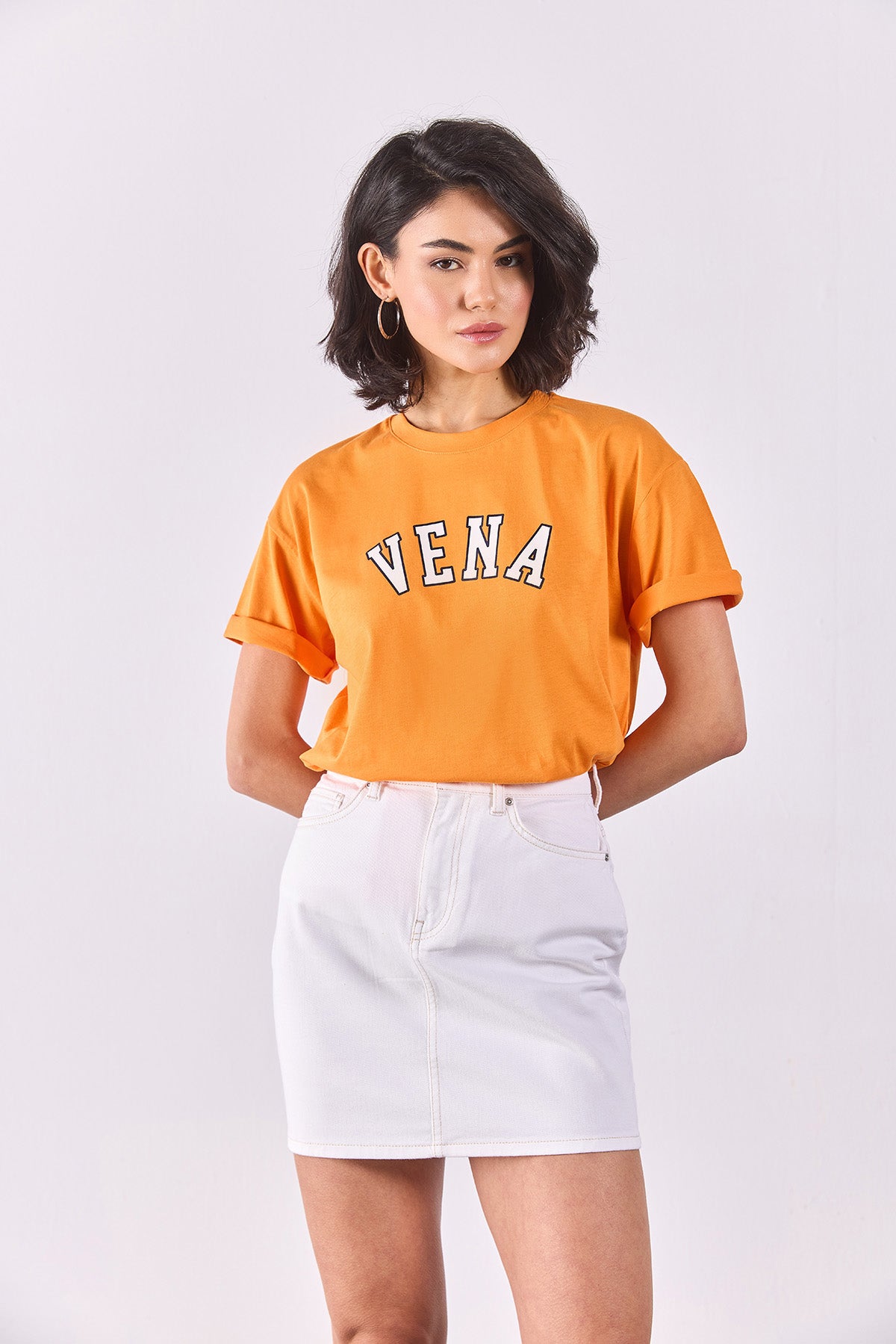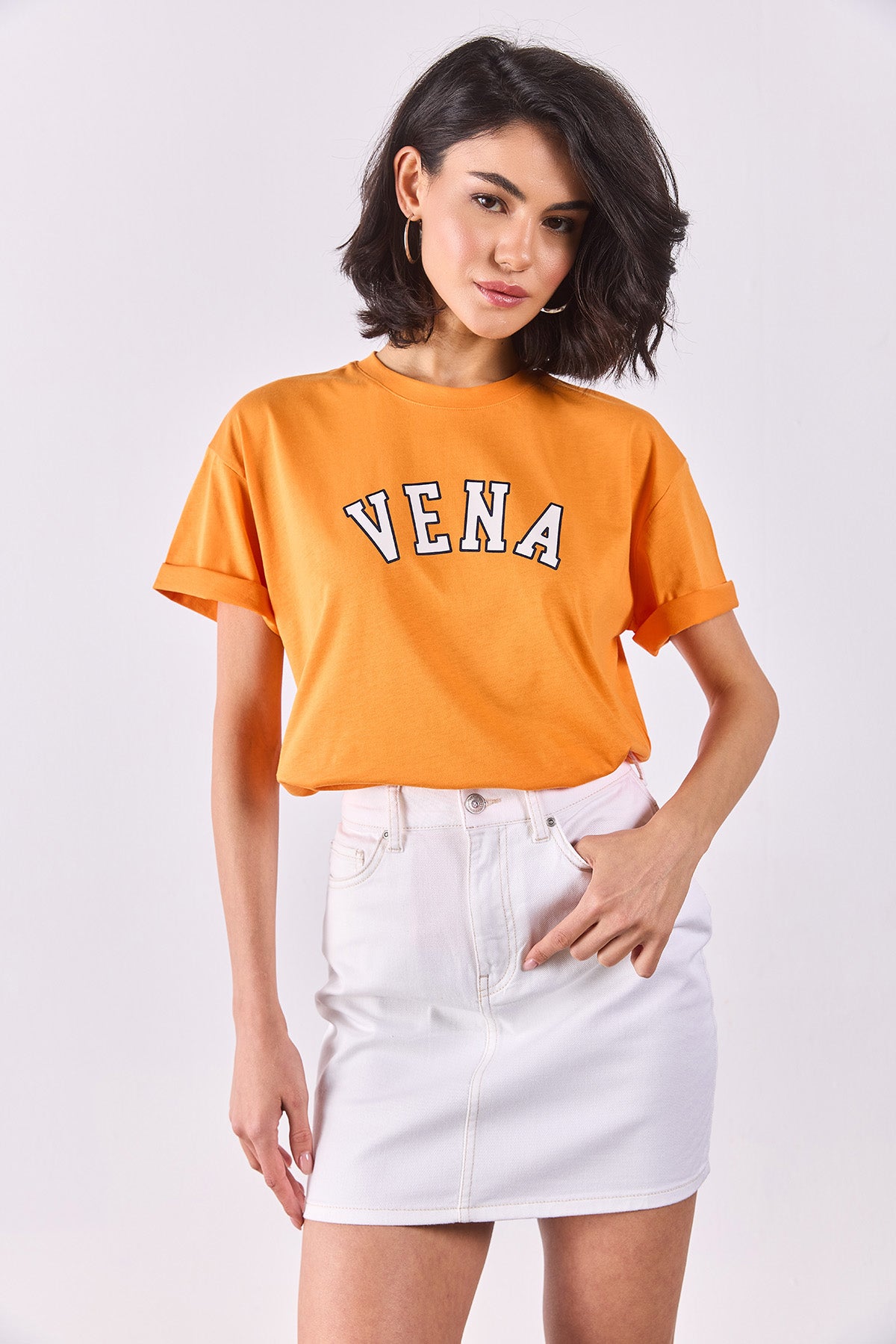 Kadın Vena Jeans Baskılı Bisiklet Yaka Regular Fit Tişört %100 Pamuk - Turuncu