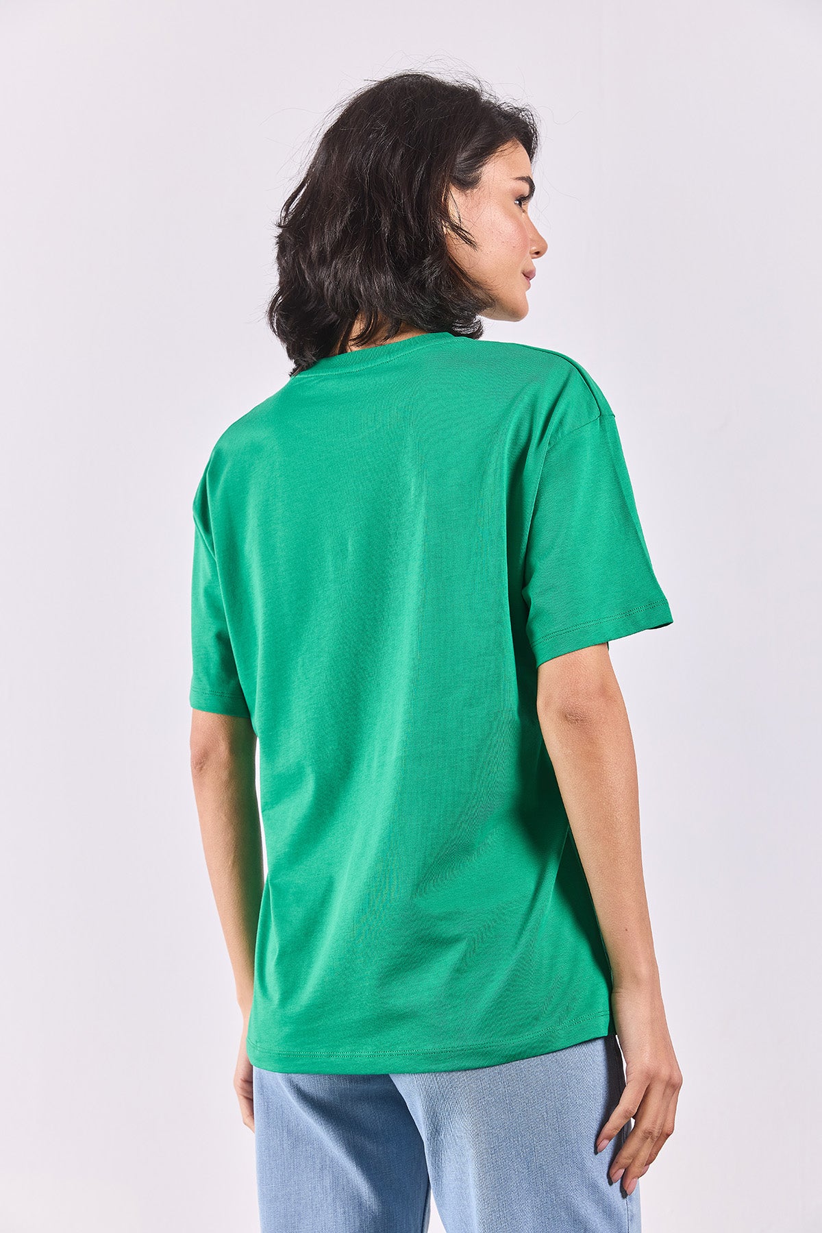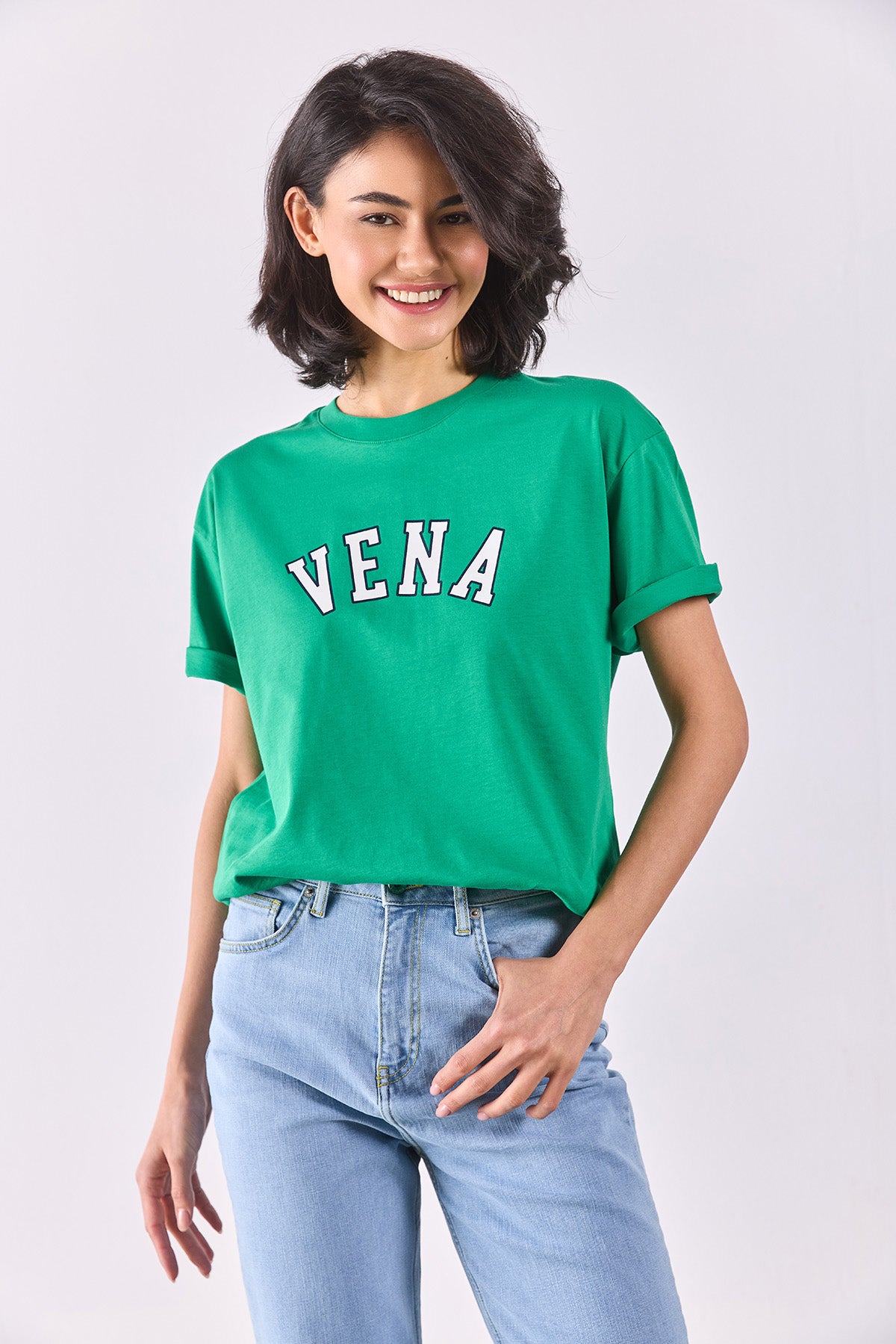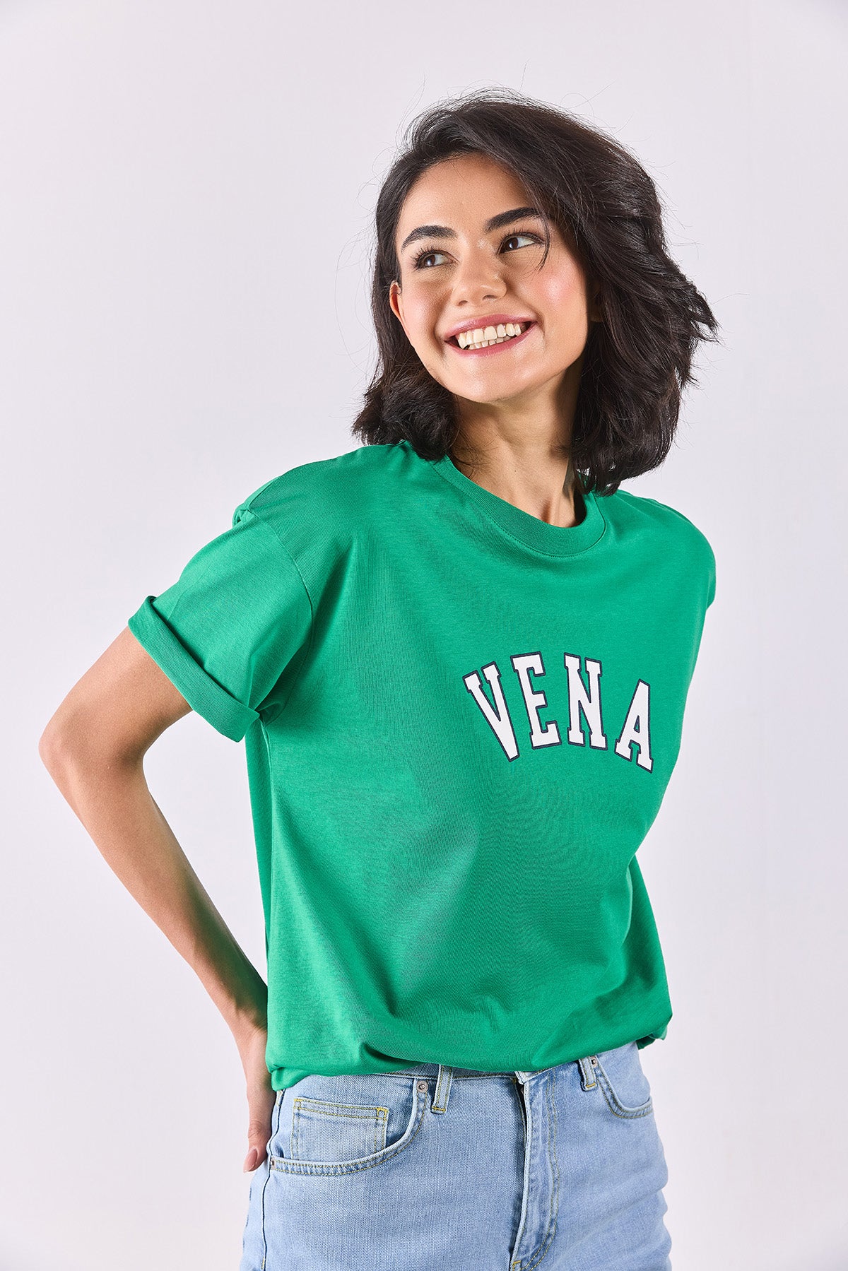 Kadın Vena Jeans Baskılı Bisiklet Yaka Regular Fit Tişört %100 Pamuk - Yeşil