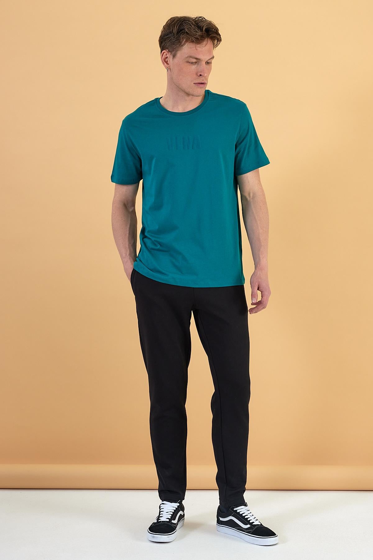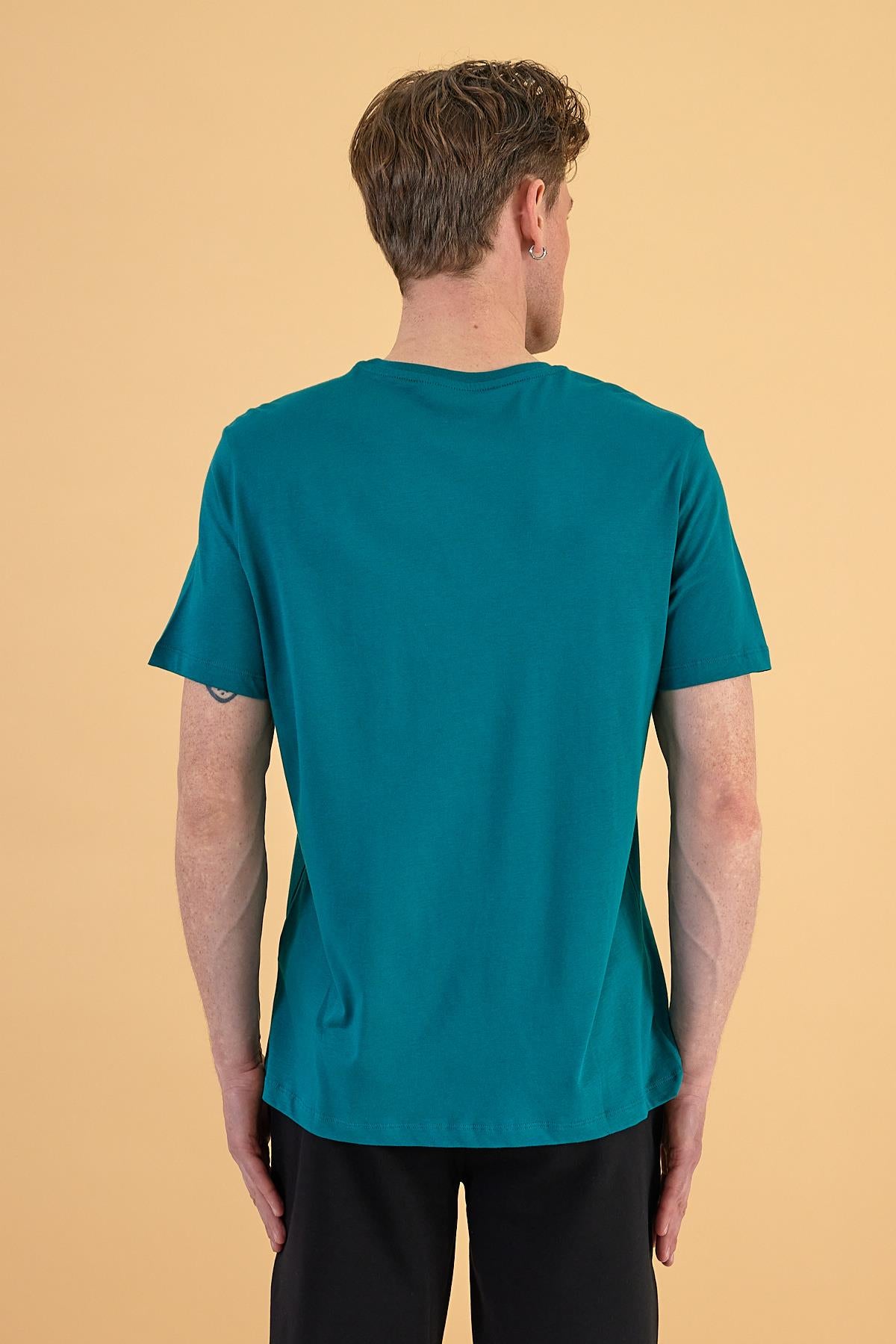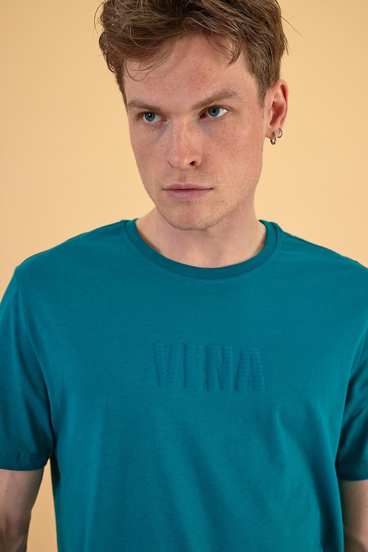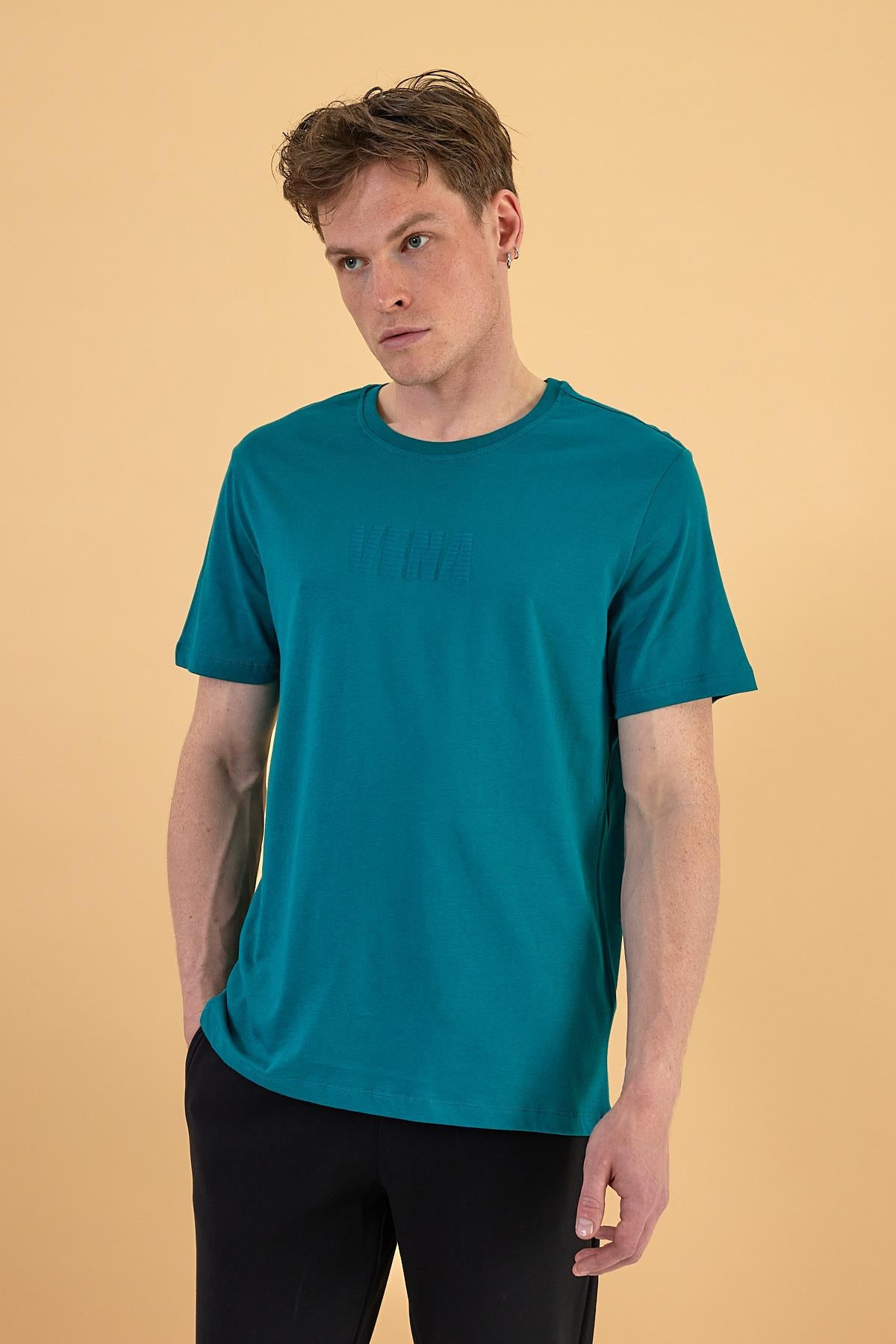 Erkek Vena Logo Baskılı Bisiklet Yaka Tişört %100 Pamuk - Orman