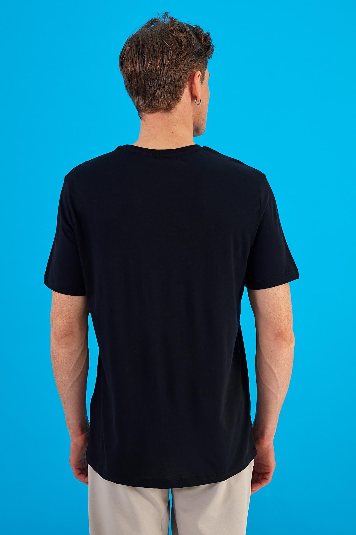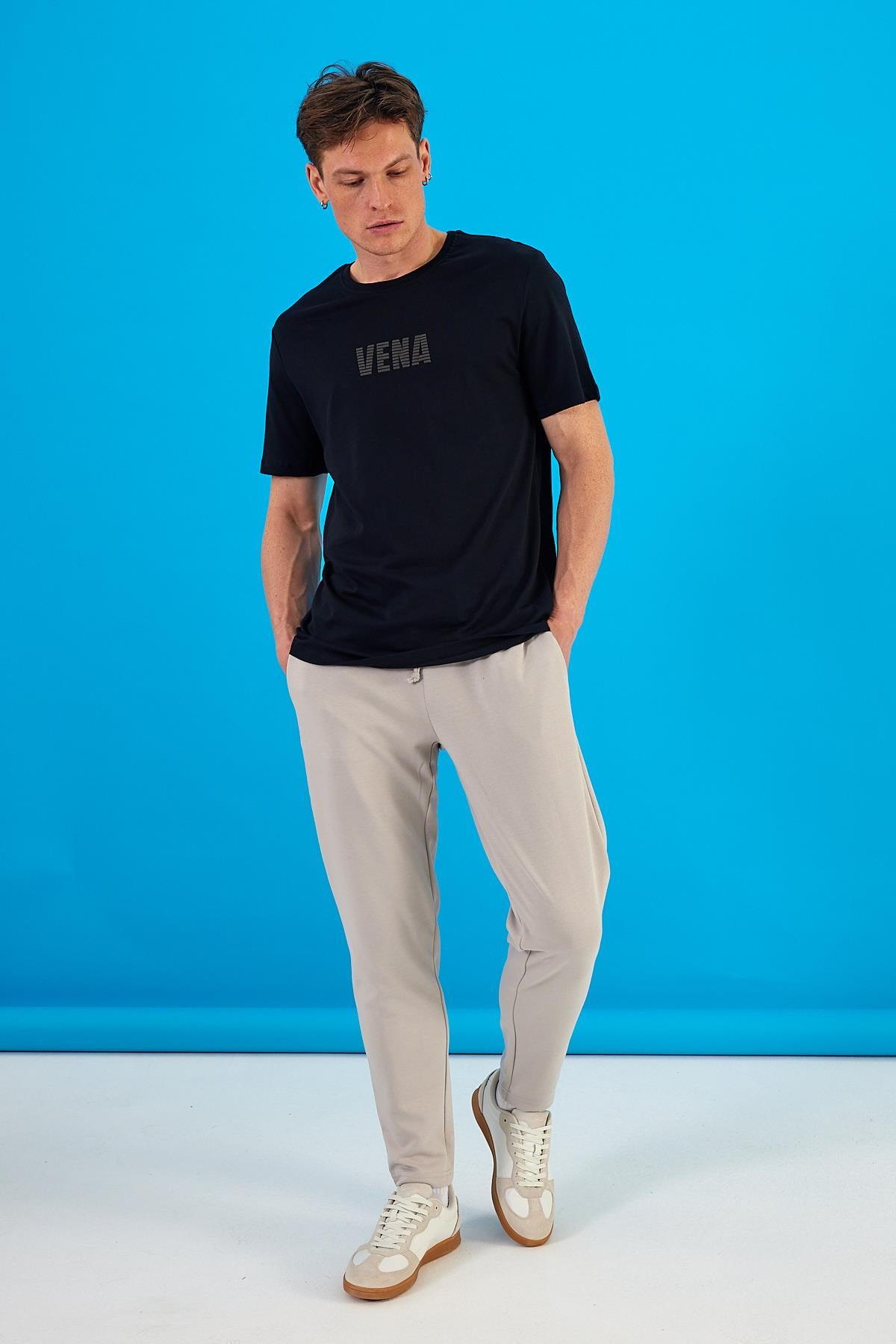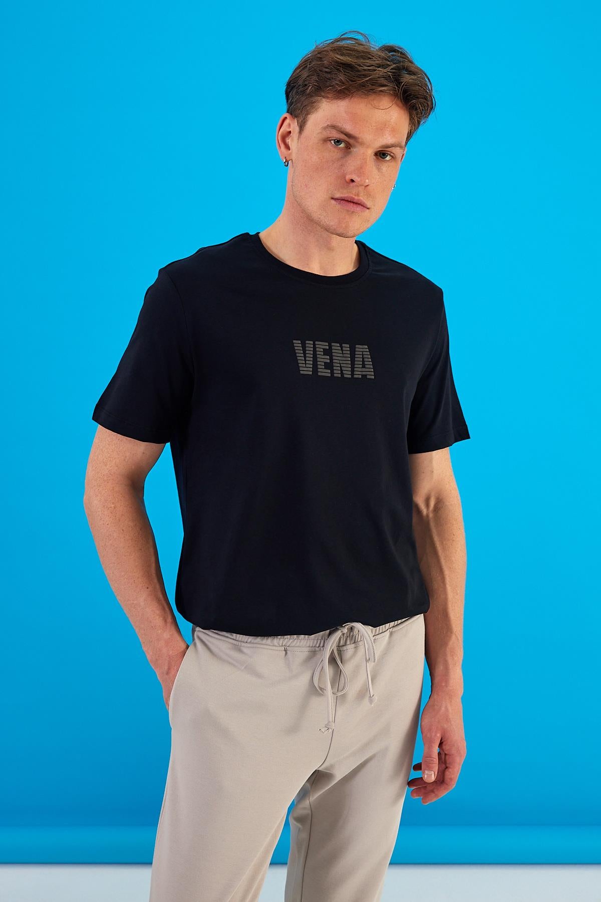 Erkek Vena Logo Baskılı Bisiklet Yaka Tişört %100 Pamuk - Siyah