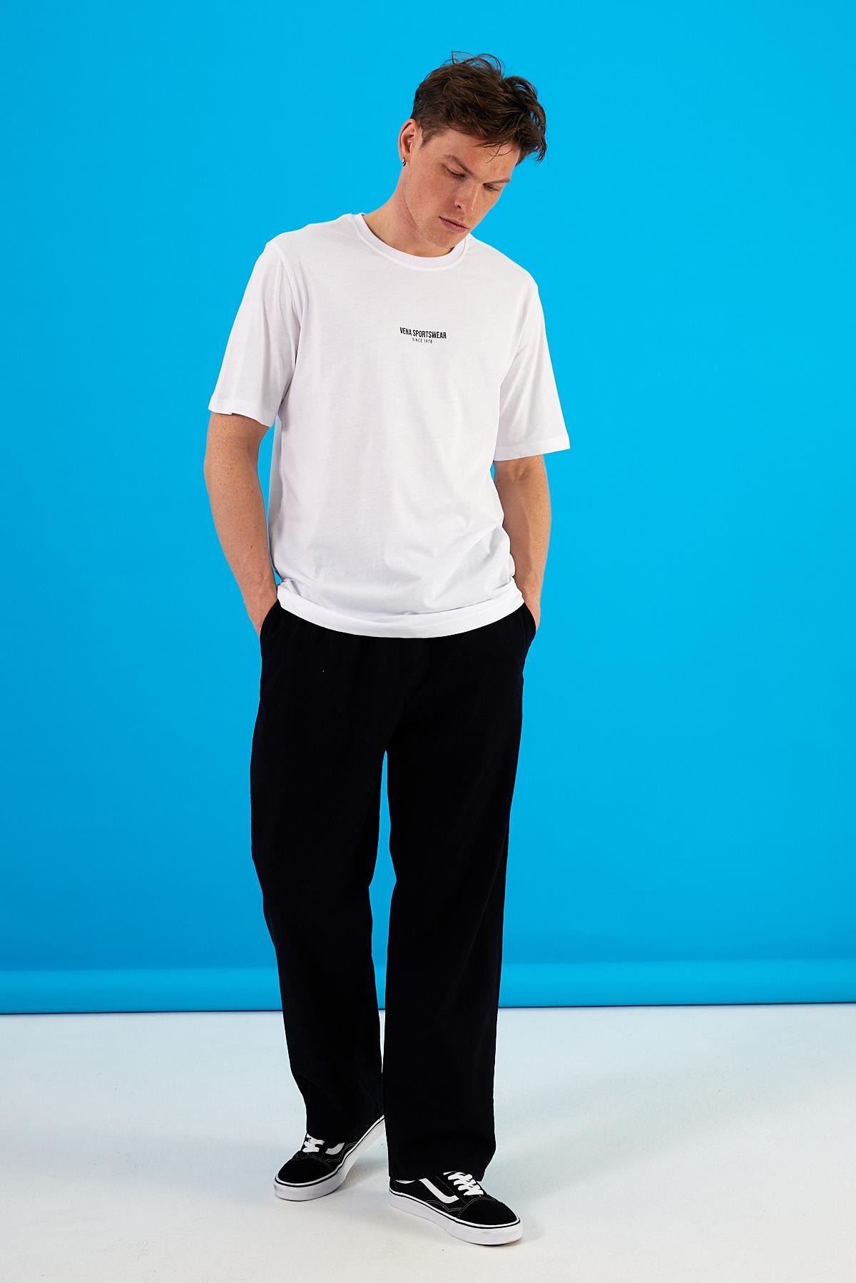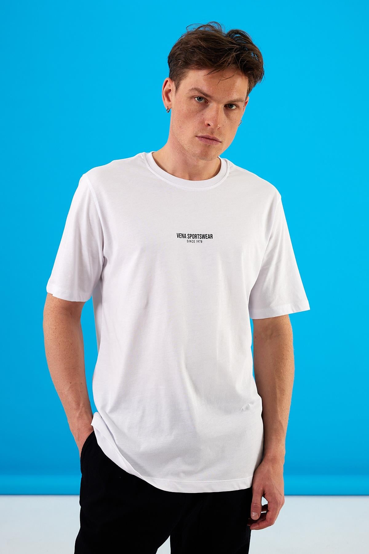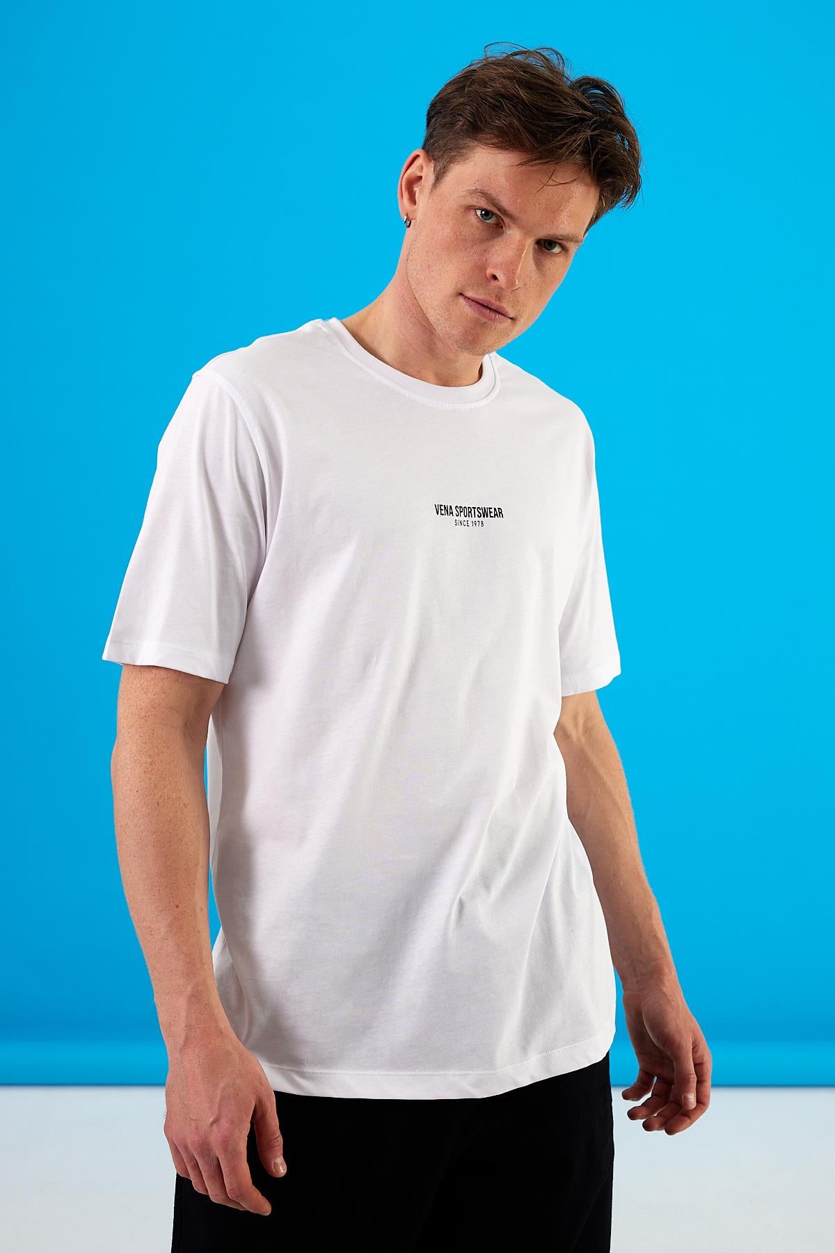 Erkek Vena Sports Baskılı Bisiklet Yaka Regular Fit Tişört %100 Pamuk - Beyaz
